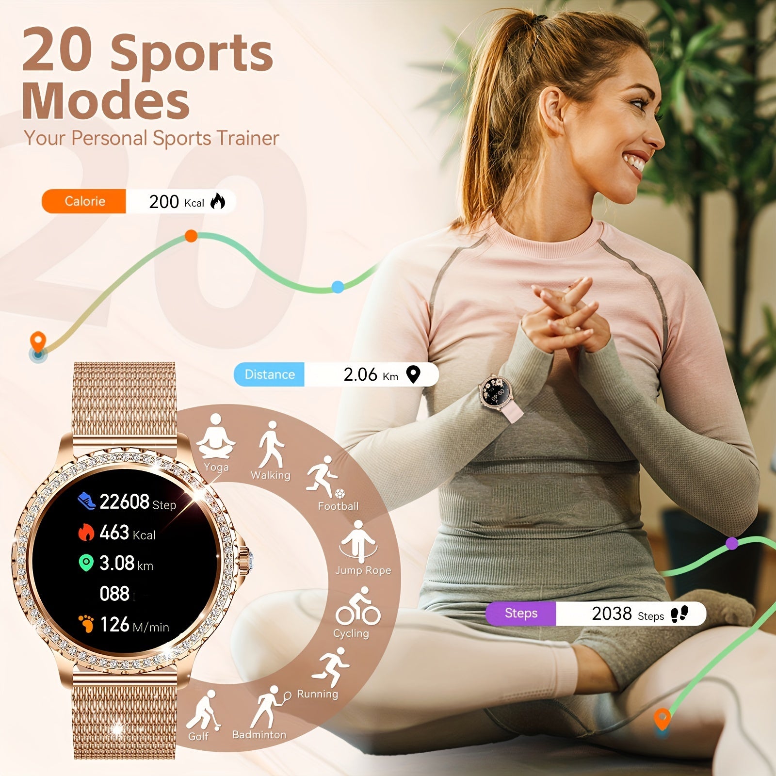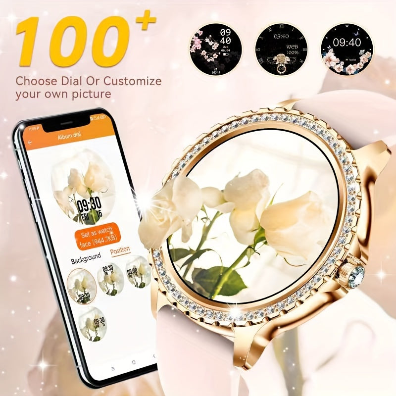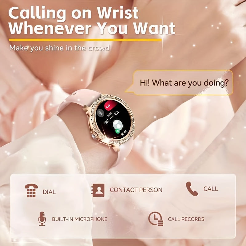 Женские умные часы с 1,32-дюймовым HD сенсорным экраном, водонепроницаемый силиконовый ремешок, беспроводные звонки