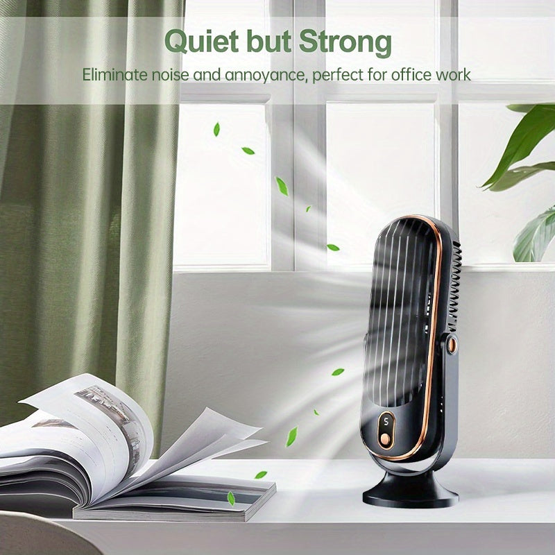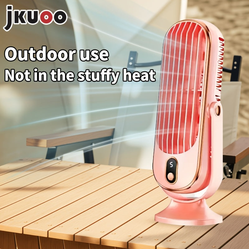 Портативный тихий вентилятор JKUOO с LED-дисплеем - высокоскоростной беспроводной перезаряжаемый вентилятор USB для офисных столов, колясок, школы и кемпинга на открытом воздухе. Черный с белыми акцентами, кемпинговый вентилятор