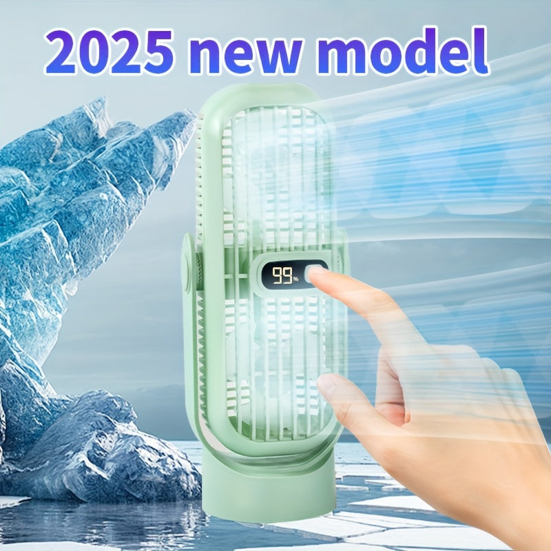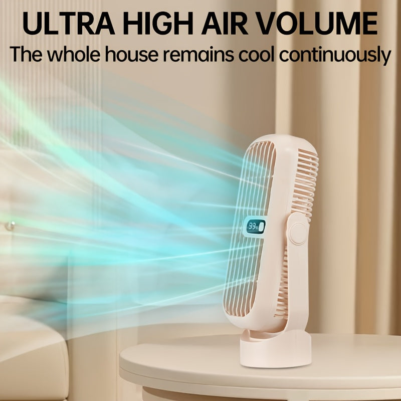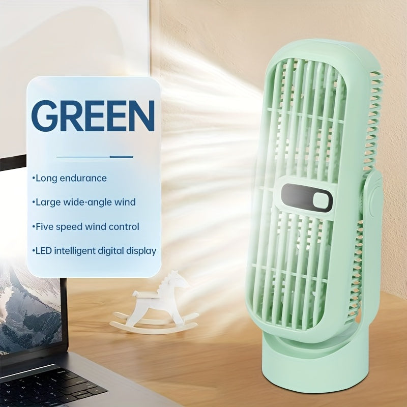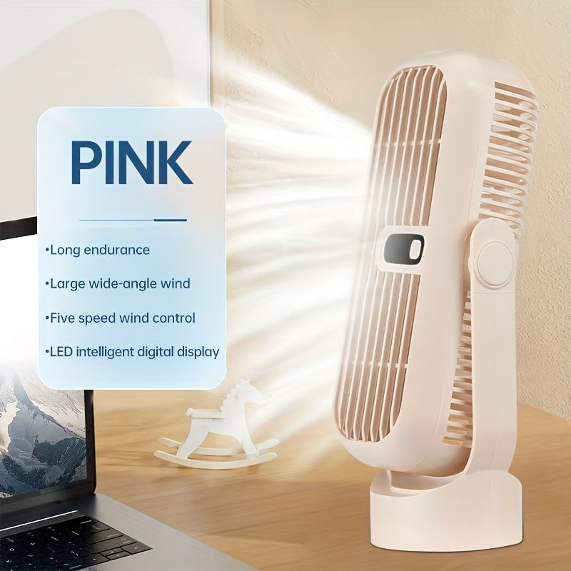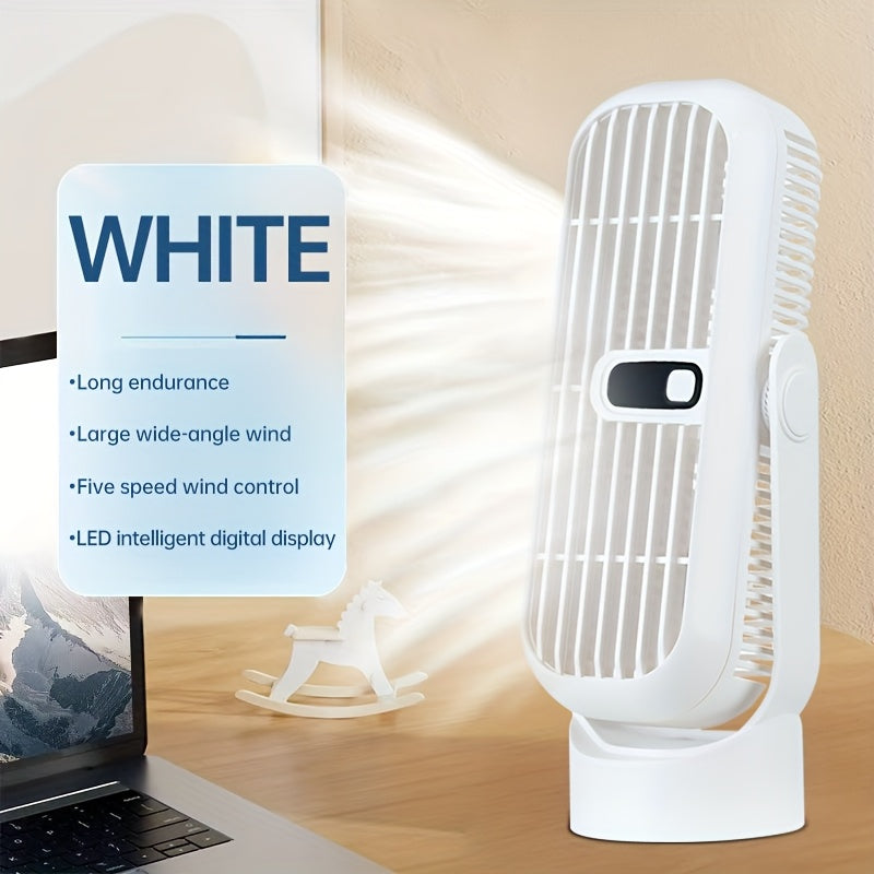 JKUOO Портативный беспроводной настольный вентилятор - мини-вентилятор с охлаждением на 5 скоростей, перезаряжаемый через USB, с LED-дисплеем, тихой работой, вращающимся дизайном для различных настроек. Компактный, легкий, портативный вентилятор.