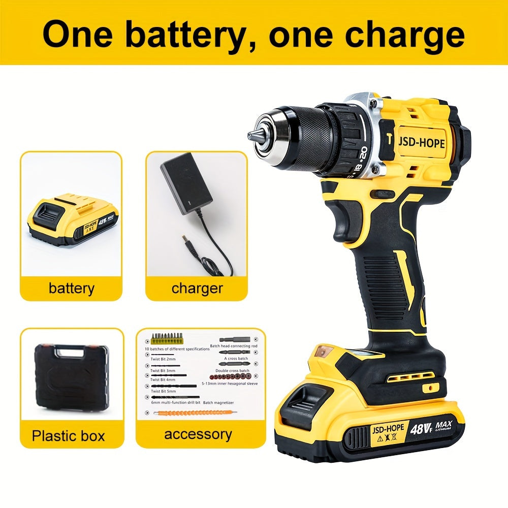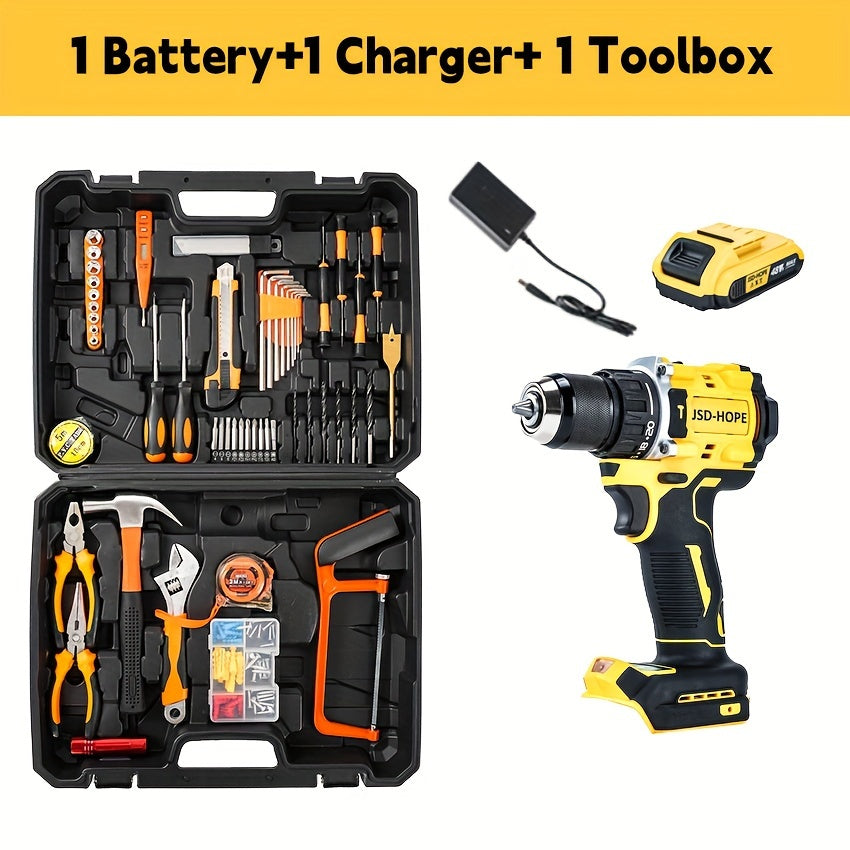 JSD-HOPE 21V-240V Беспроводная ударная дрель и набор отверток для домашних DIY проектов, с Т-ключом и шестигранным валом. Перезаряжаемая литиевая электрическая отвертка, изготовленная из PE материала.