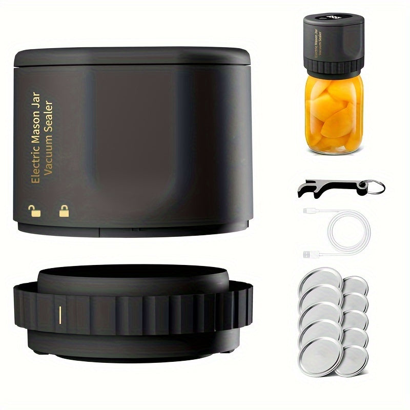 Электрический набор вакуумных герметизаторов для банок с широким и стандартным горлышком, черный