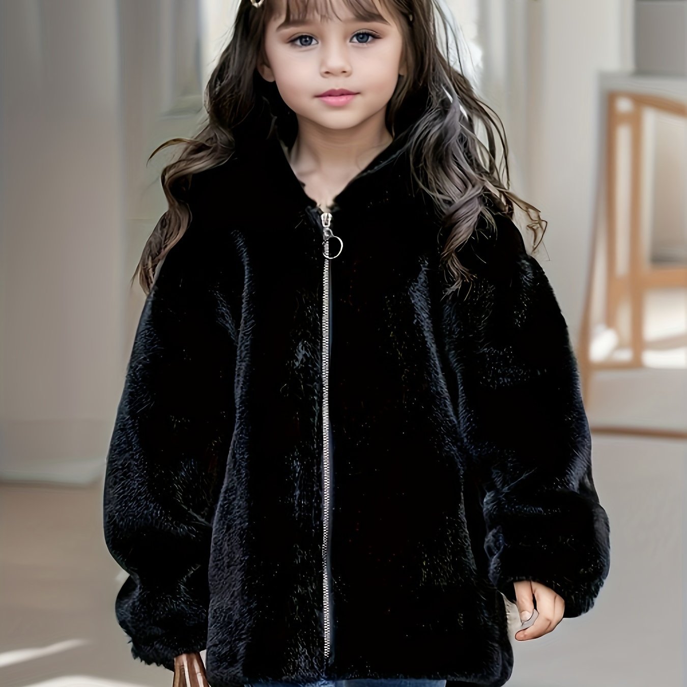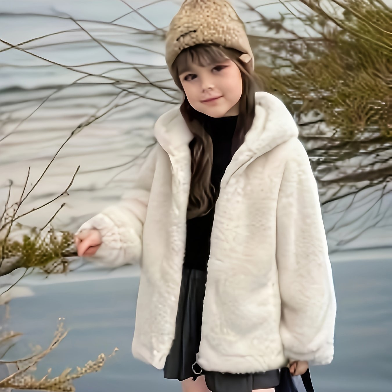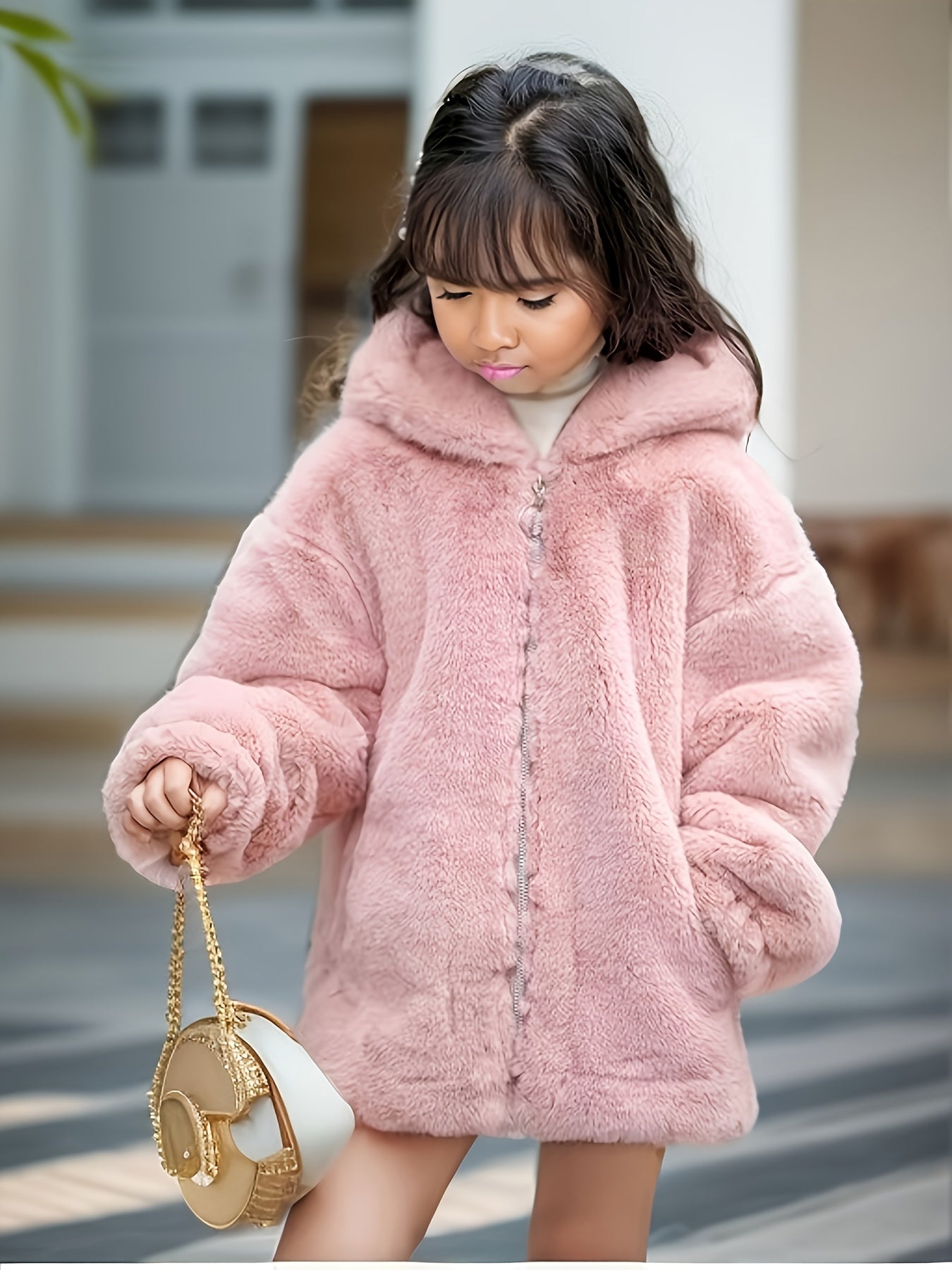 Детский пуховик из искусственного меха с капюшоном в виде медвежьих ушей для теплой зимней одежды