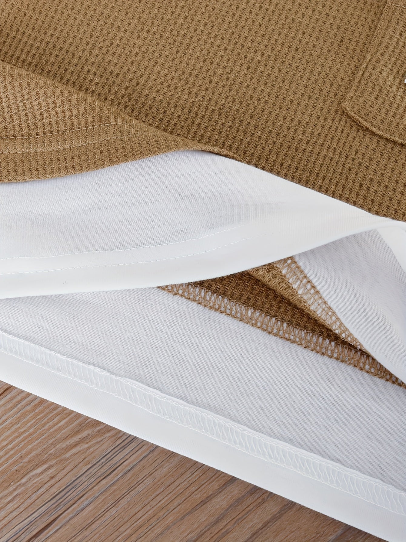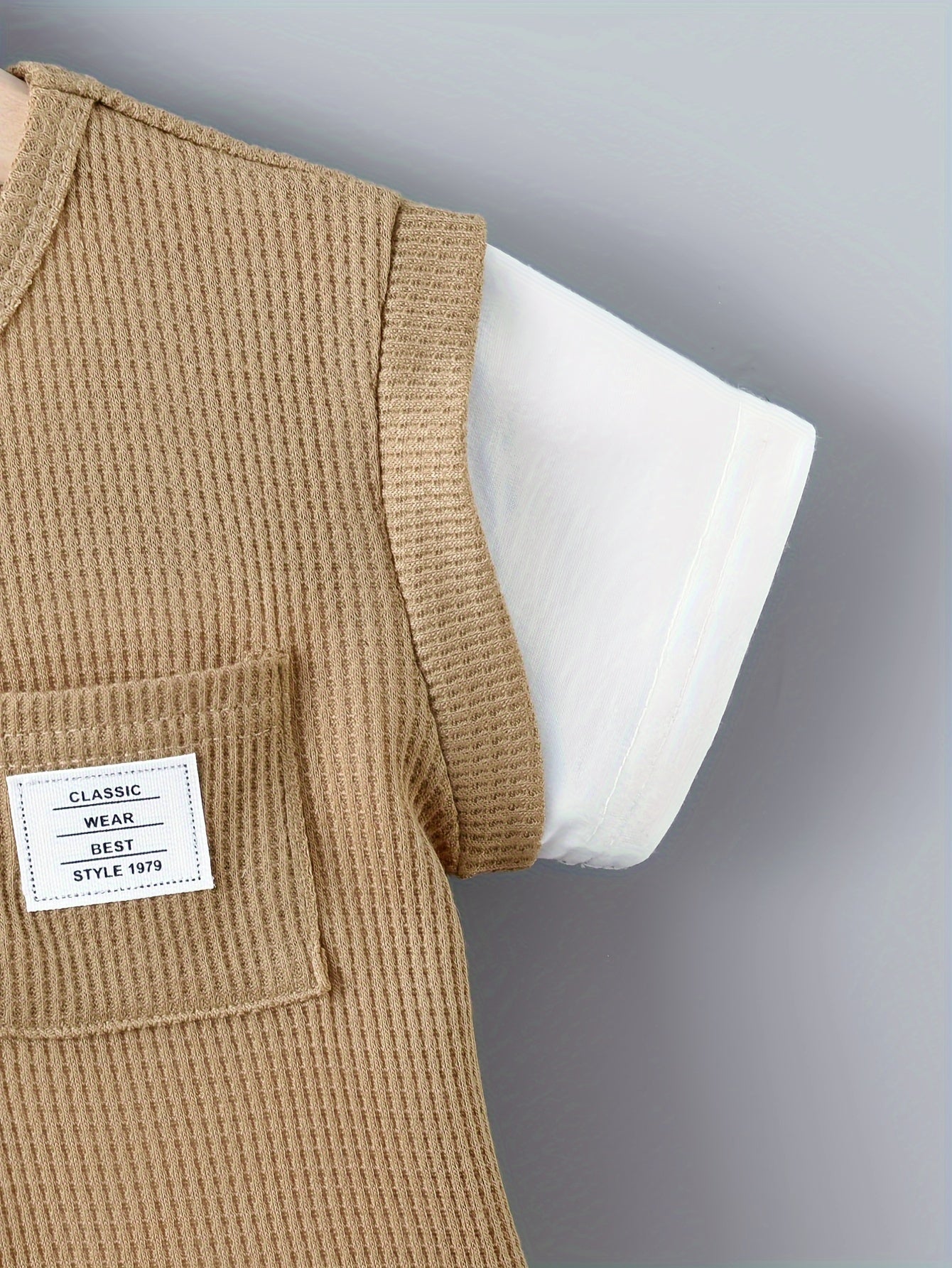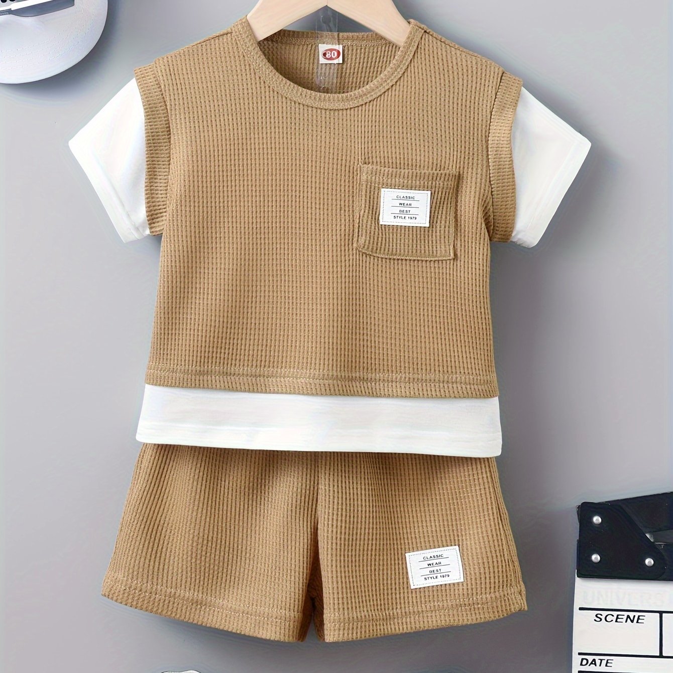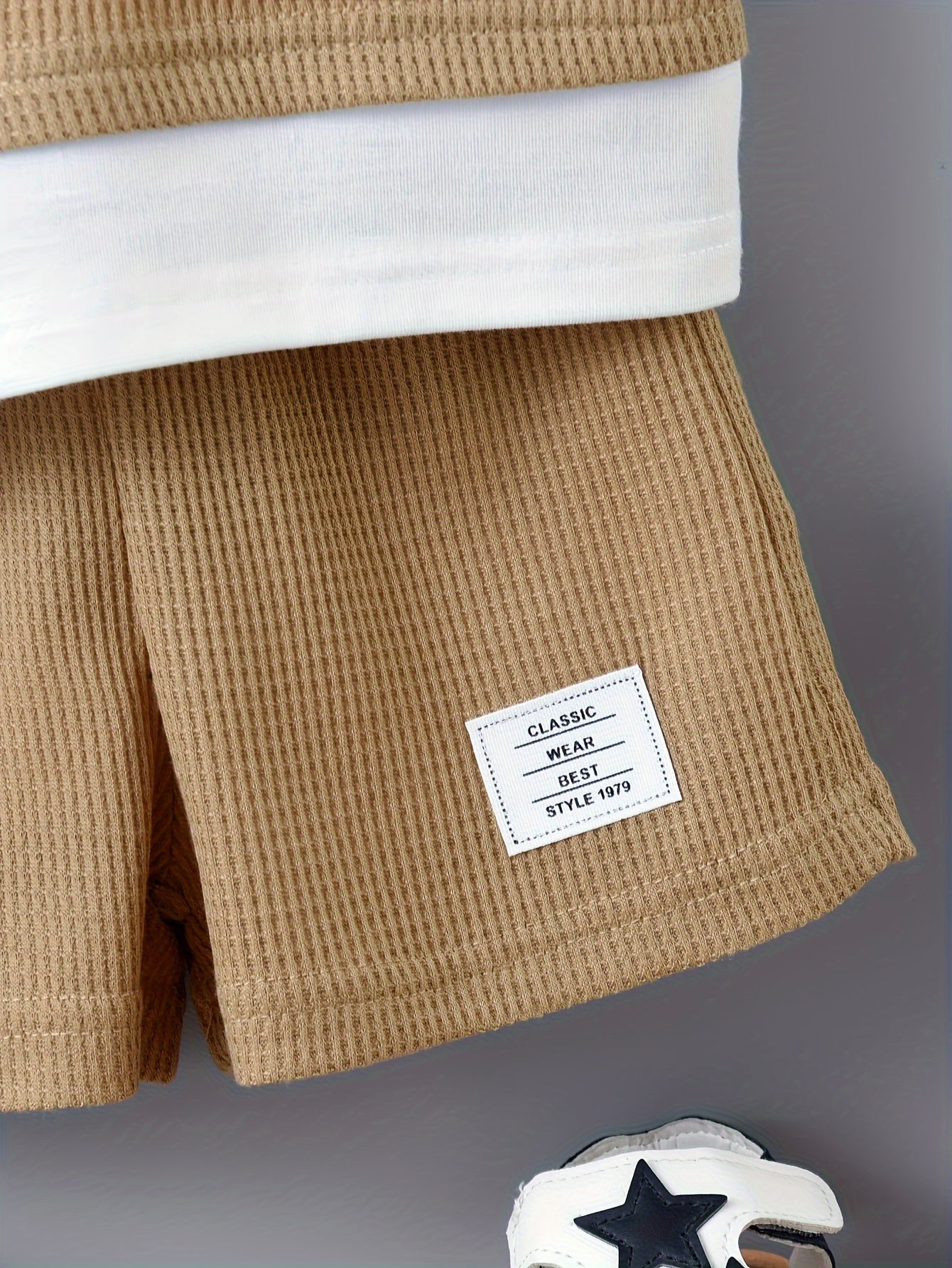 Летний комплект для детей с футболкой из вафельной текстуры и повседневными шортами.