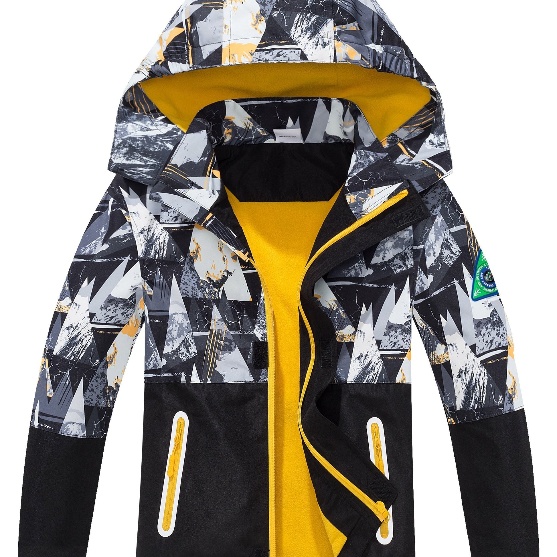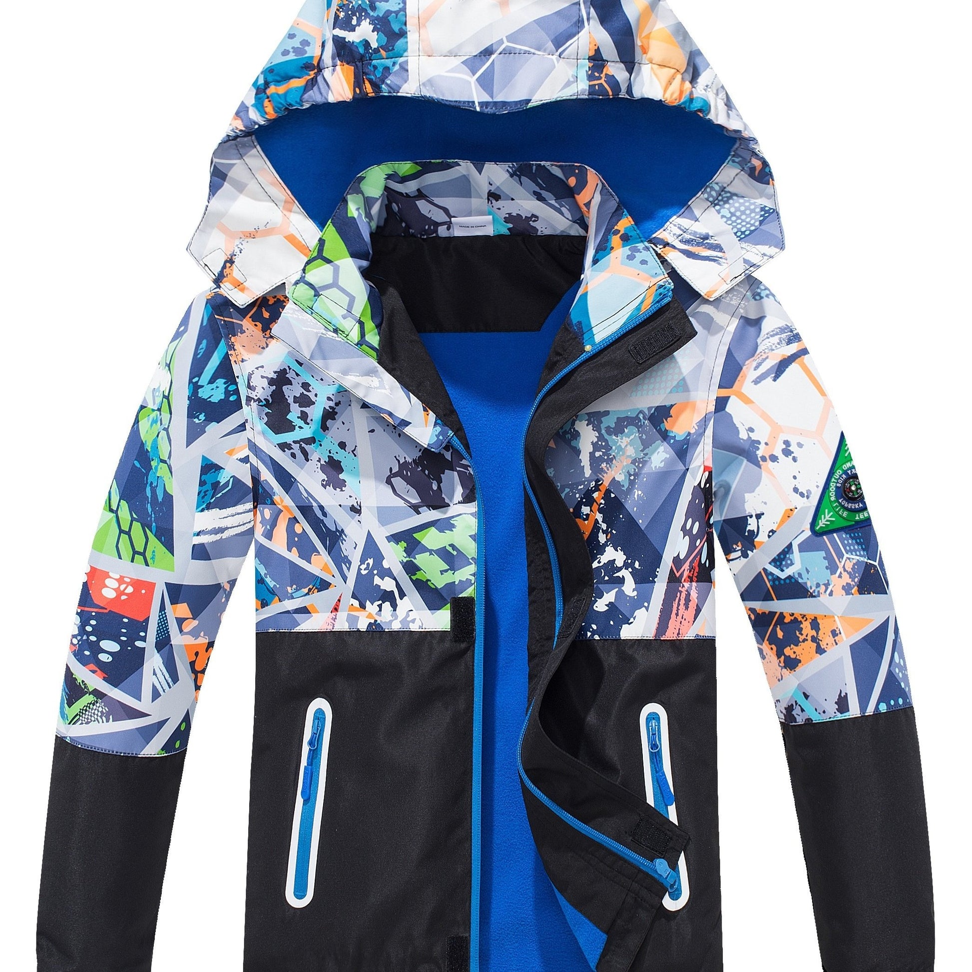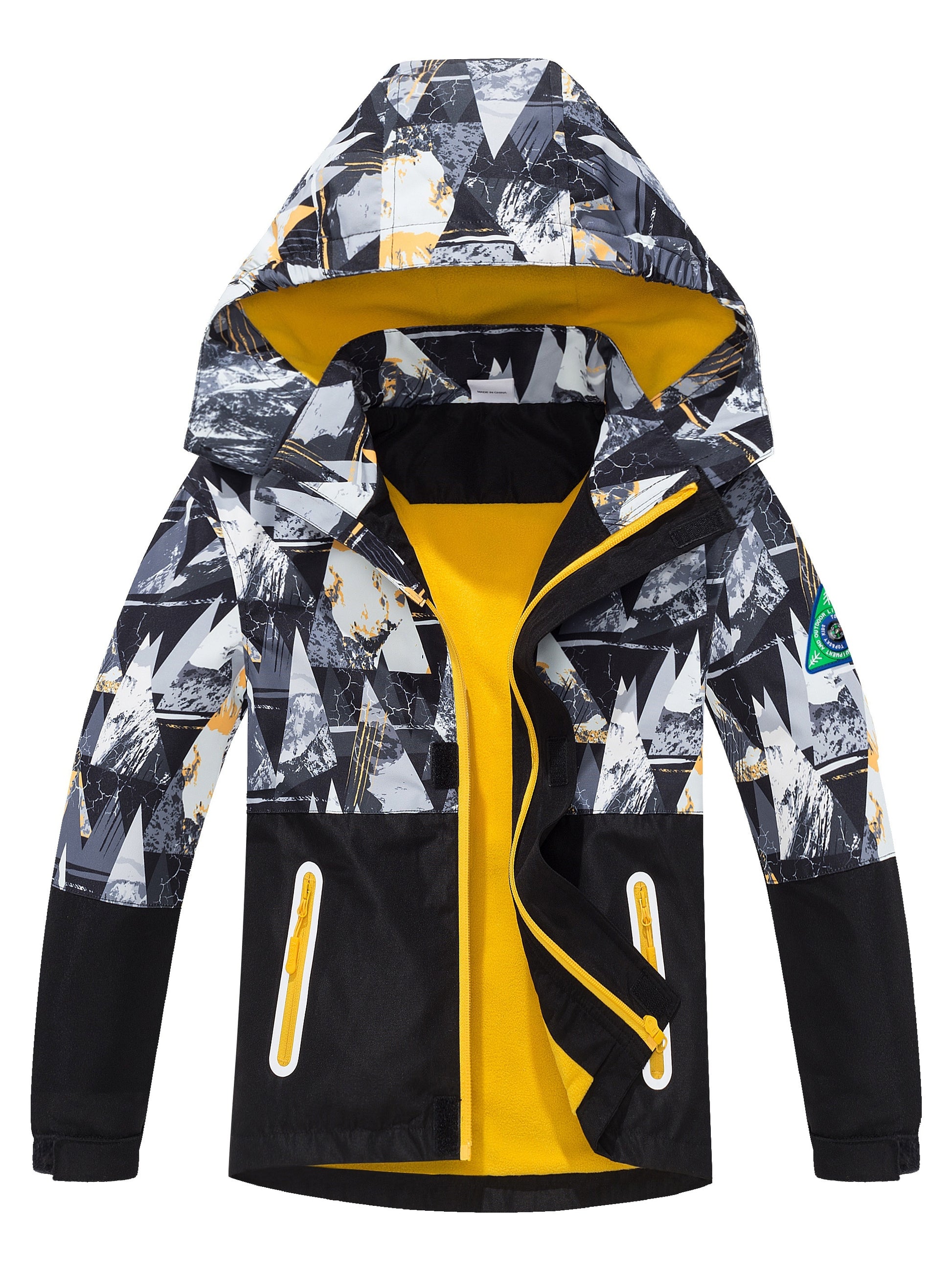 Детский дождевик для мальчиков с съемным капюшоном, флисовая подкладка, цветной блок, водонепроницаемый, ветровка