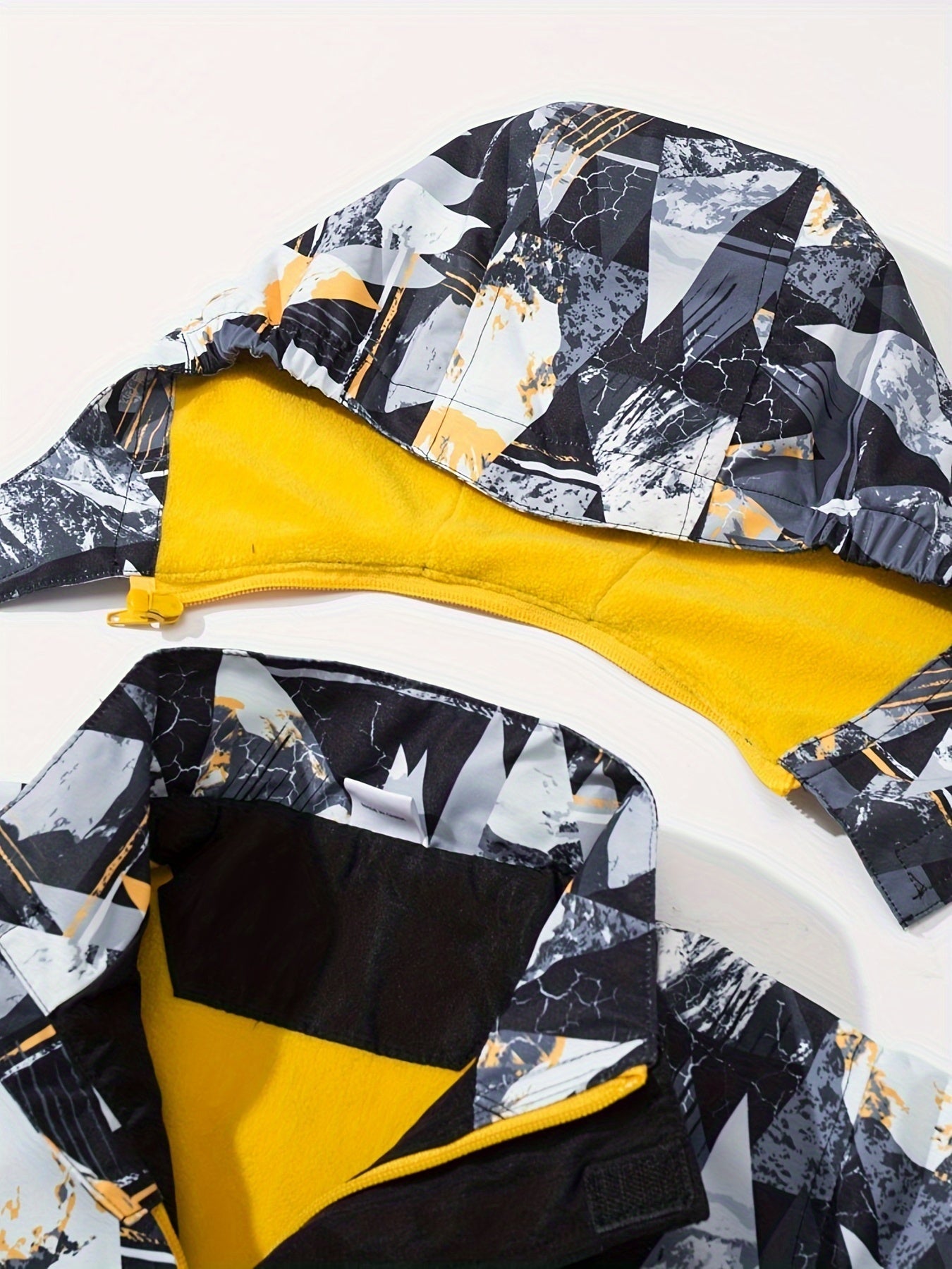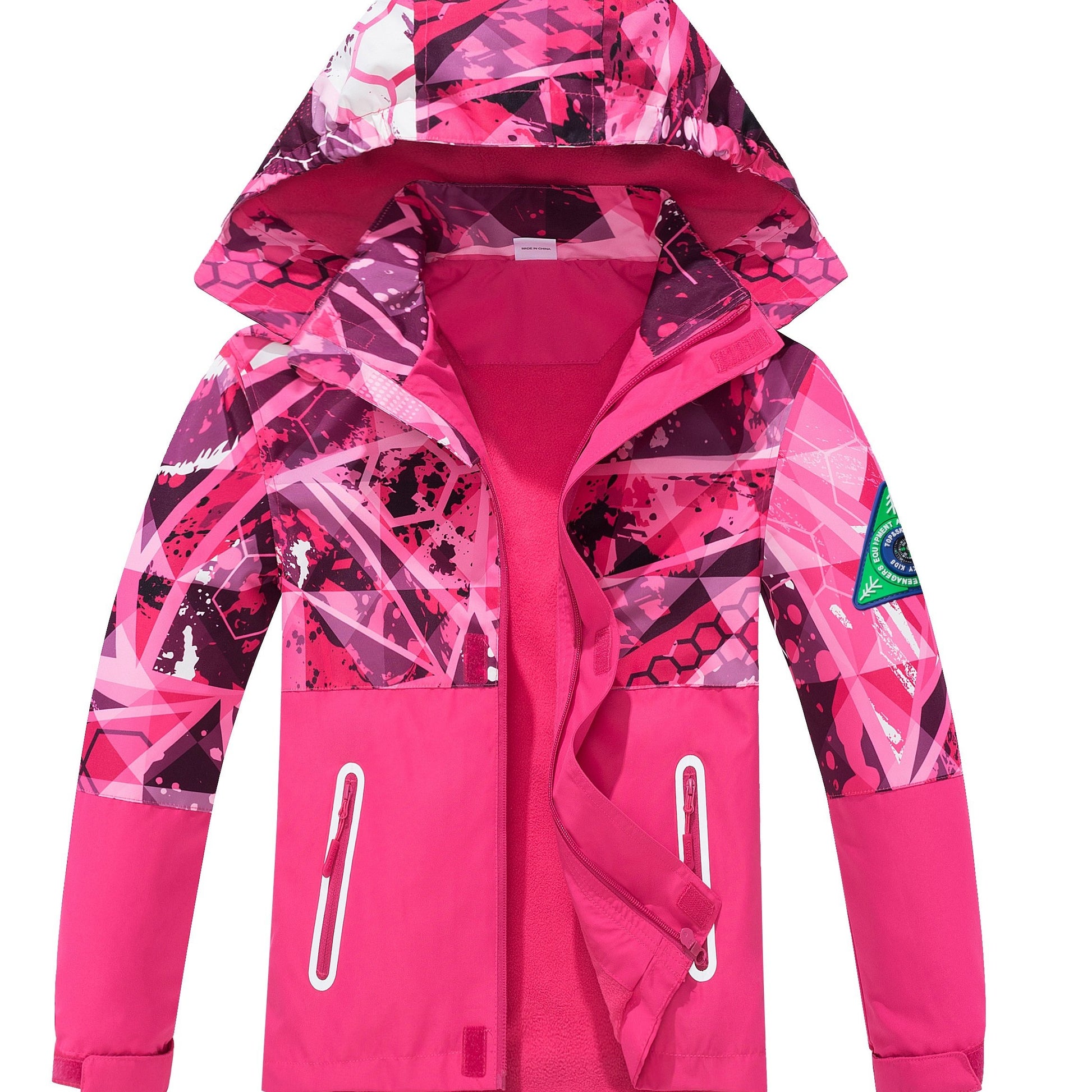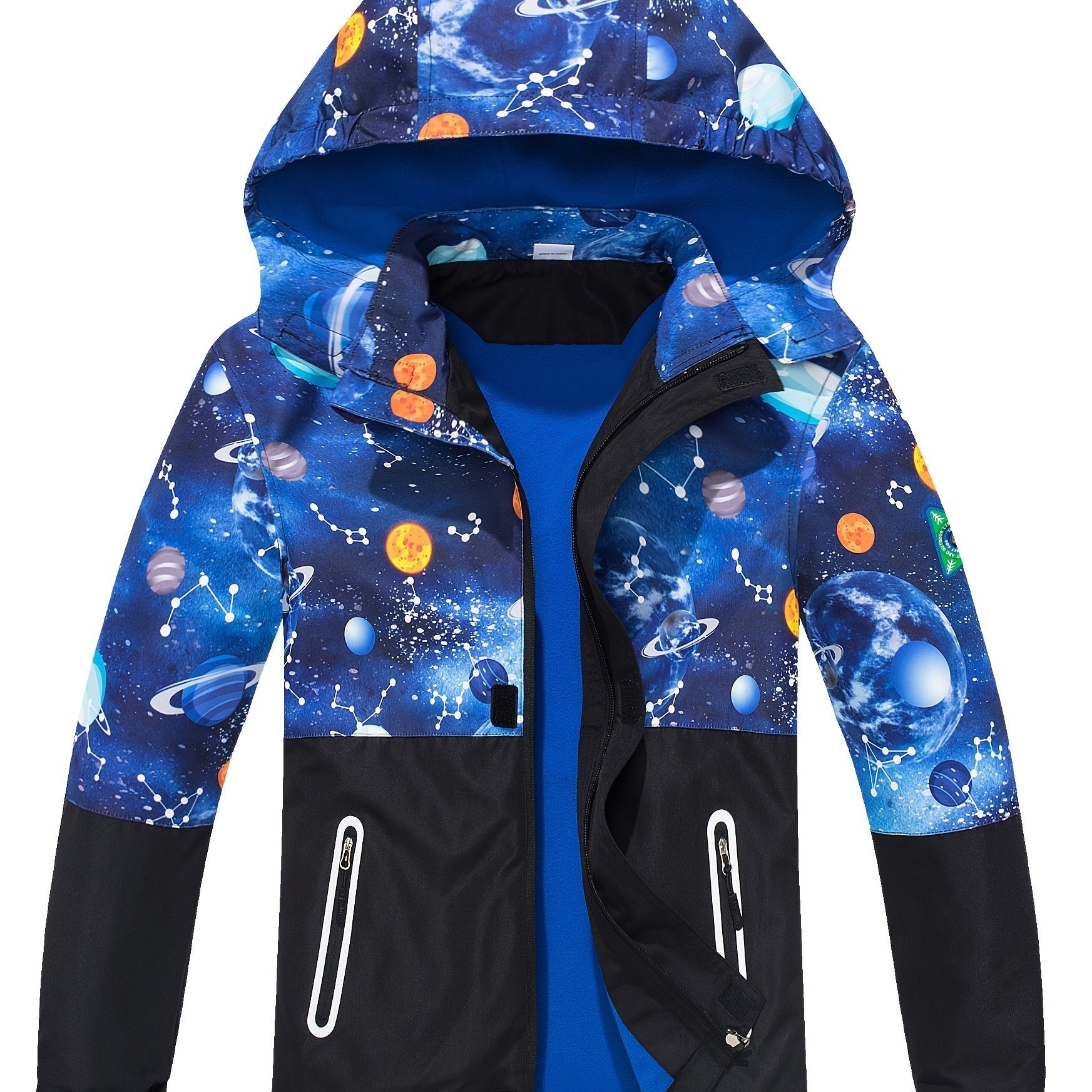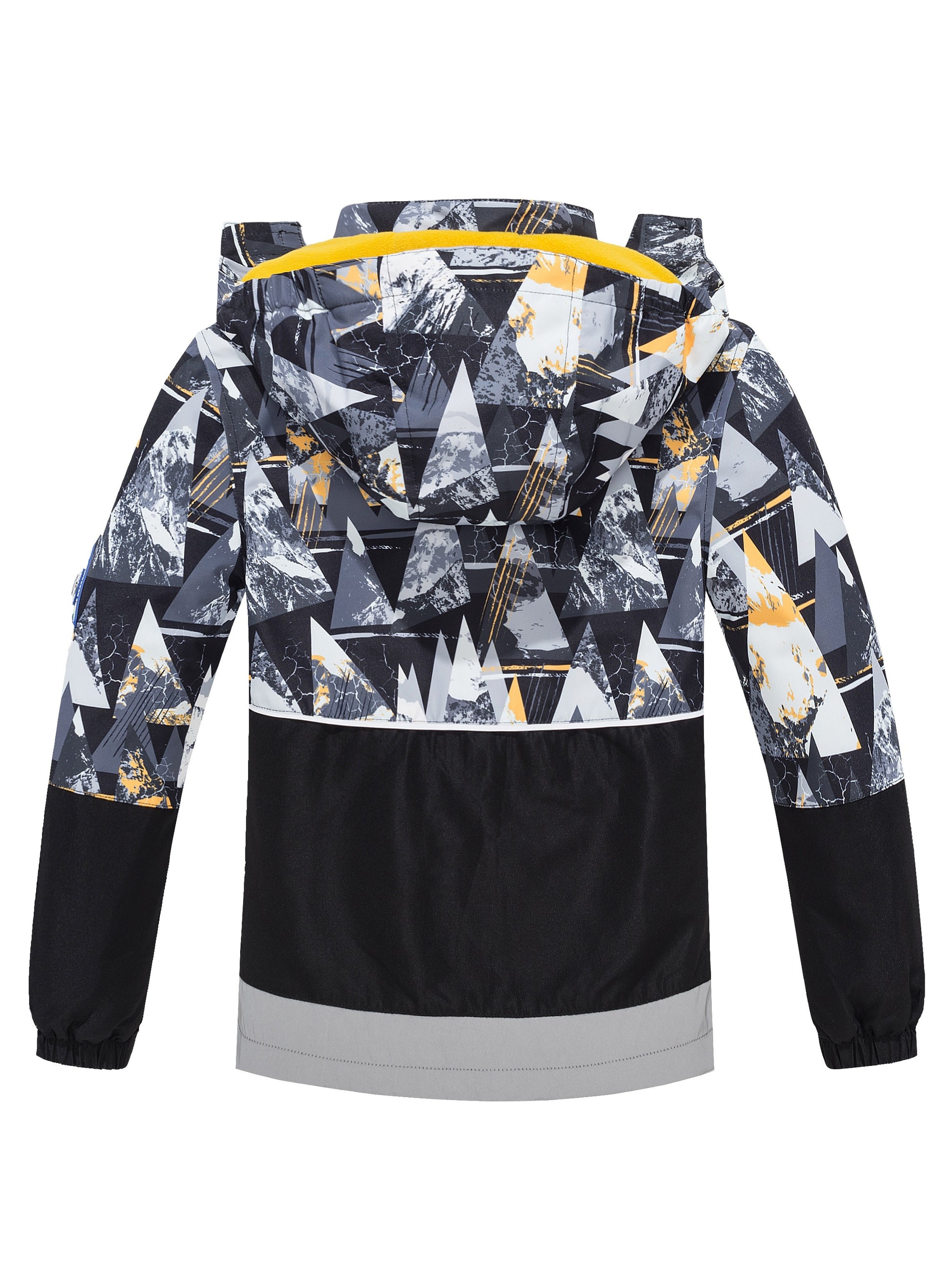 Детский дождевик для мальчиков с съемным капюшоном, флисовая подкладка, цветной блок, водонепроницаемый, ветровка