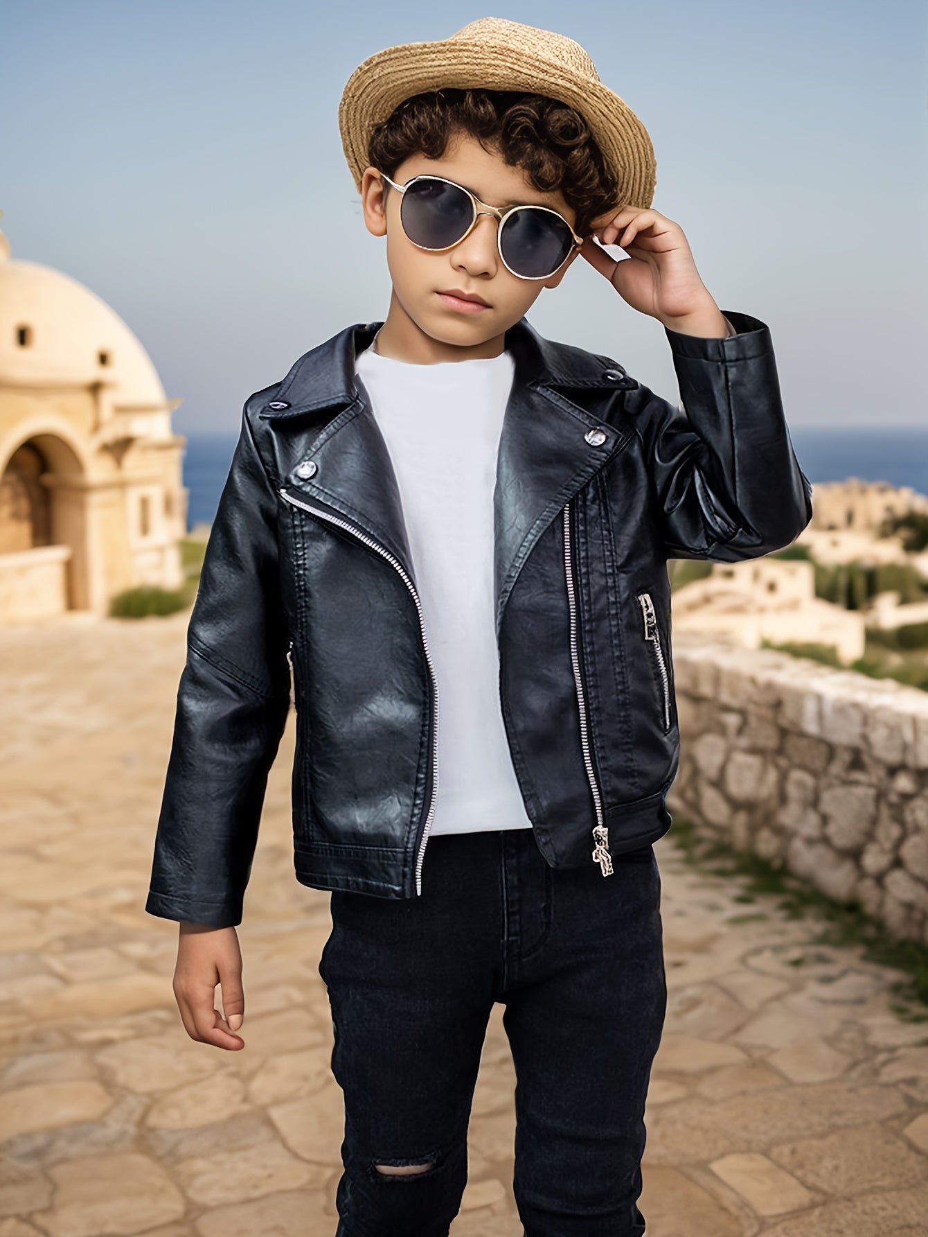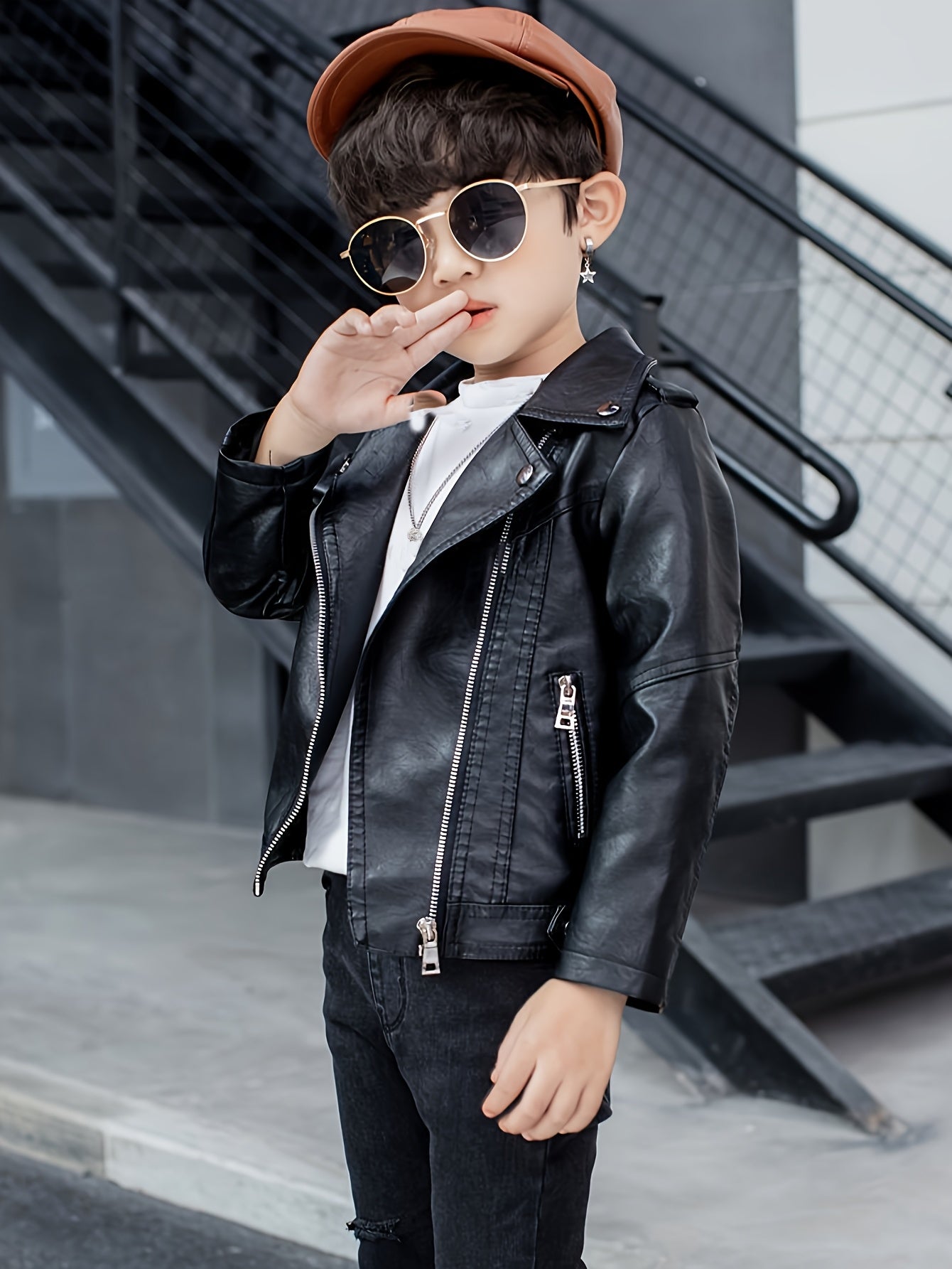 Детская свободная куртка из полиэстера для мальчиков с лацканами и молнией однотонного цвета