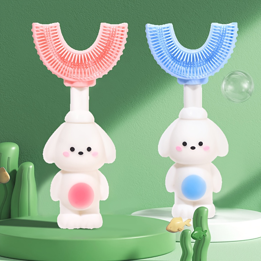 Детская силиконовая зубная щетка U-образной формы для детей от 3 лет с прочным дизайном в виде мультяшной собаки