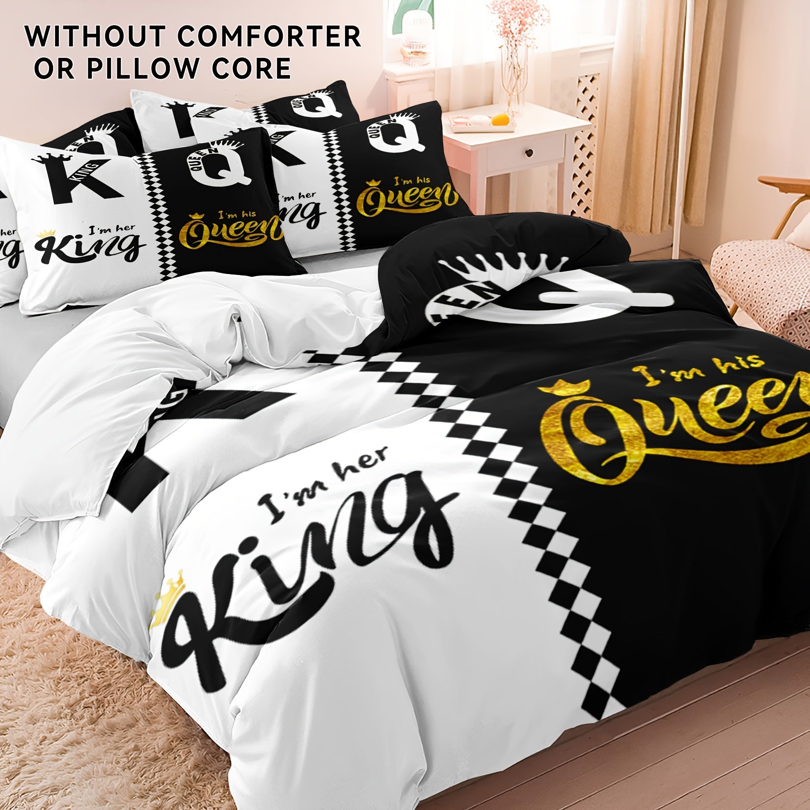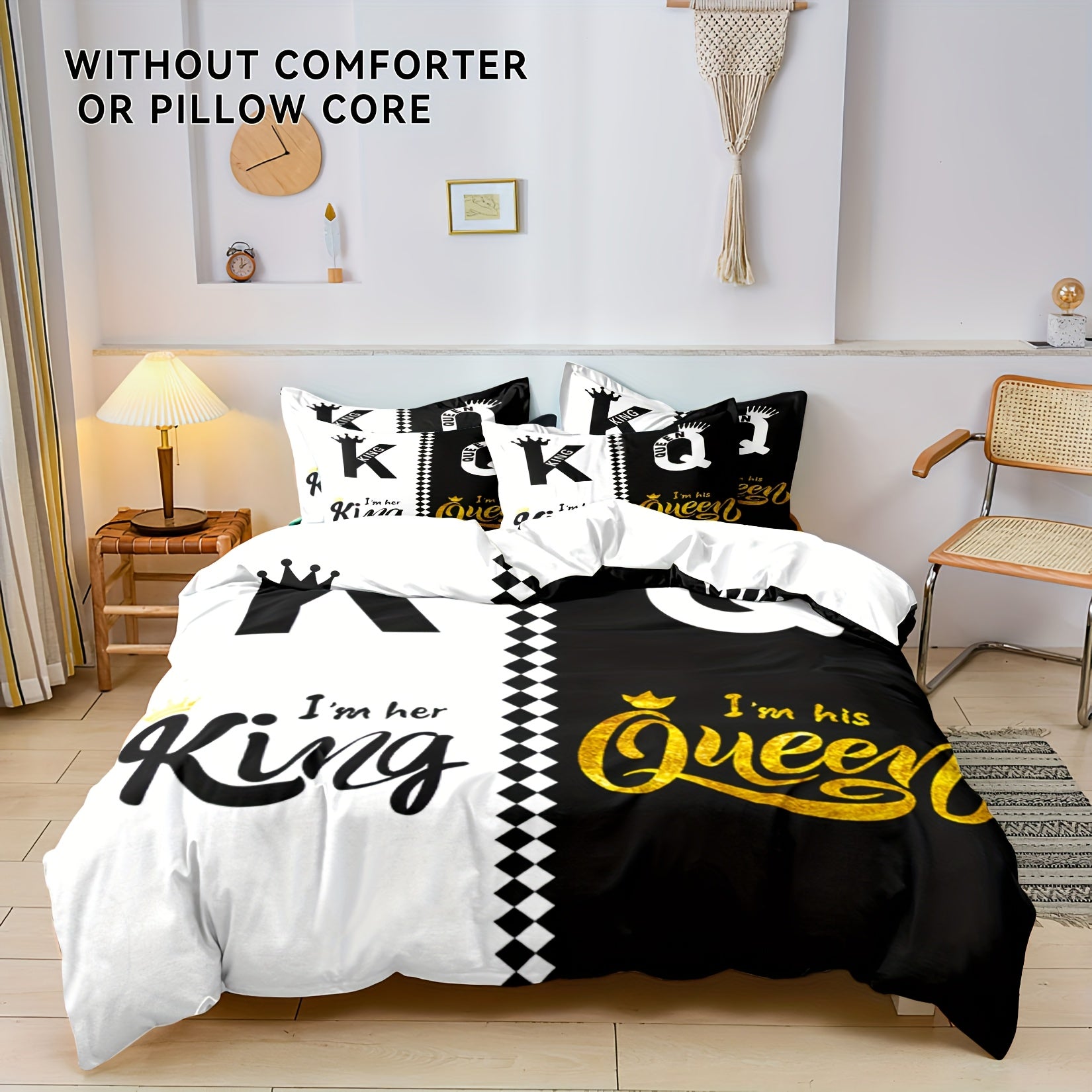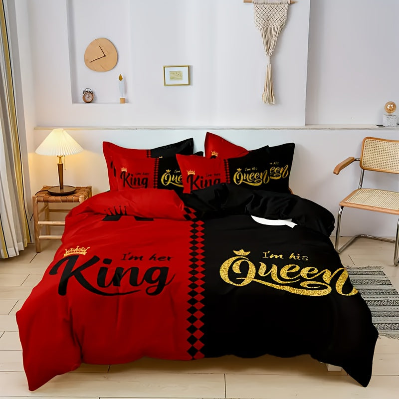 Комплект наволочек для одеяла Корона Король и Королева, 3 шт., полиэстер, молния, всесезонный, цифровая печать