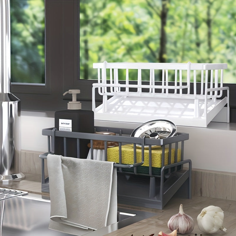 Кадди для крана на кухне и в ванной с держателем для губки и ткани - изготовлен из прочного пластика, не требует батареек.