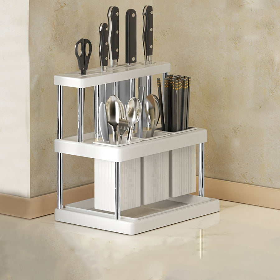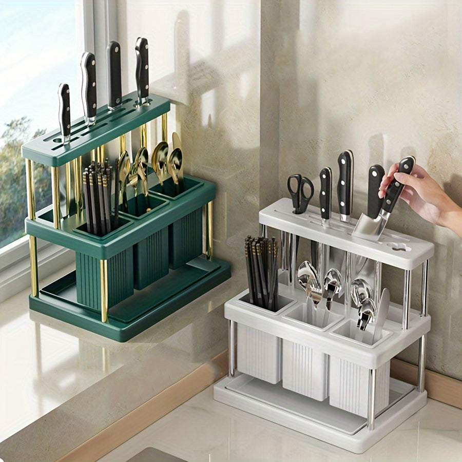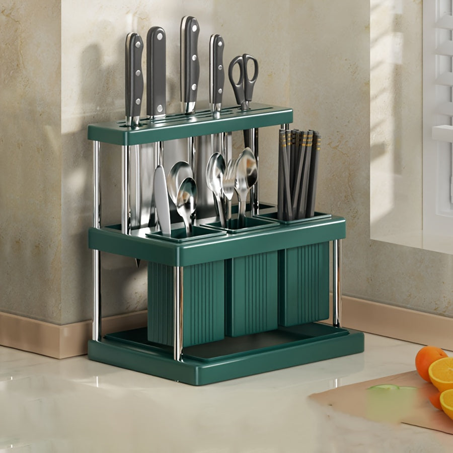Стеллаж для хранения ножей и вилок, с отсеком для палочек для еды, ножей, ложек и других кухонных принадлежностей. Многофункциональный органайзер для столешницы для всех ваших кухонных вещей.
