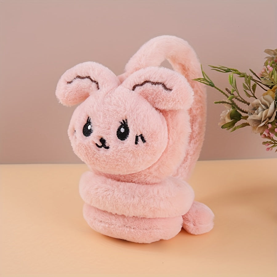 "Ушные мuffs в корейском стиле из мягкого теплого материала с милым дизайном мультяшного кролика - изготовлены из трикотажного полиэстера и спандекса, только ручная стирка - доступны в нескольких цветах"