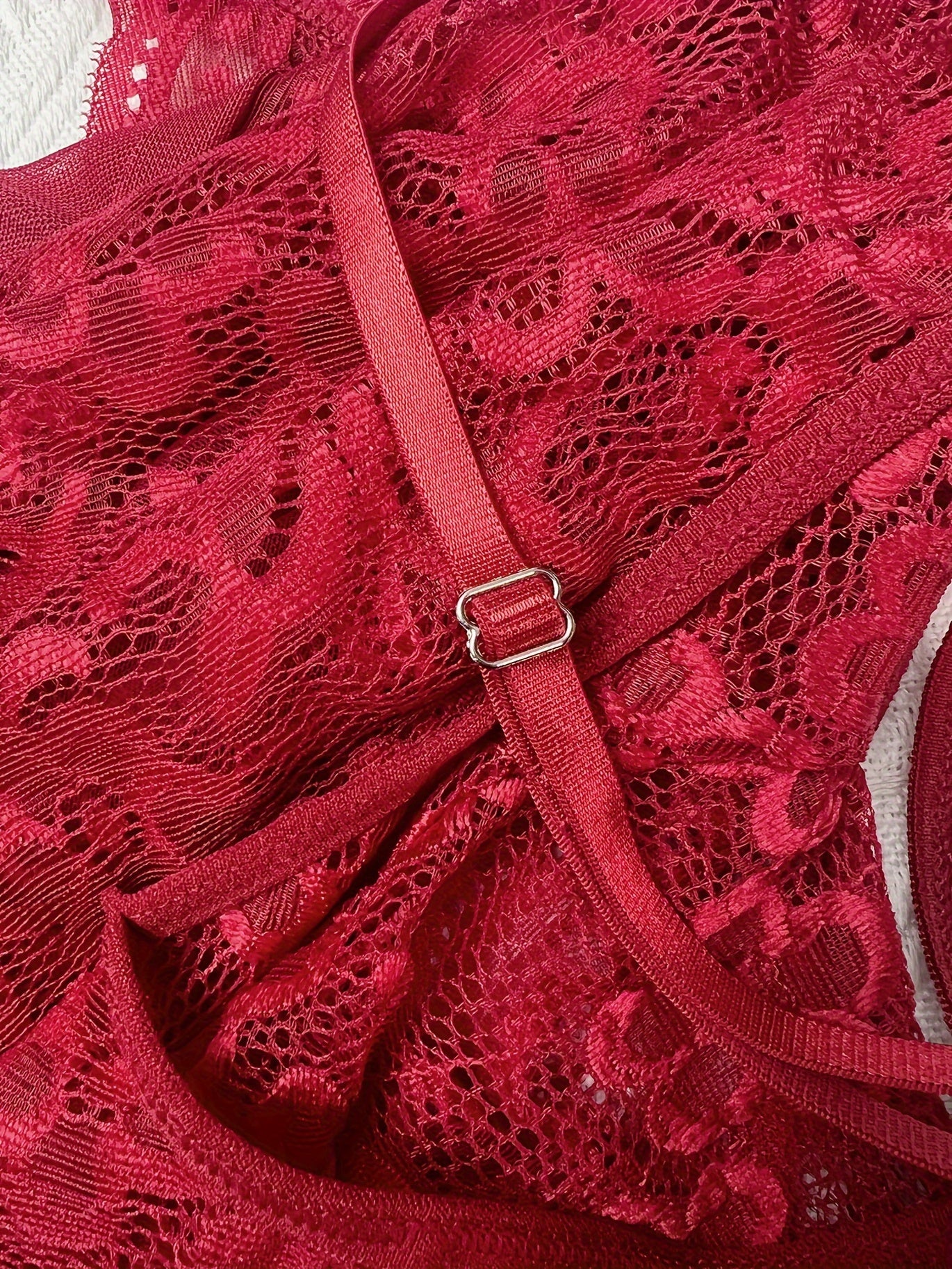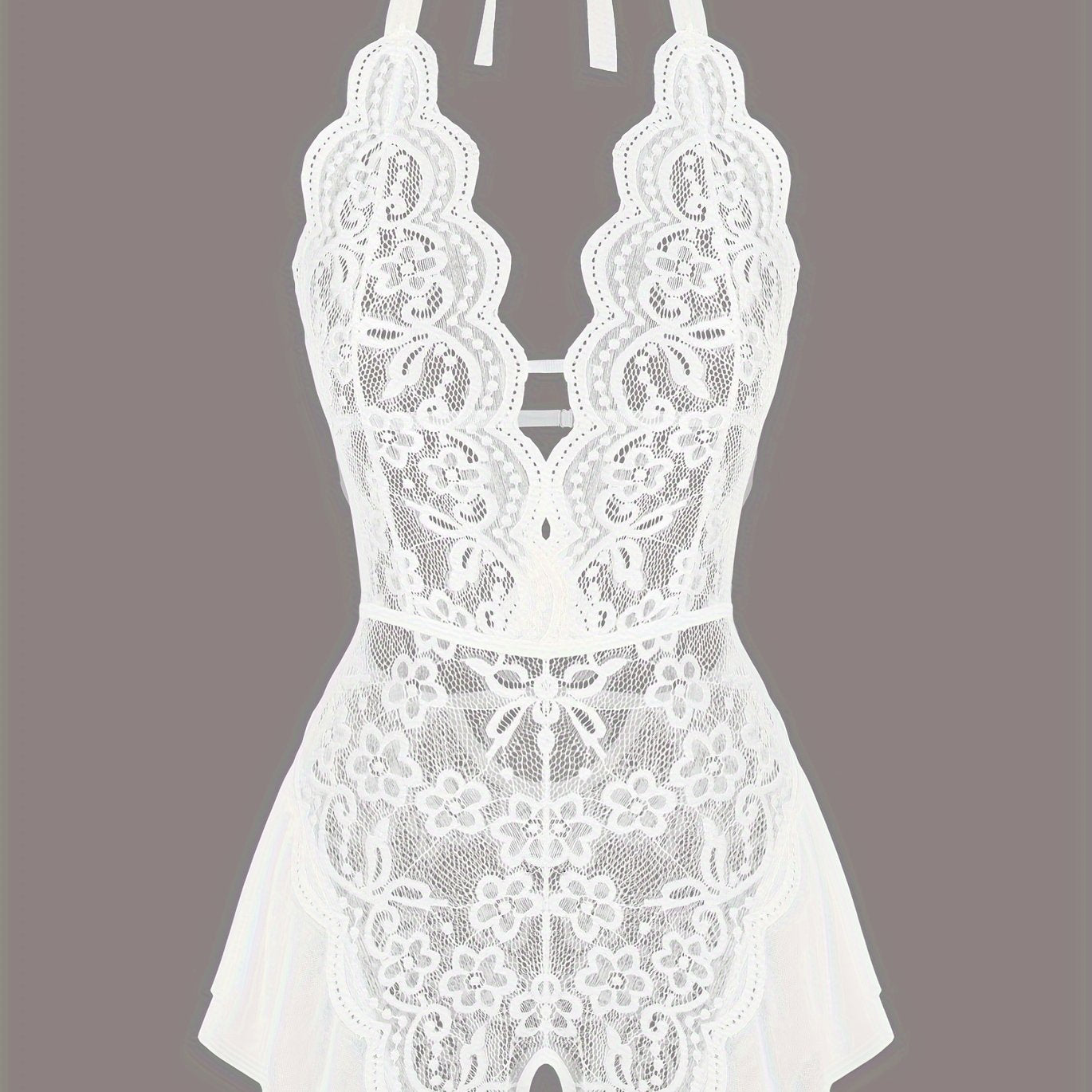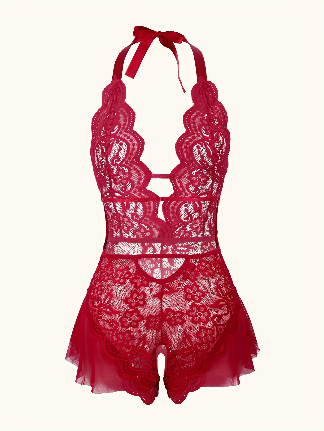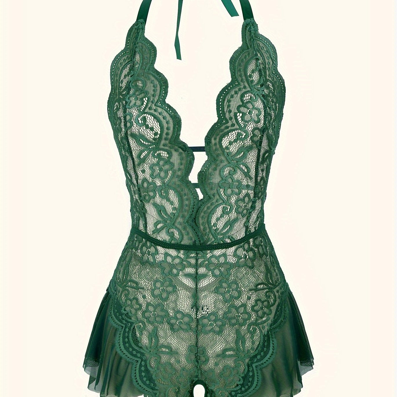 Кружевной сетчатый тедди для женщин с глубоким V, открытым промежностью, боди-халтер, сексуальное белье