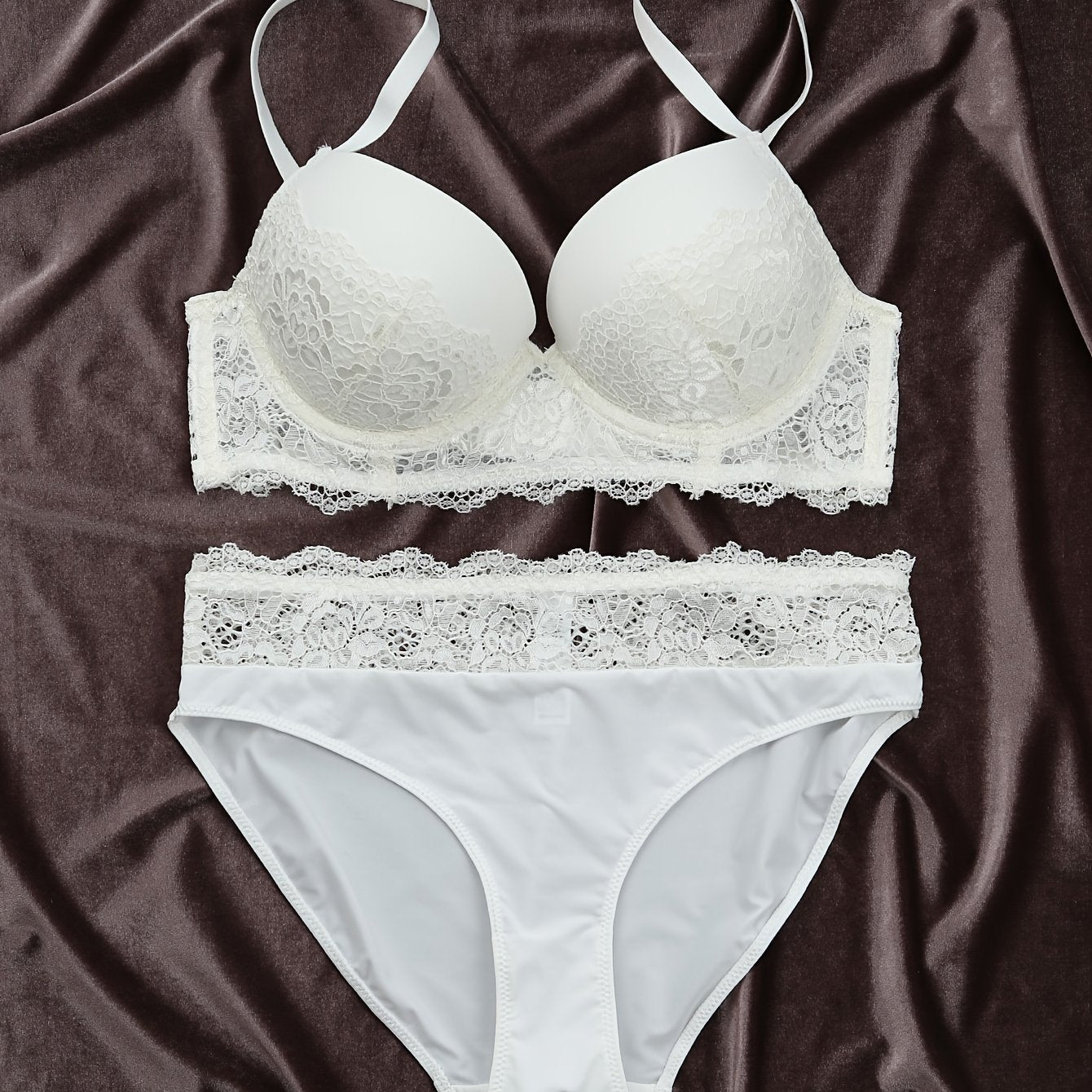 Кружевной лифчик с пуш-ап эффектом и комплект трусиков для женщин, сексуальное белье и нижнее белье
