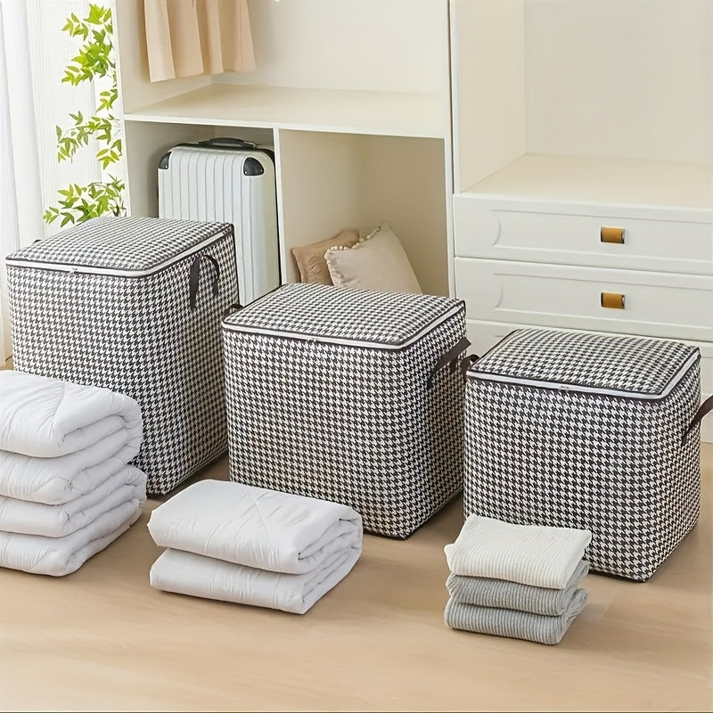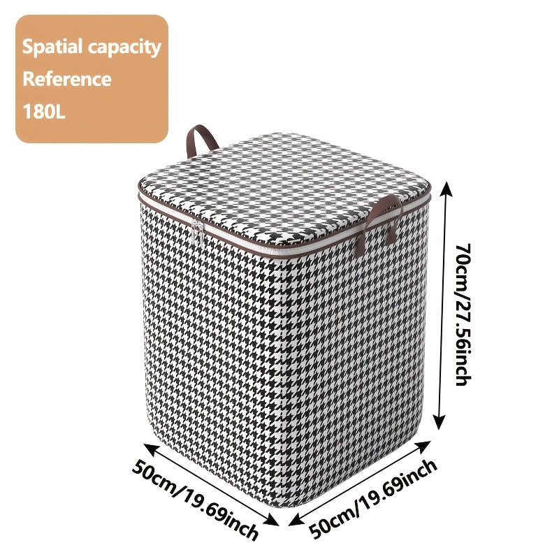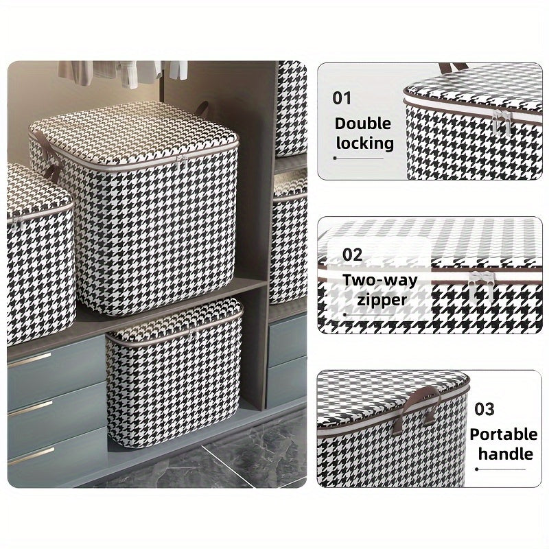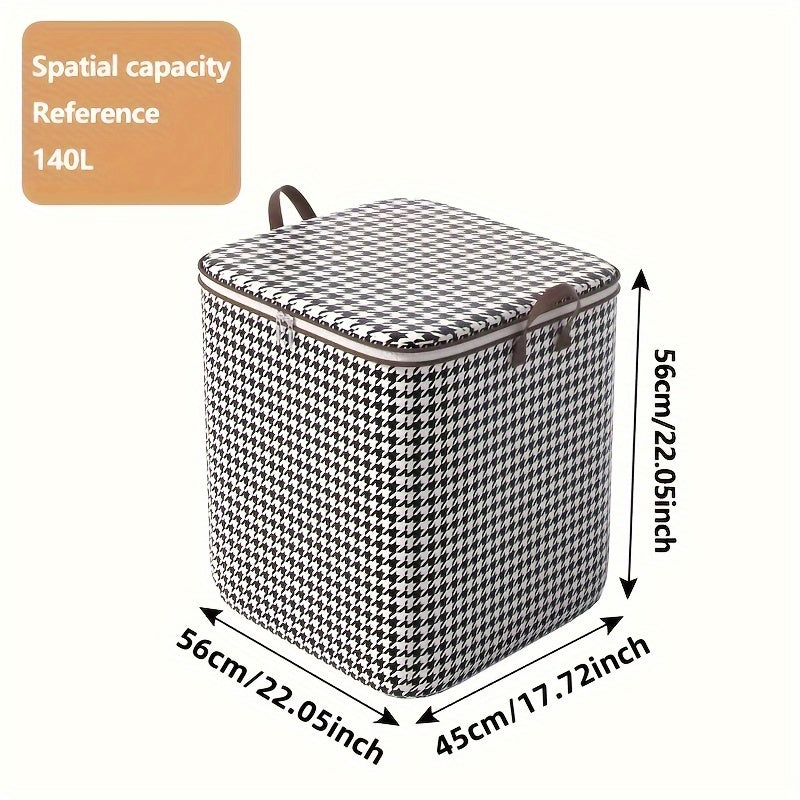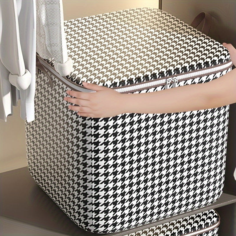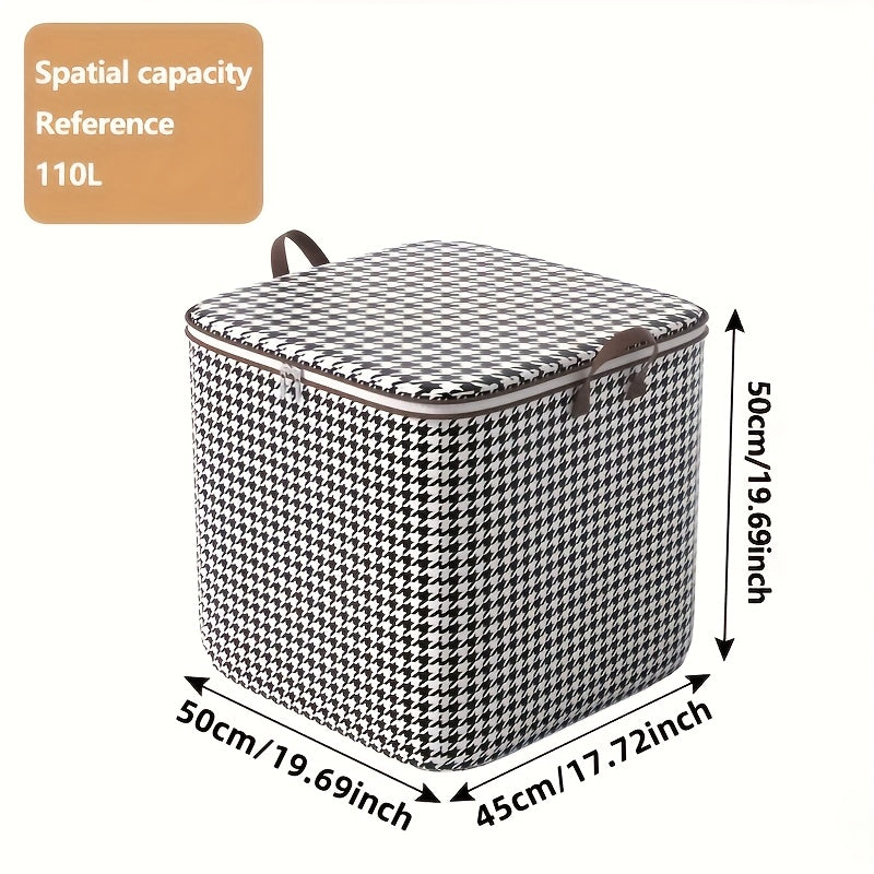 Большая вместительная коробка для хранения с узором «гусиная лапка» и ручками из искусственной кожи для одежды, постельных принадлежностей, игрушек
