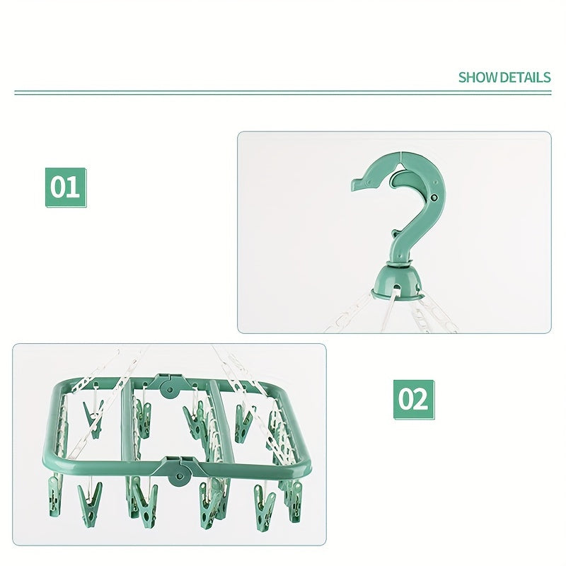 Большая пластиковая вешалка для носок с 32 зажимами, прочная сушилка для нижнего белья, органайзер для хранения в ванной, спальне, шкафу, гардеробе, доме, общежитии в розовом, синем или зеленом цвете.