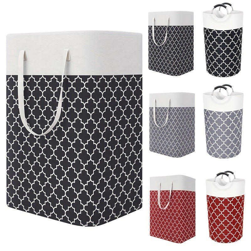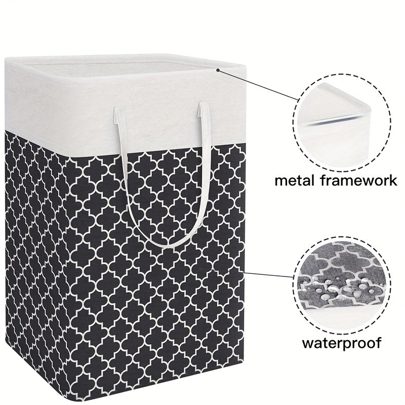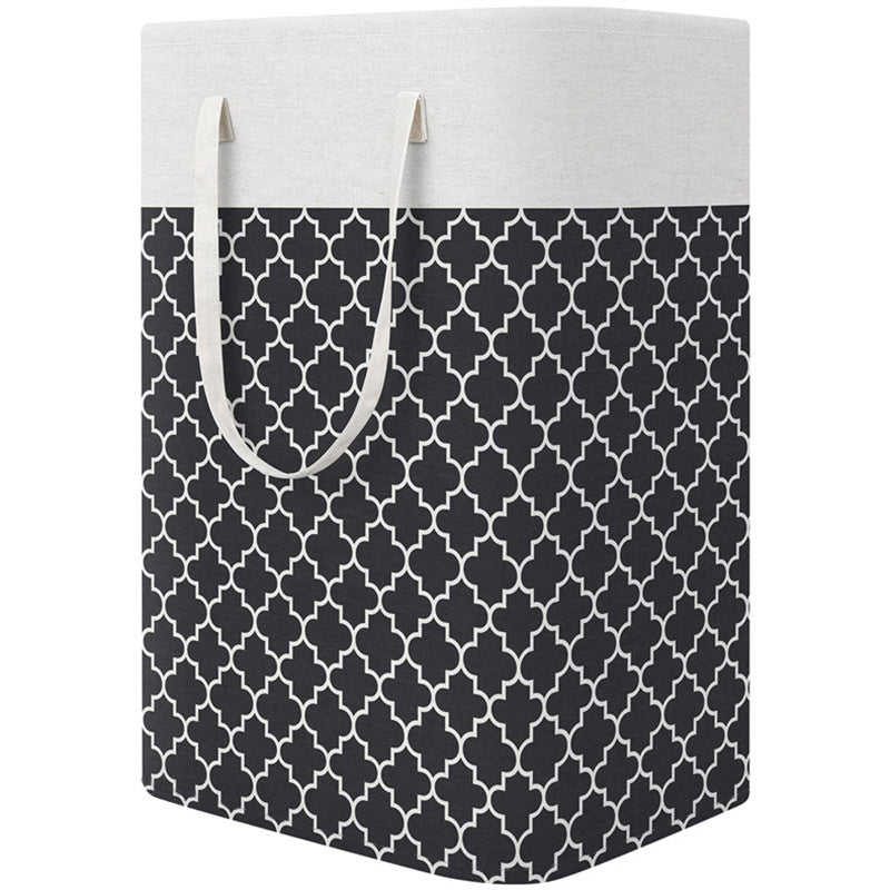 Большая складная корзина для белья с удобными ручками, идеально подходит для стирки, спальни, общежития, одежды, полотенец и игрушек. Эта стоячая корзина для одежды выполнена в стильном черном дизайне с клеверным узором.