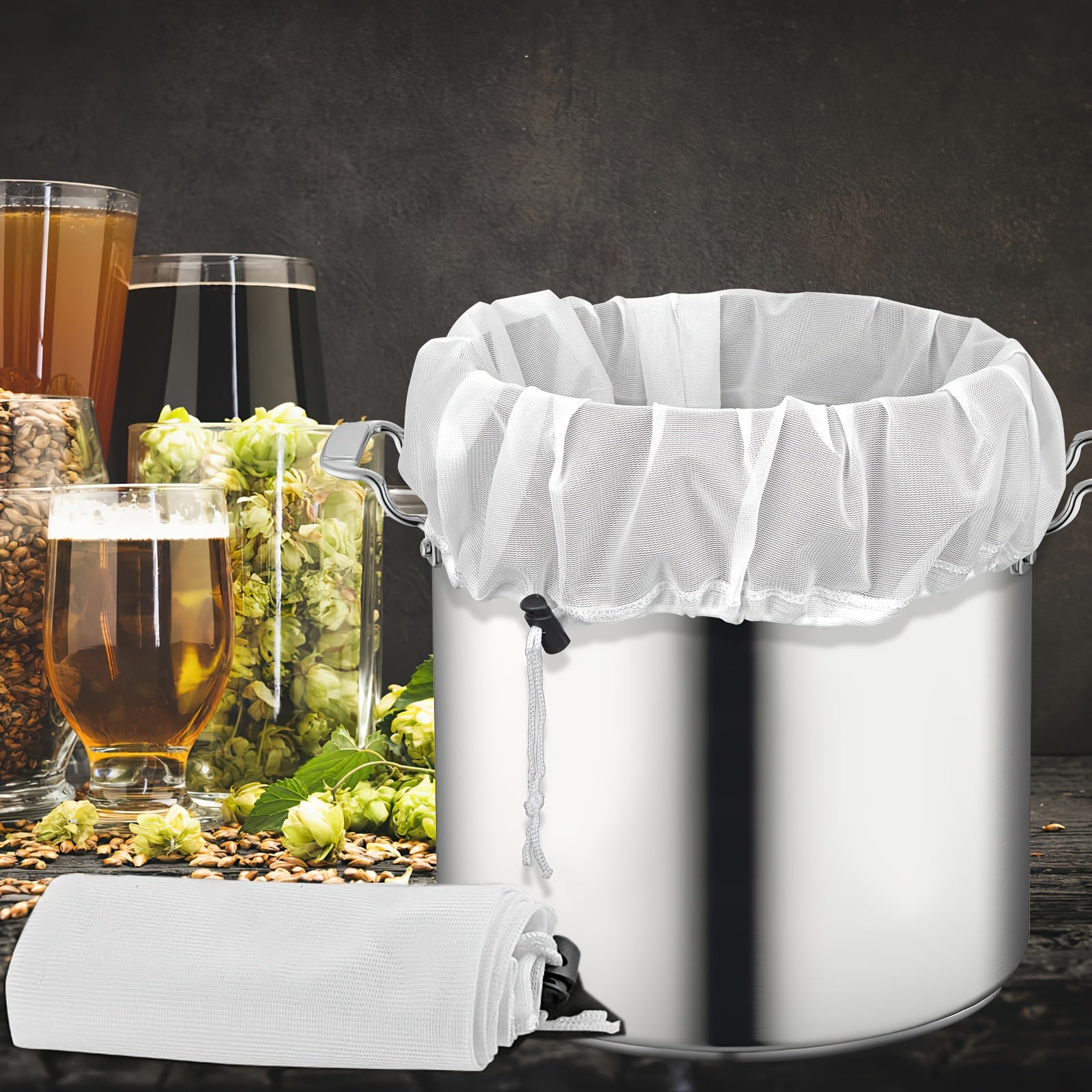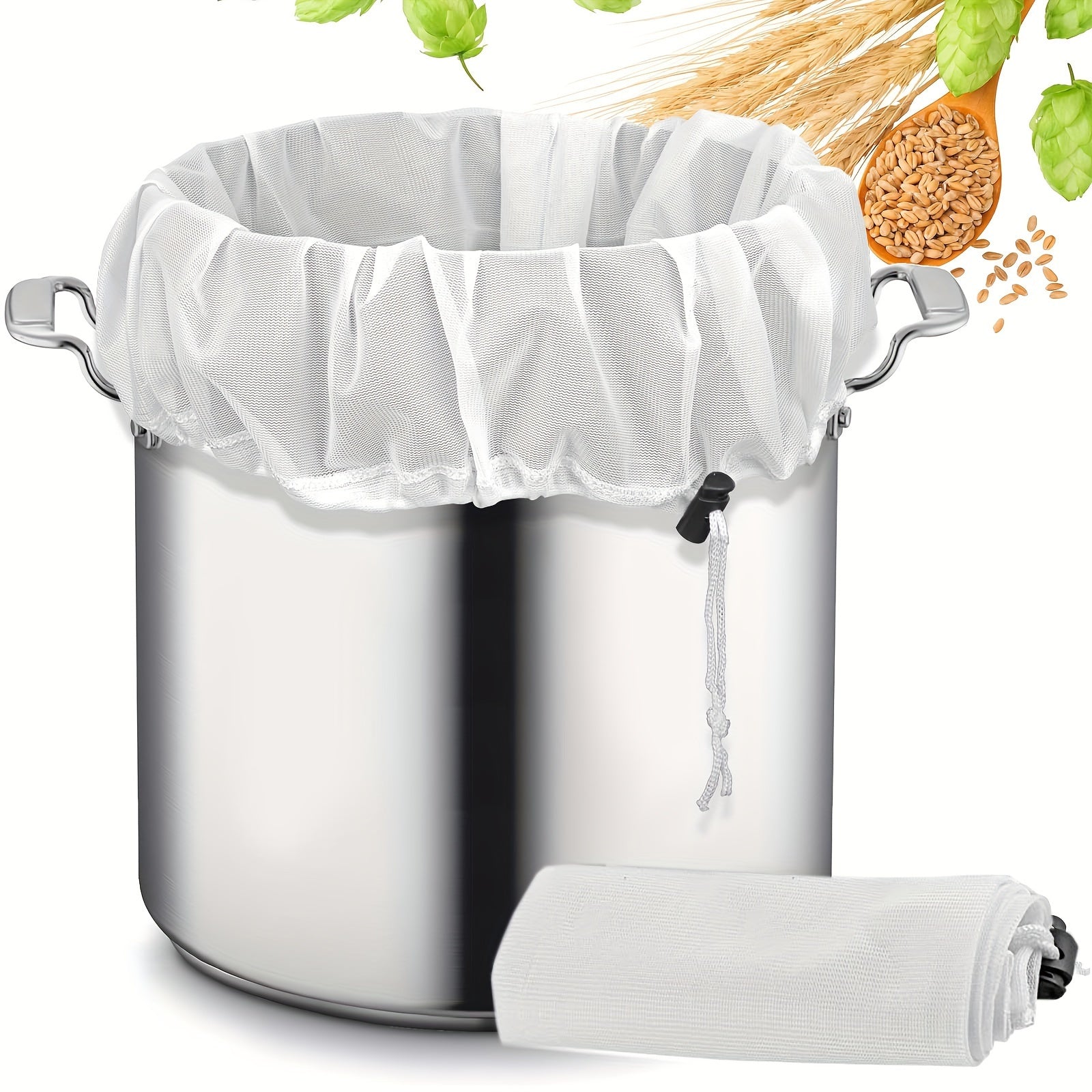 Большой, прочный мешок для заваривания с мелкой сеткой - 66,04 см x 55,88 см, регулируемый шнурок для домашнего пивоварения. Отлично подходит для хмеля, зерна и фруктового вина для пивоварения.