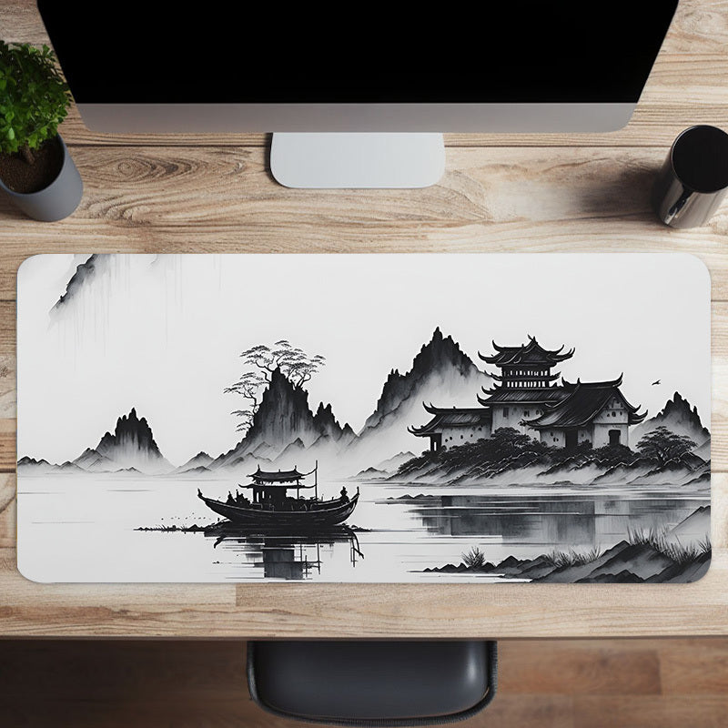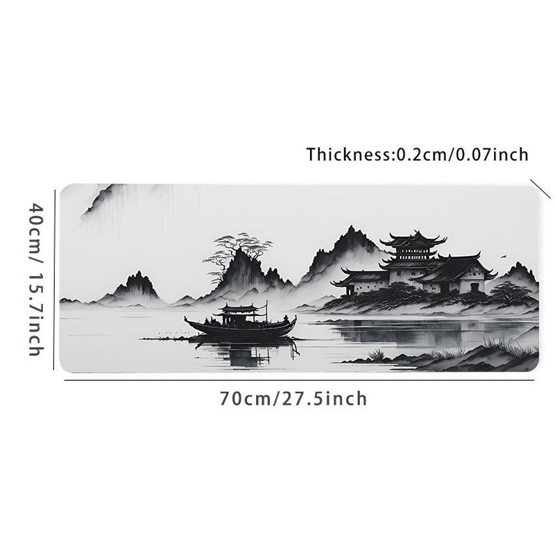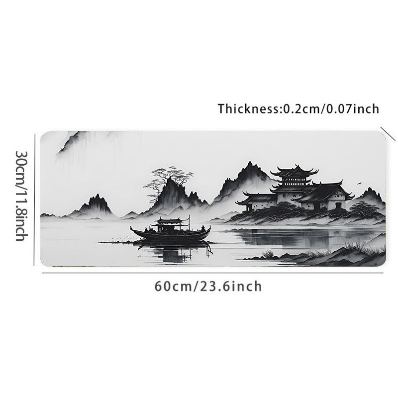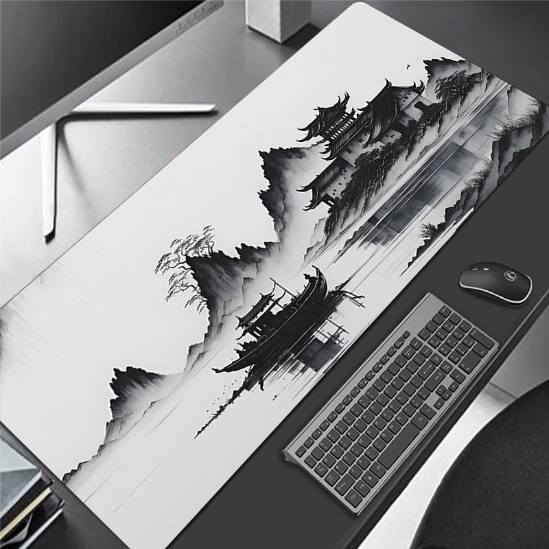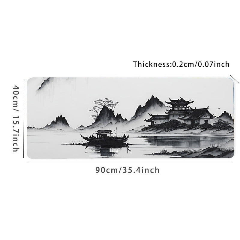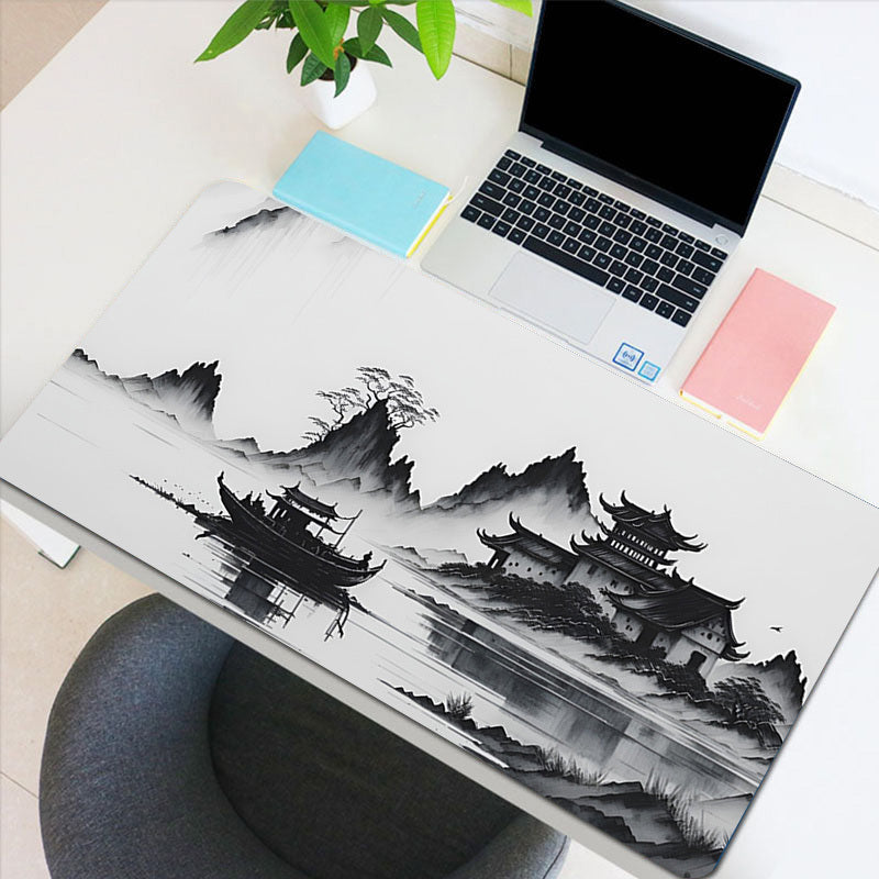 Большой игровой коврик для мыши с дизайном пейзажной туши, выполненный из натуральной резины, нескользящий, для стола