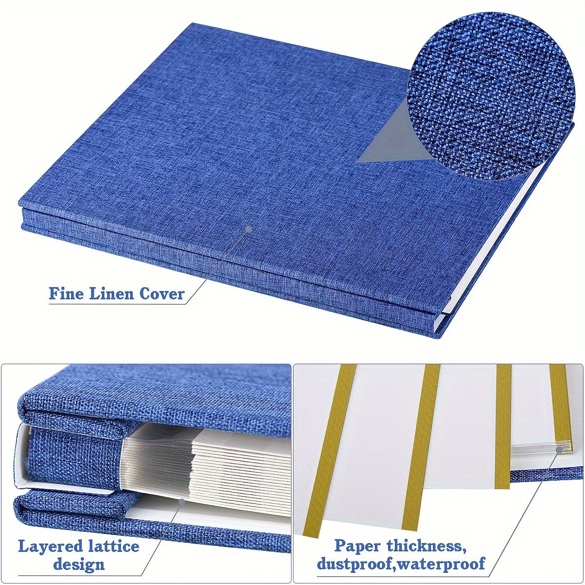 Большой льняной фотоальбом для фотографий 4x6, 5x7, 8x10 с 40 липкими страницами для скрапбукинга и подарков