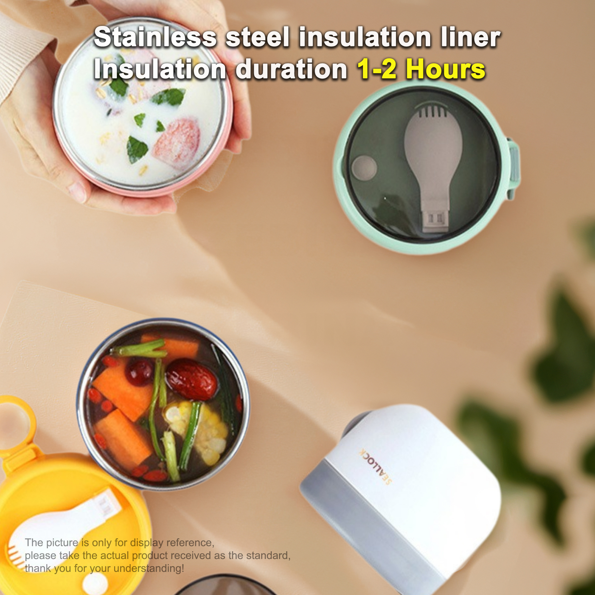 Большая нержавеющая стальная чашка для завтрака 600 мл, изолированная суповая миска с складной ложкой