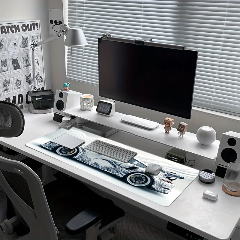Большой белый коврик для мыши в стиле укиёэ с нескользящей резиновой основой 89,92x39,88 см