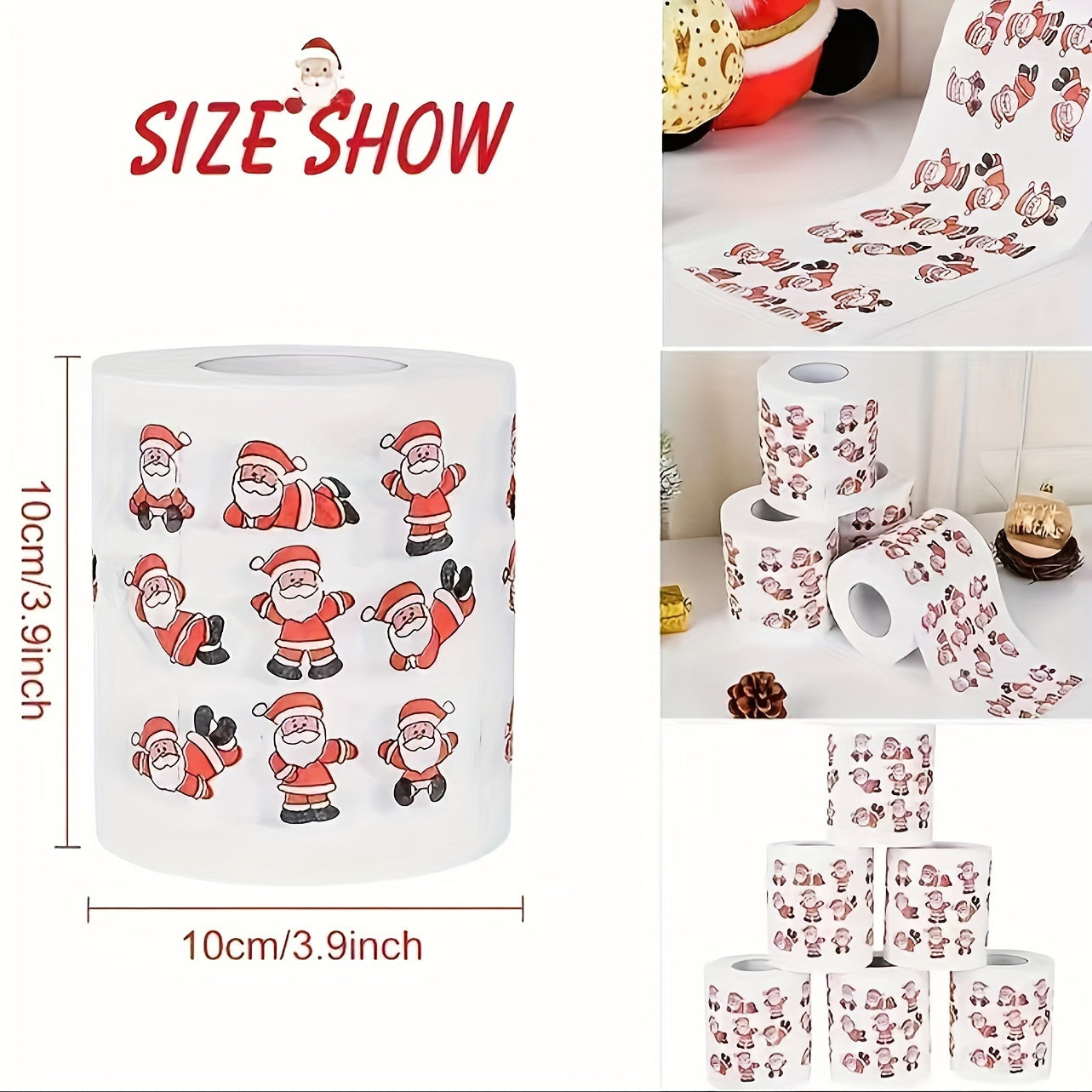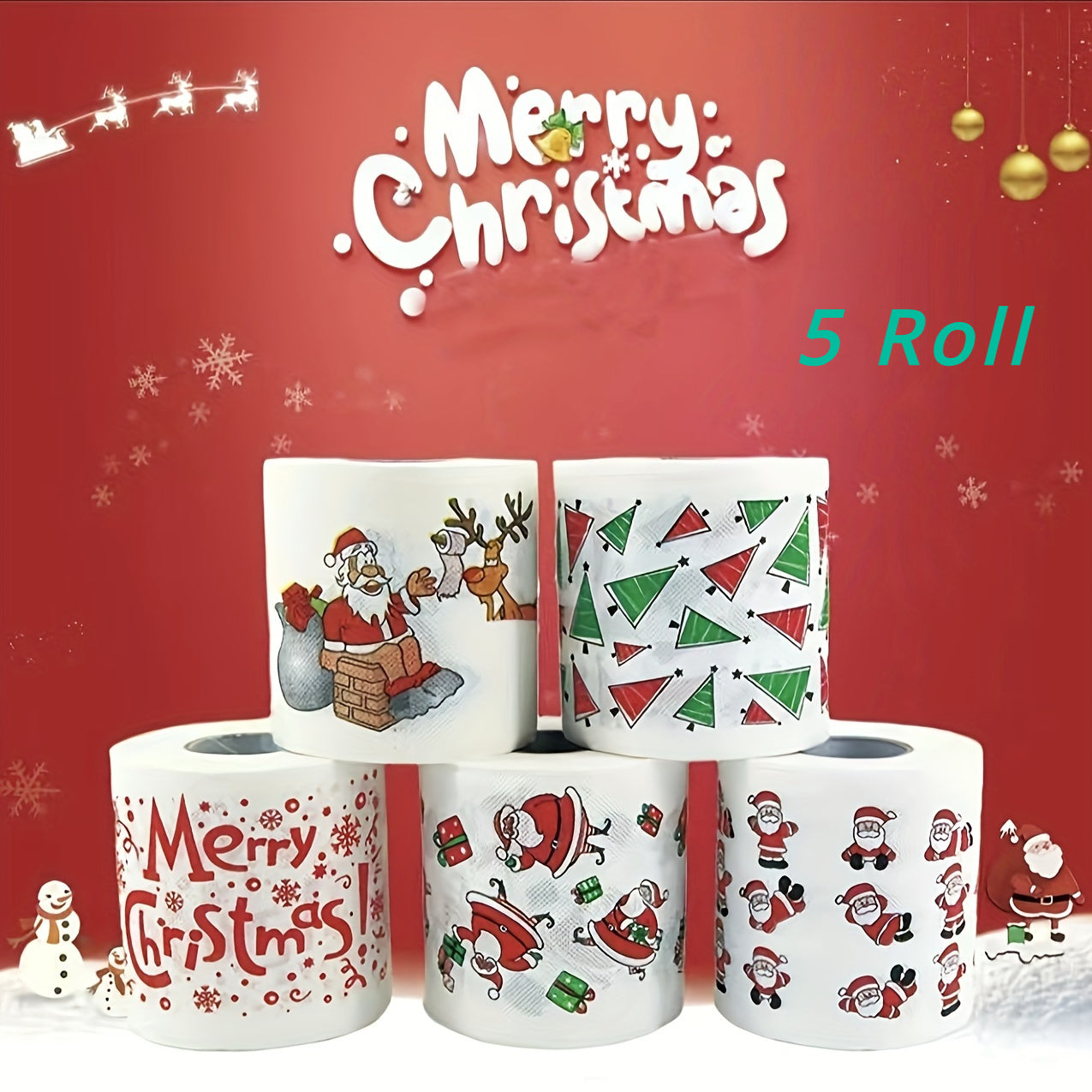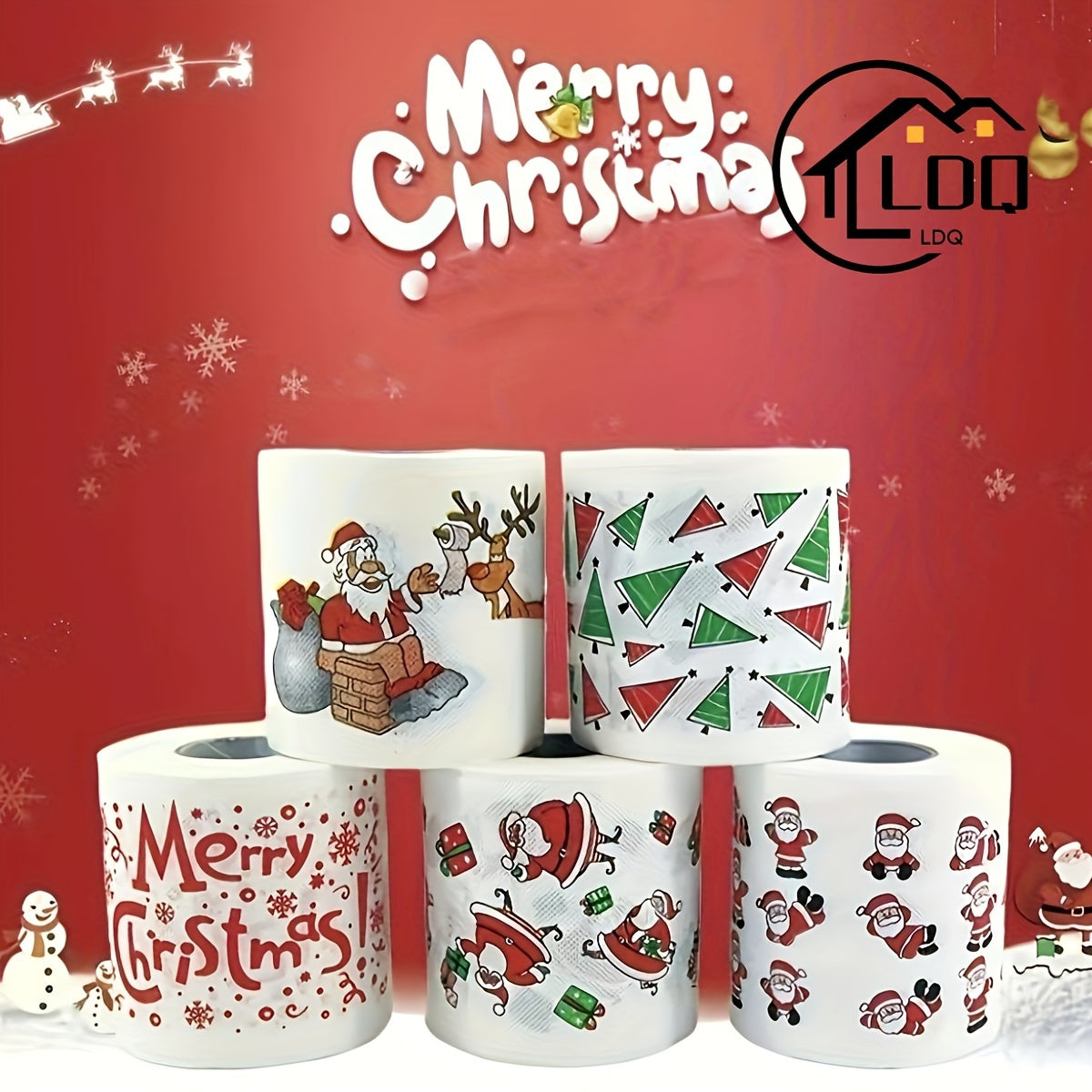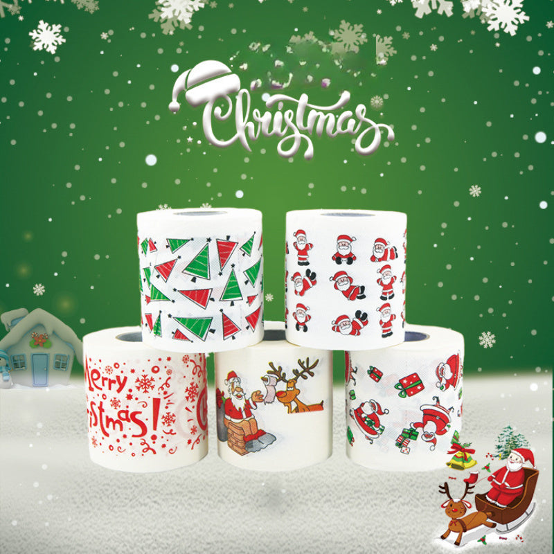 LATTBY Биодеградируемые рождественские туалетные бумажные рулоны - 5 штук с праздничными дизайнами Санты, оленей и елок. Идеально подходит для праздничного декора и принадлежностей для вечеринок - мягкая бумага для праздничного настроения.
