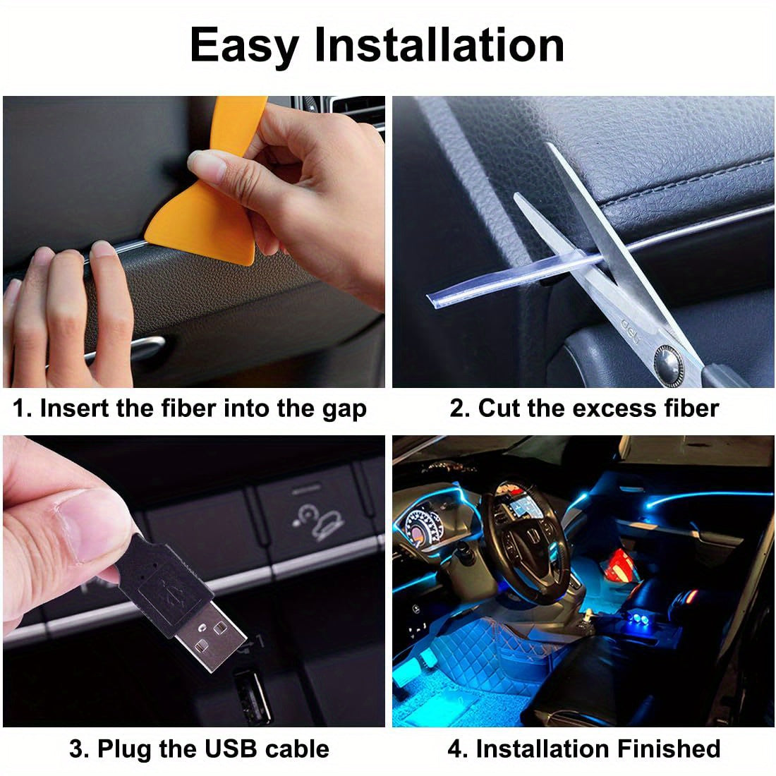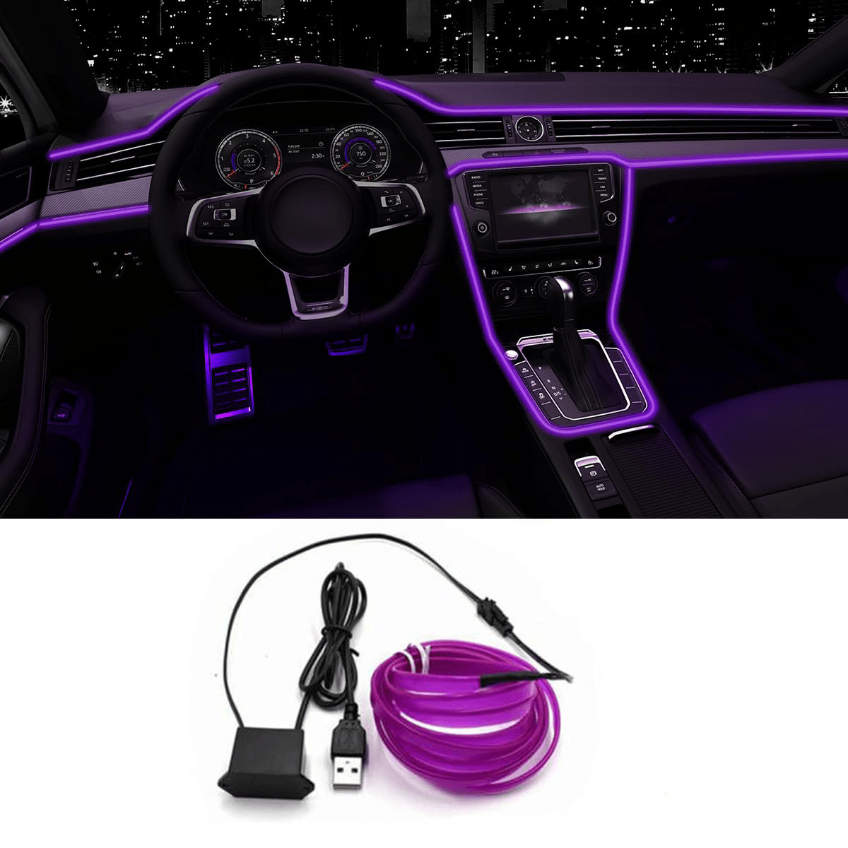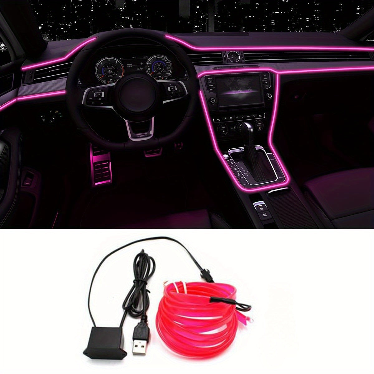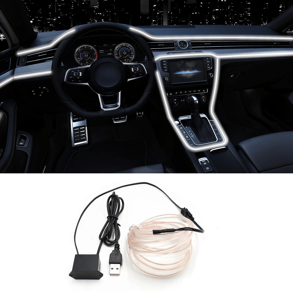 Светодиодная внутренняя подсветка для автомобиля, 5 м, ледяной голубой неоновый свет, легкая установка
