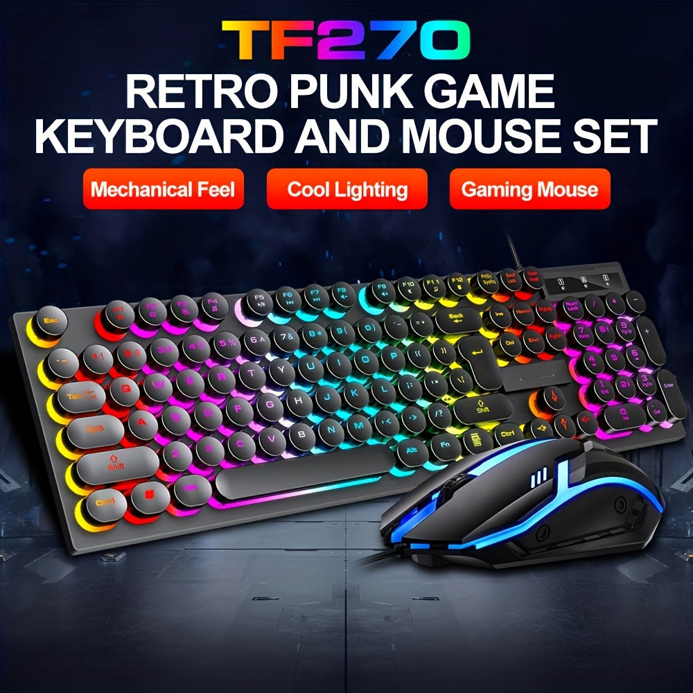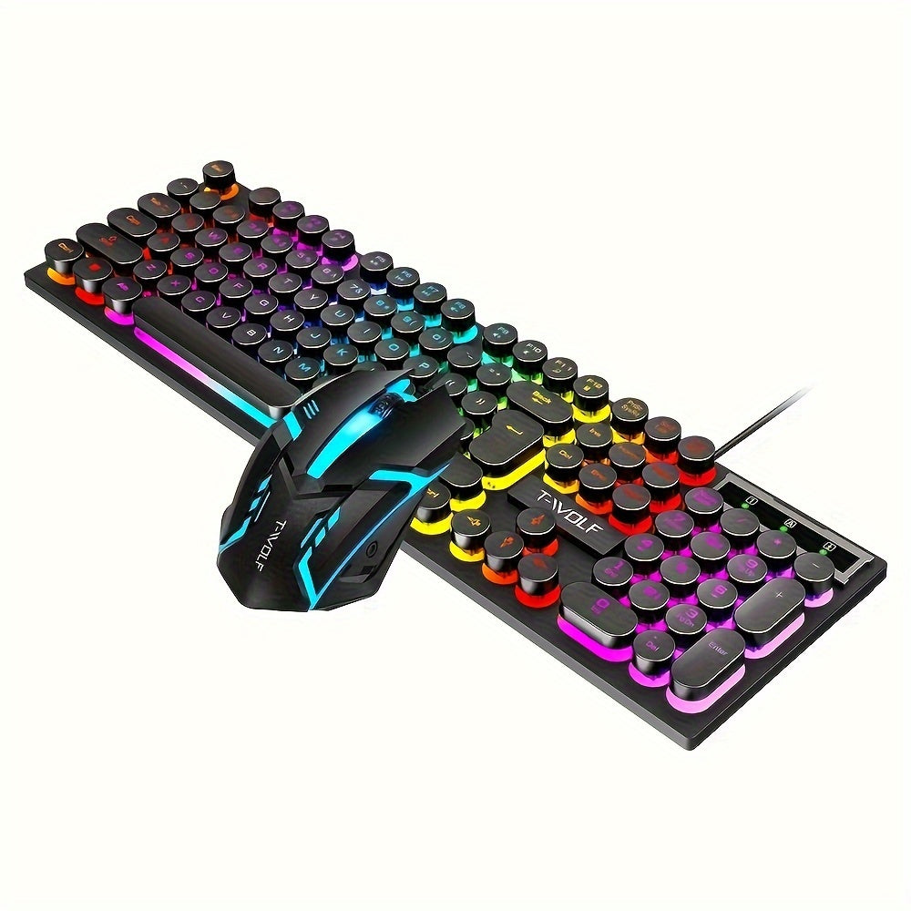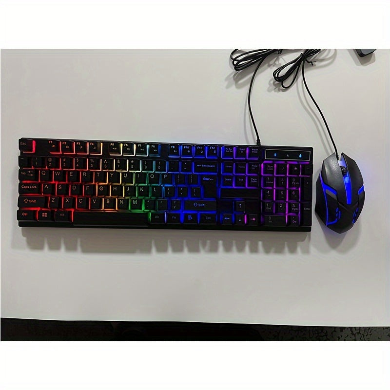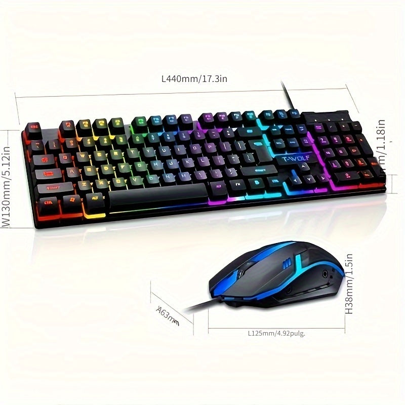 Набор проводной клавиатуры и мыши с LED-подсветкой и механическим ощущением для игр и офисного использования.