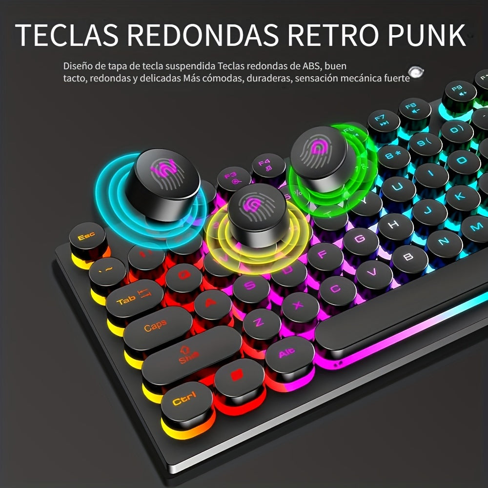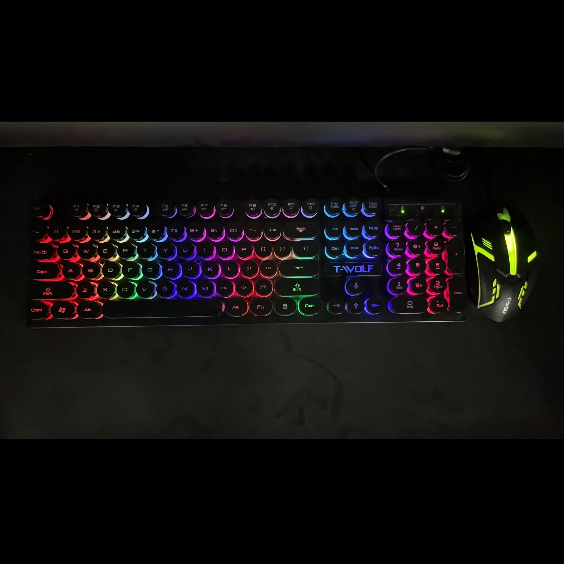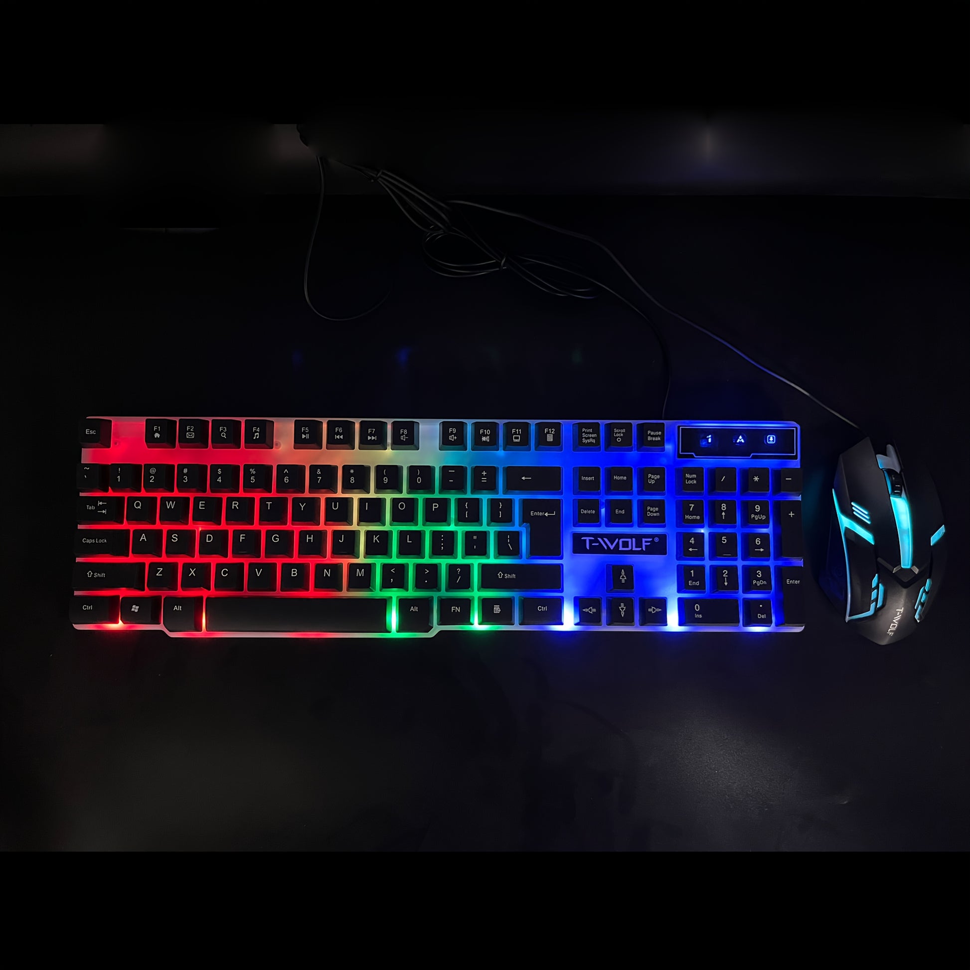 Набор проводной клавиатуры и мыши с LED-подсветкой и механическим ощущением для игр и офисного использования.