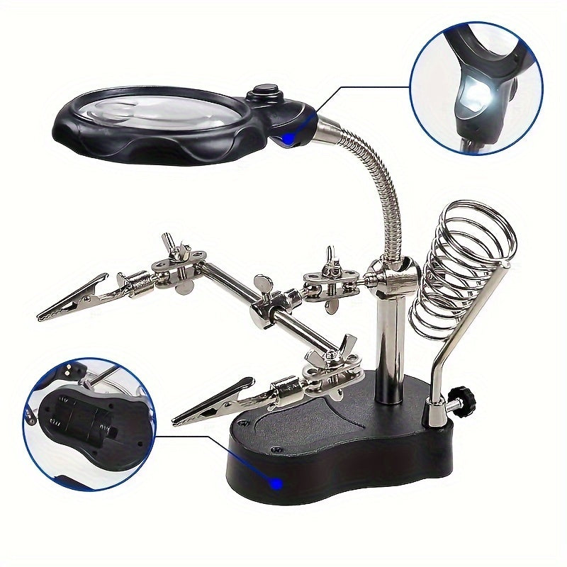 Настольная лампа с LED-увеличением и зажимом для ремонта рук для ювелирных миниатюр и хобби