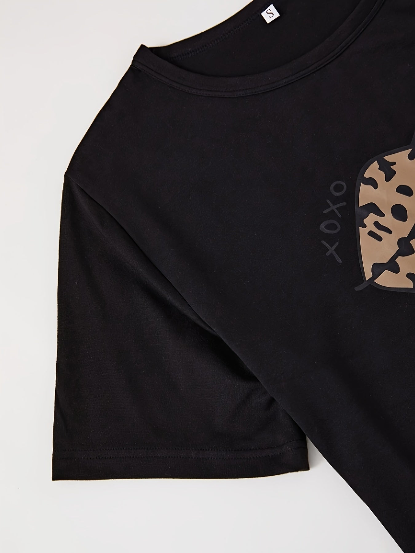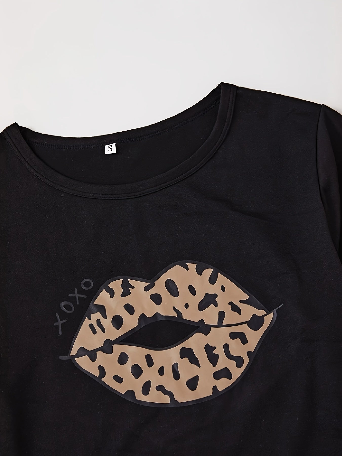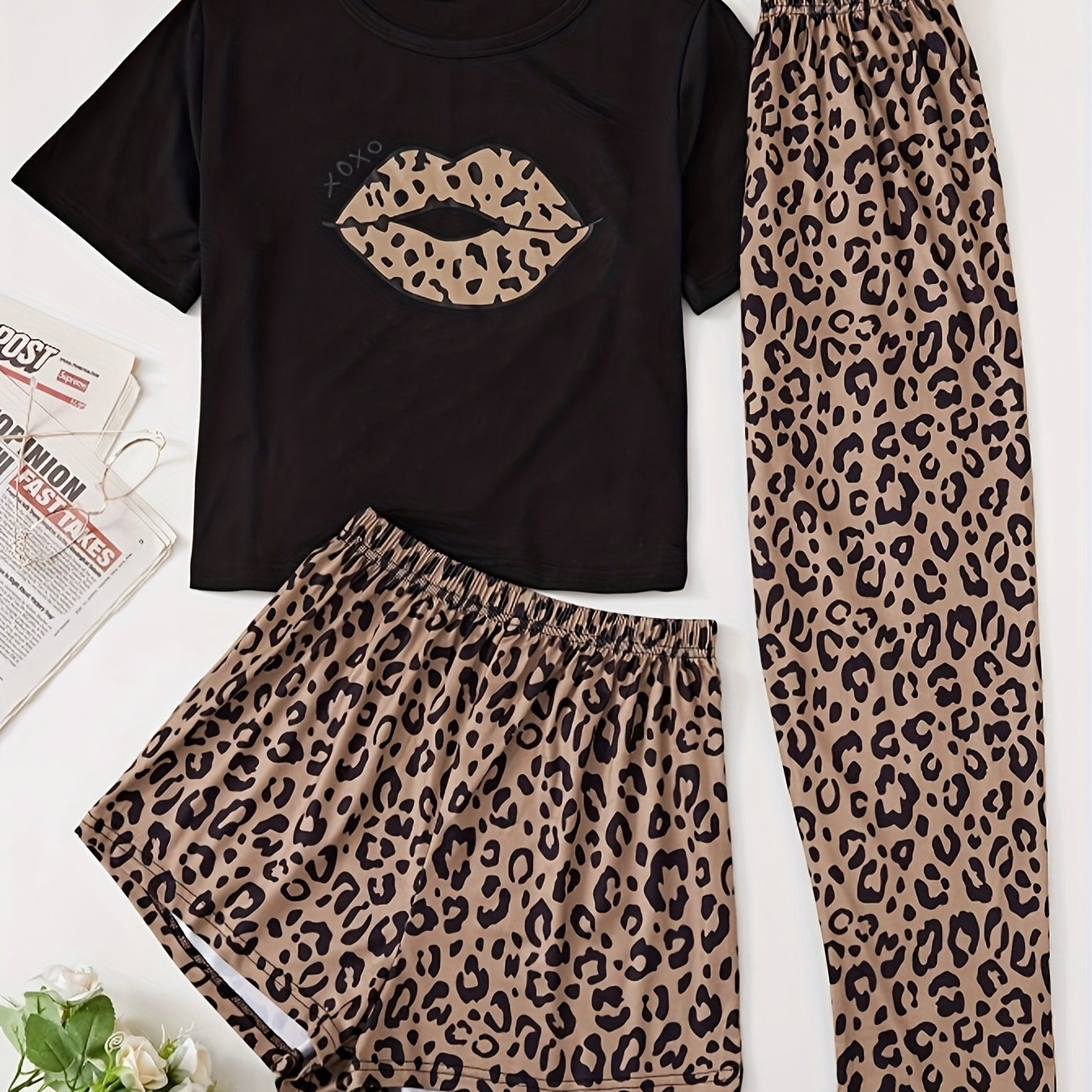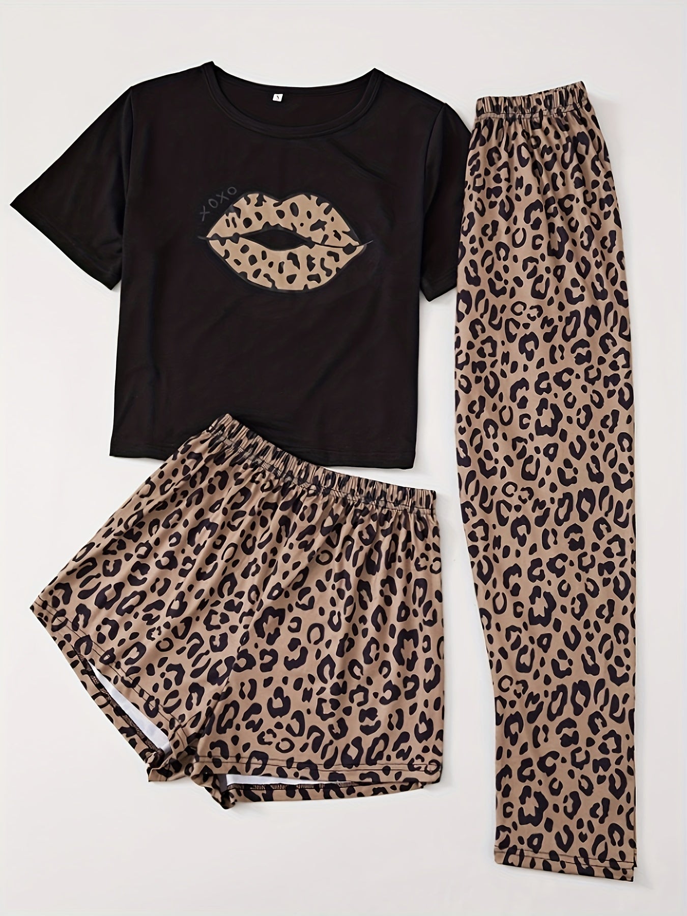 Пижама с принтом леопардовых губ для женщин, топ с коротким рукавом и шорты для сна и отдыха