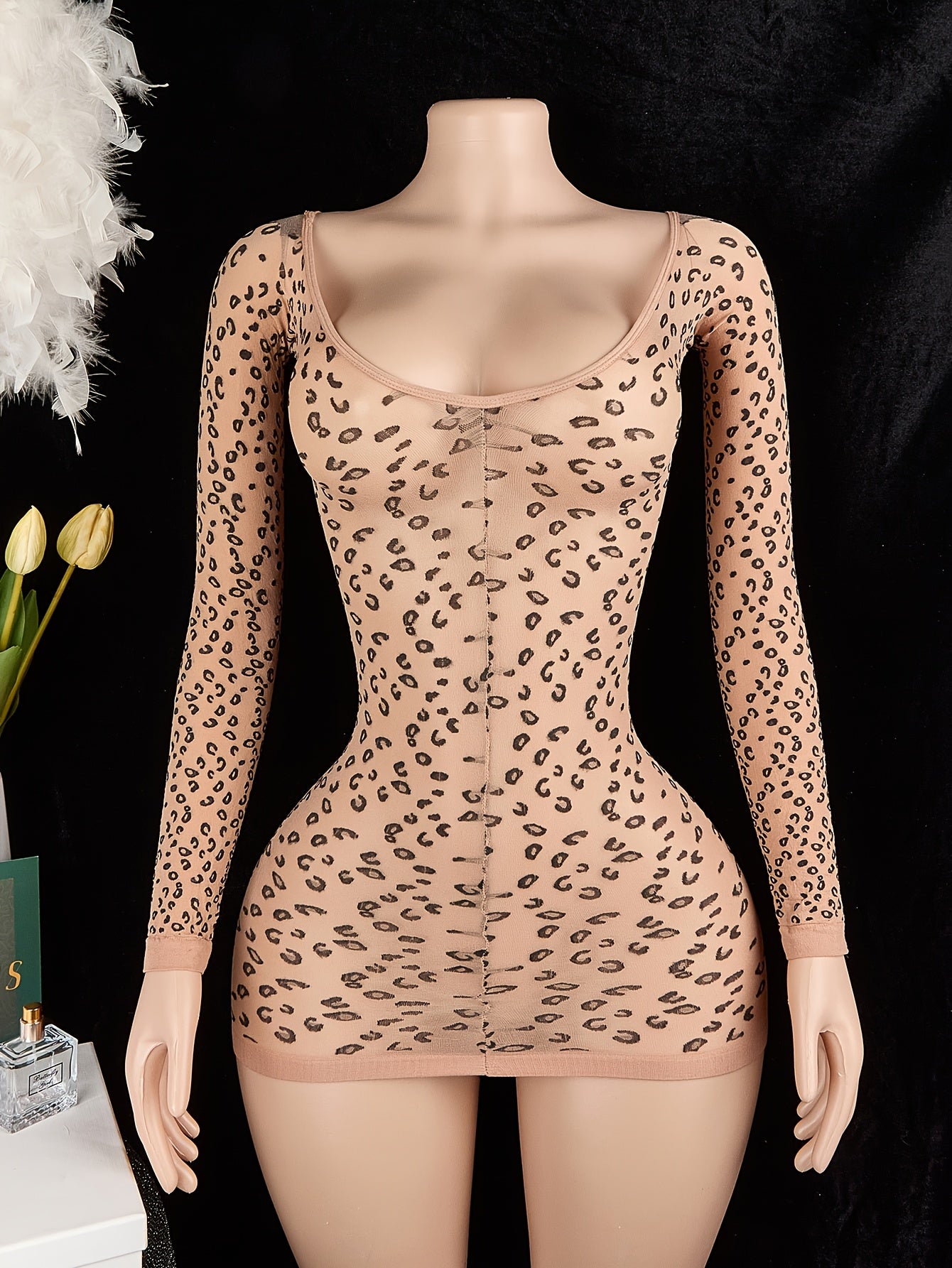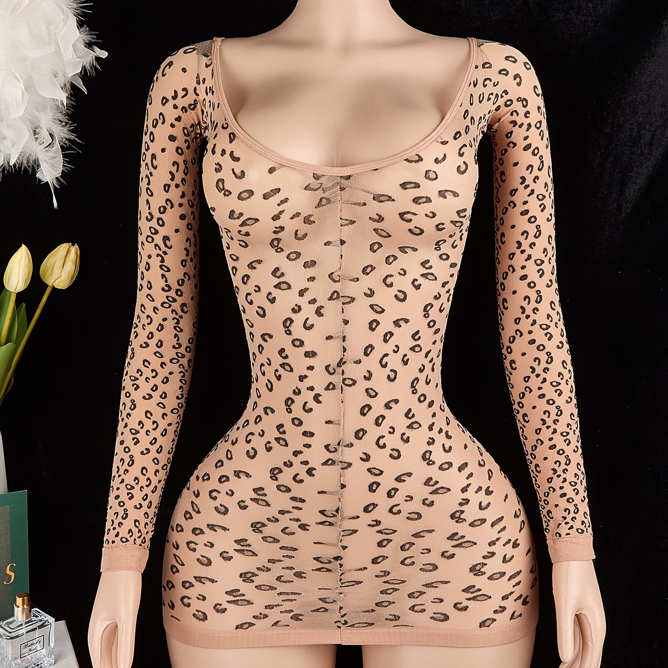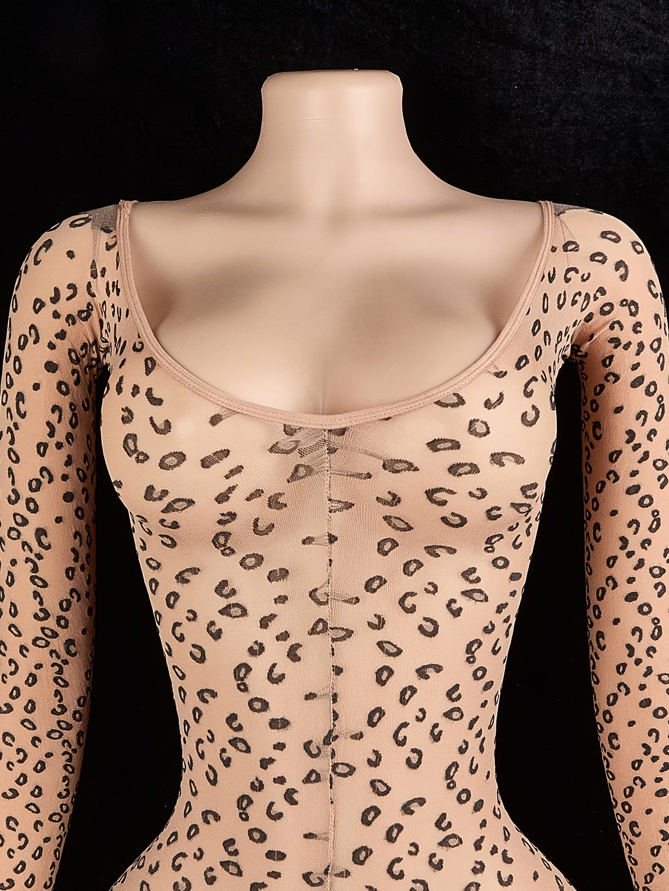 Леопардовый облегающий боди с длинным рукавом, без спинки, без подкладки, для взрослых