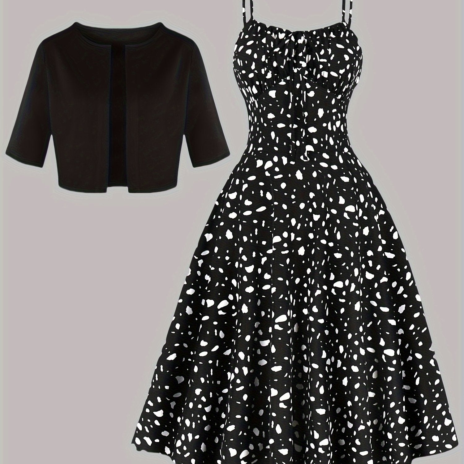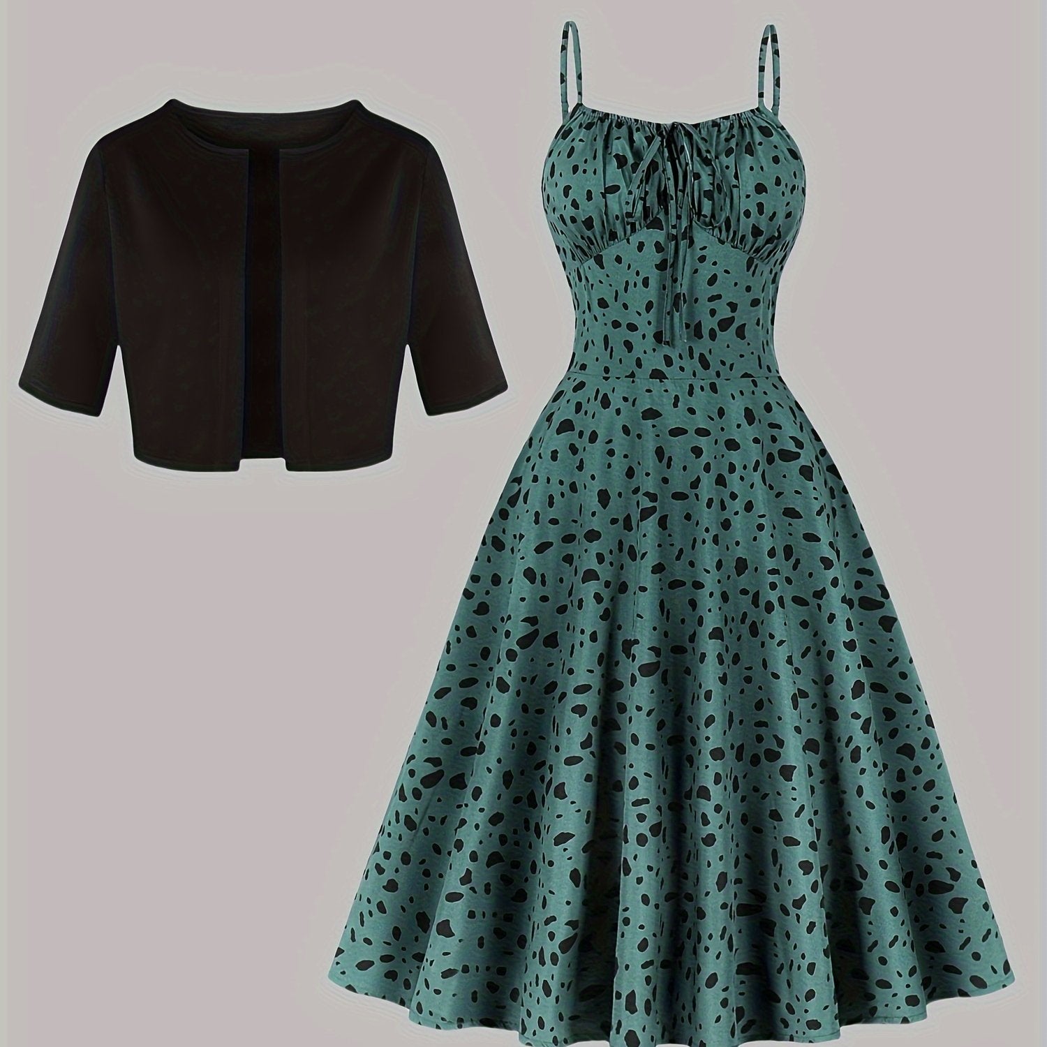 Платье с леопардовым принтом и блейзер на тонких бретелях для осени и зимы, 100% полиэстер