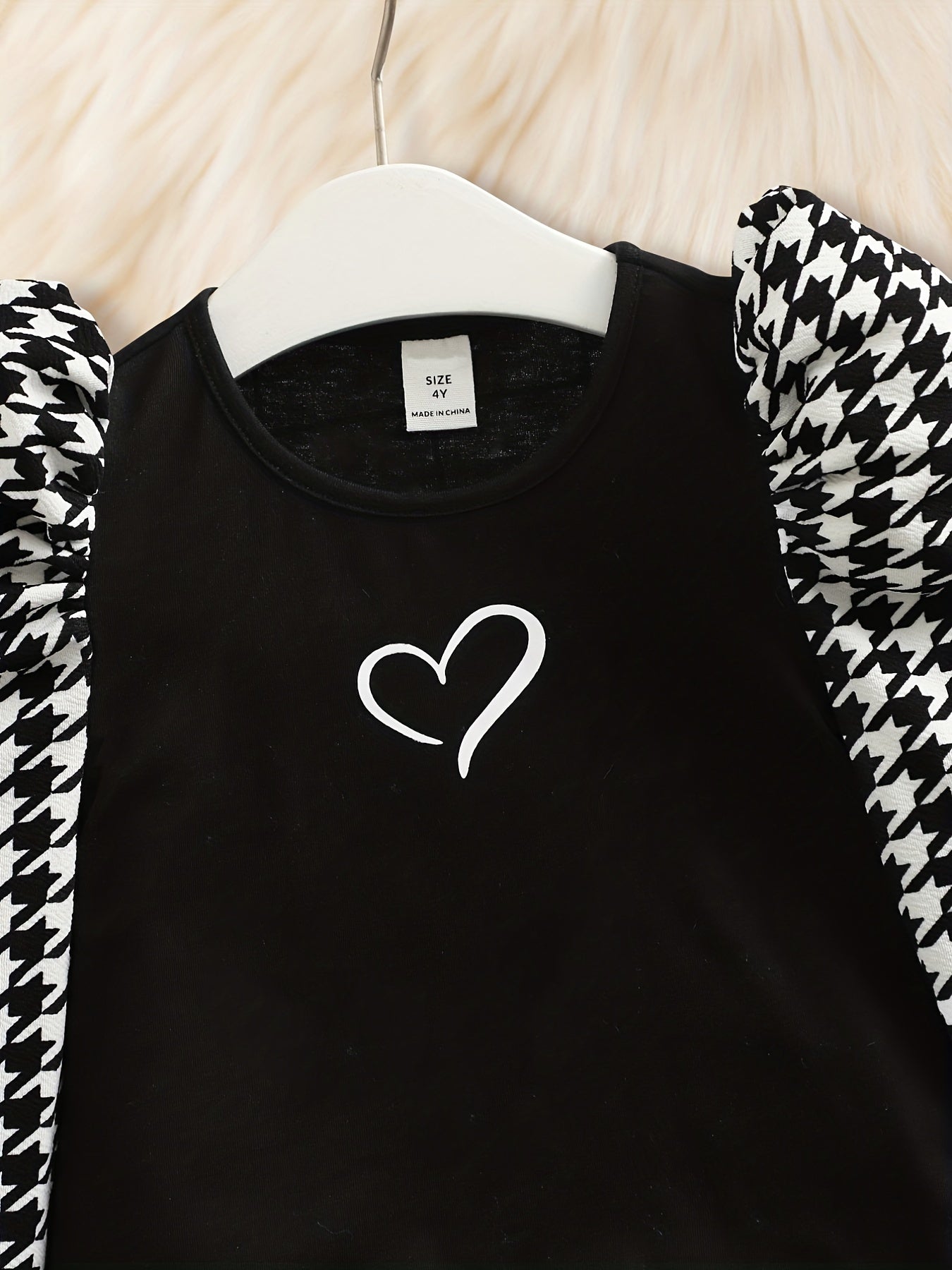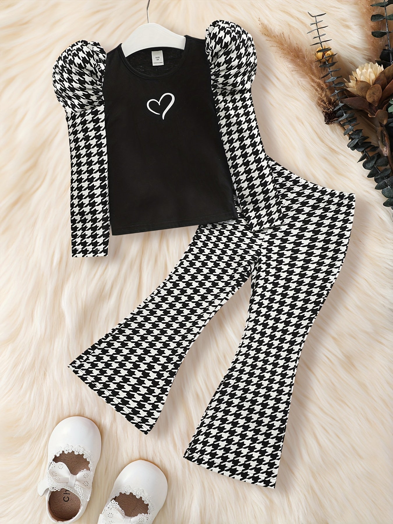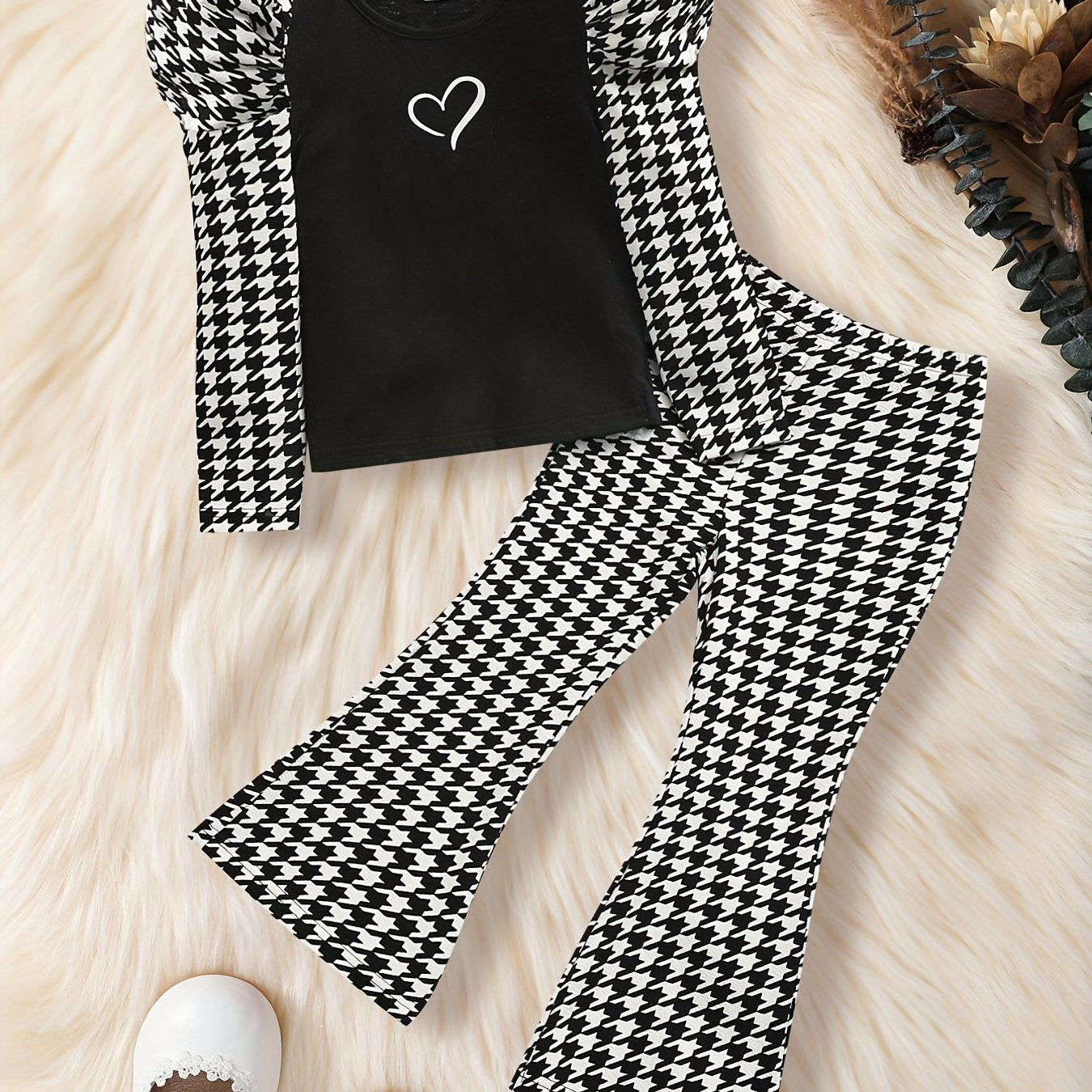 Девочки набор топа и брюк с длинным рукавом и принтом в виде сердечек и гусиной лапки для весны и осени