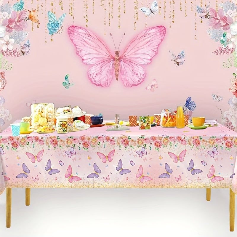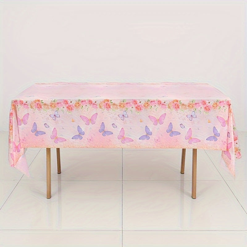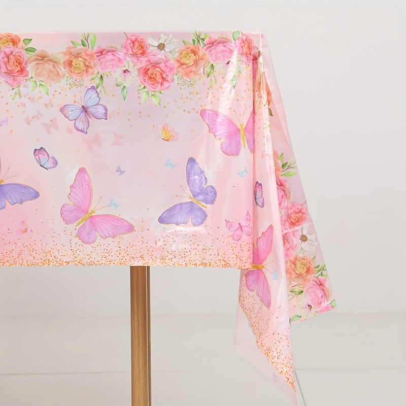 Милая розовая одноразовая скатерть с бабочками — идеально подходит для свадеб, вечеринок по случаю рождения ребенка, объявления пола ребенка и дней рождения
