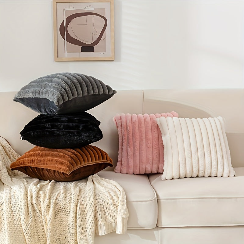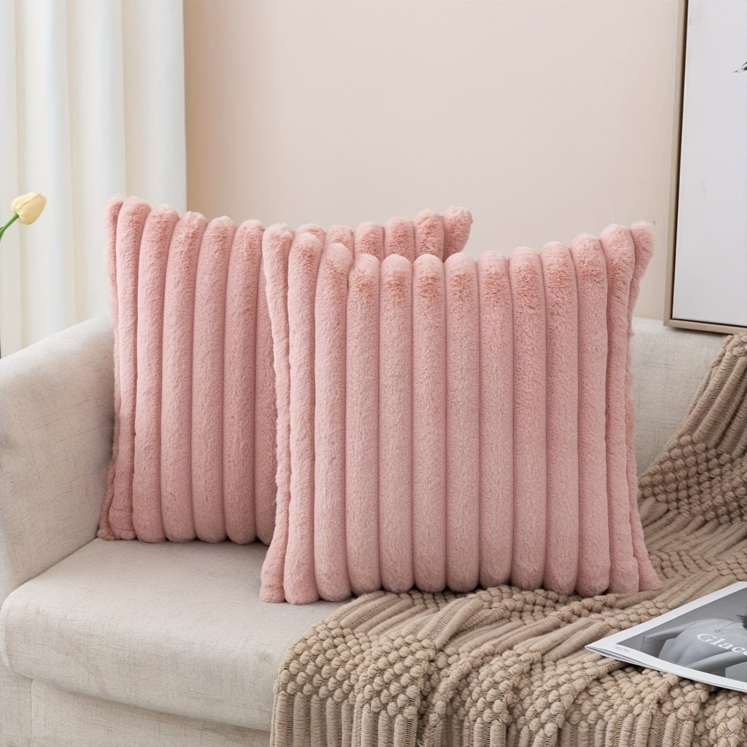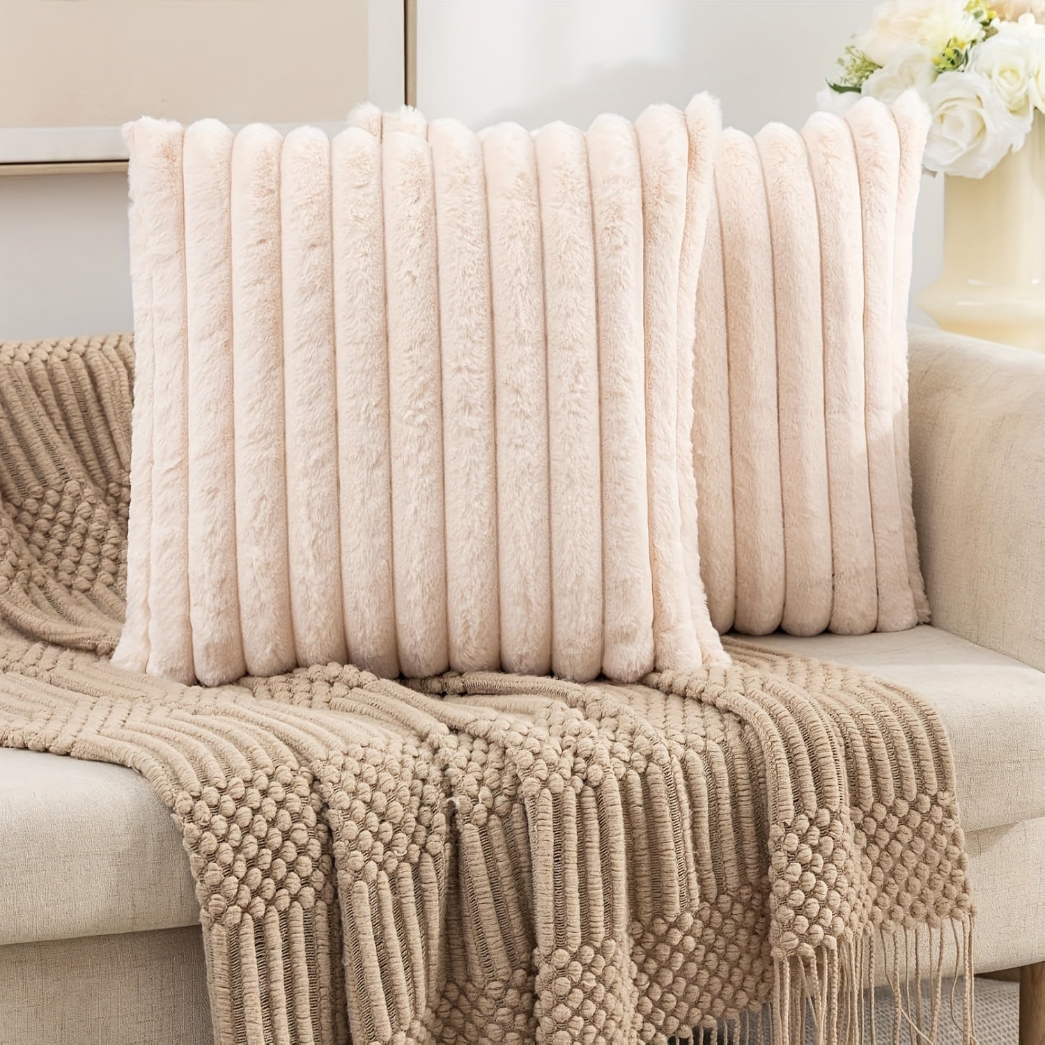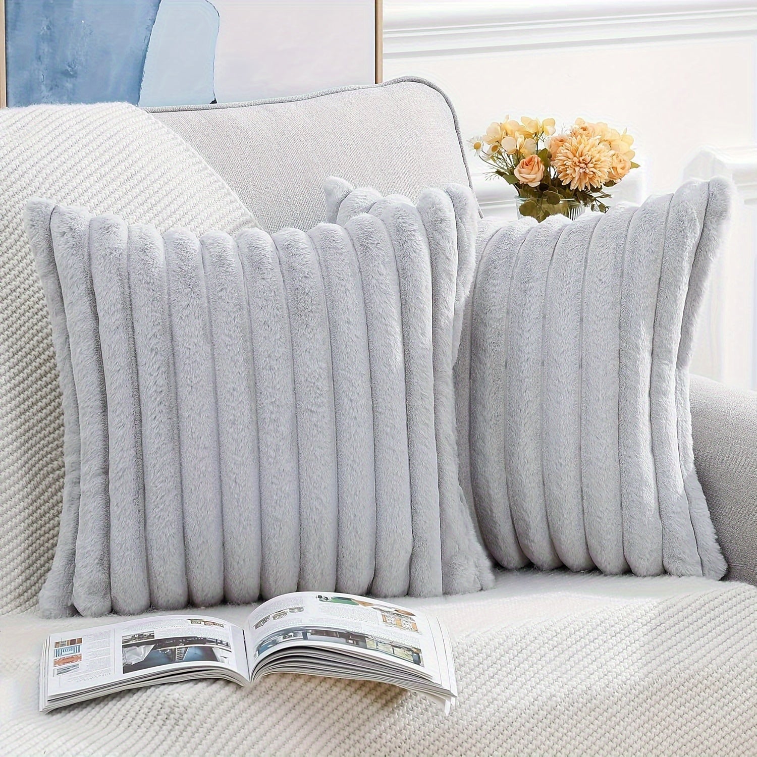 Роскошные подушки с полосатым искусственным мехом для дивана или софы - набор из 2 штук.