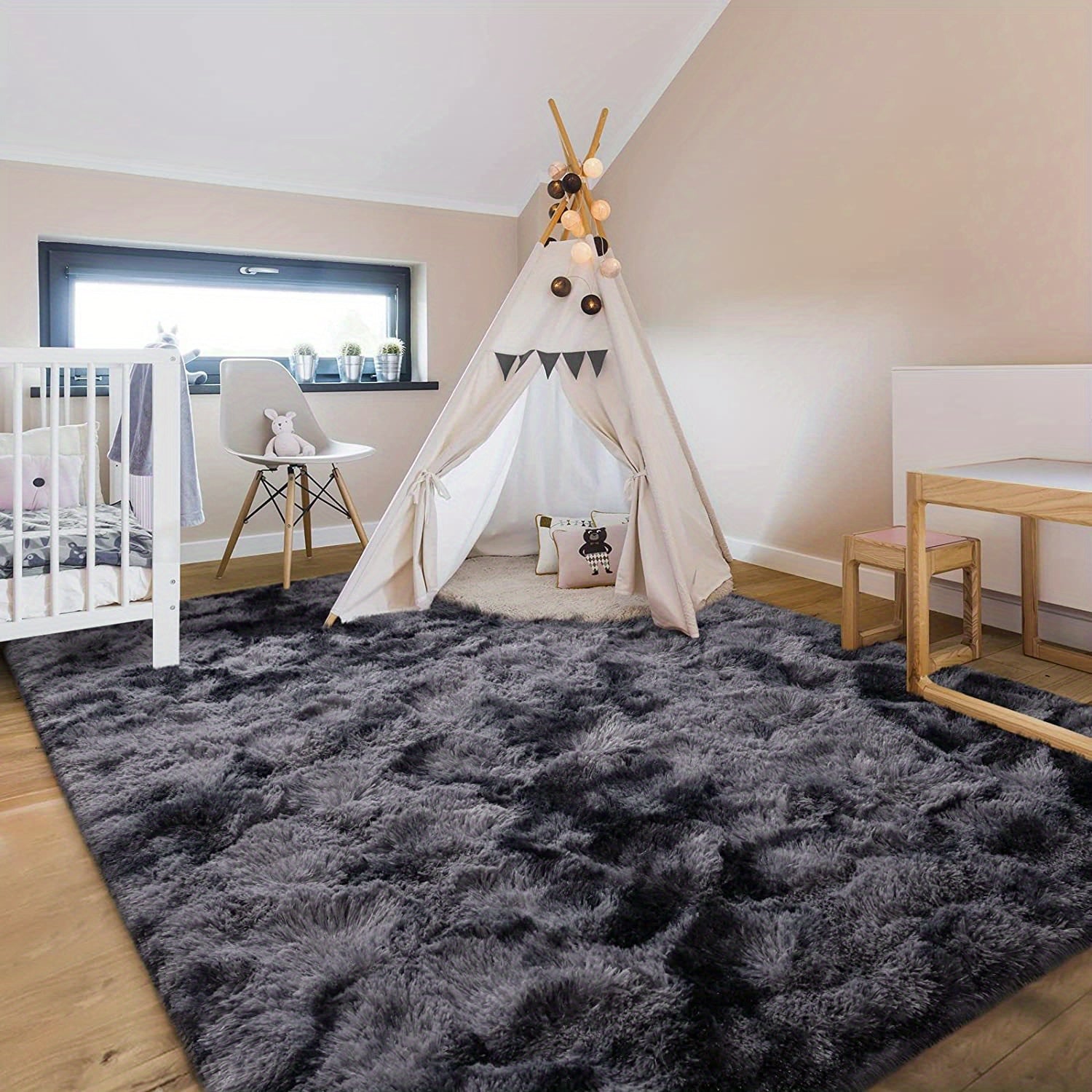 Роскошный нескользящий темно-серый ковер с милым и мягким пушистым ворсом, идеально подходит для гостиных и спален. Можно стирать в стиральной машине, идеально подходит для придания нотки роскоши домашнему декору.