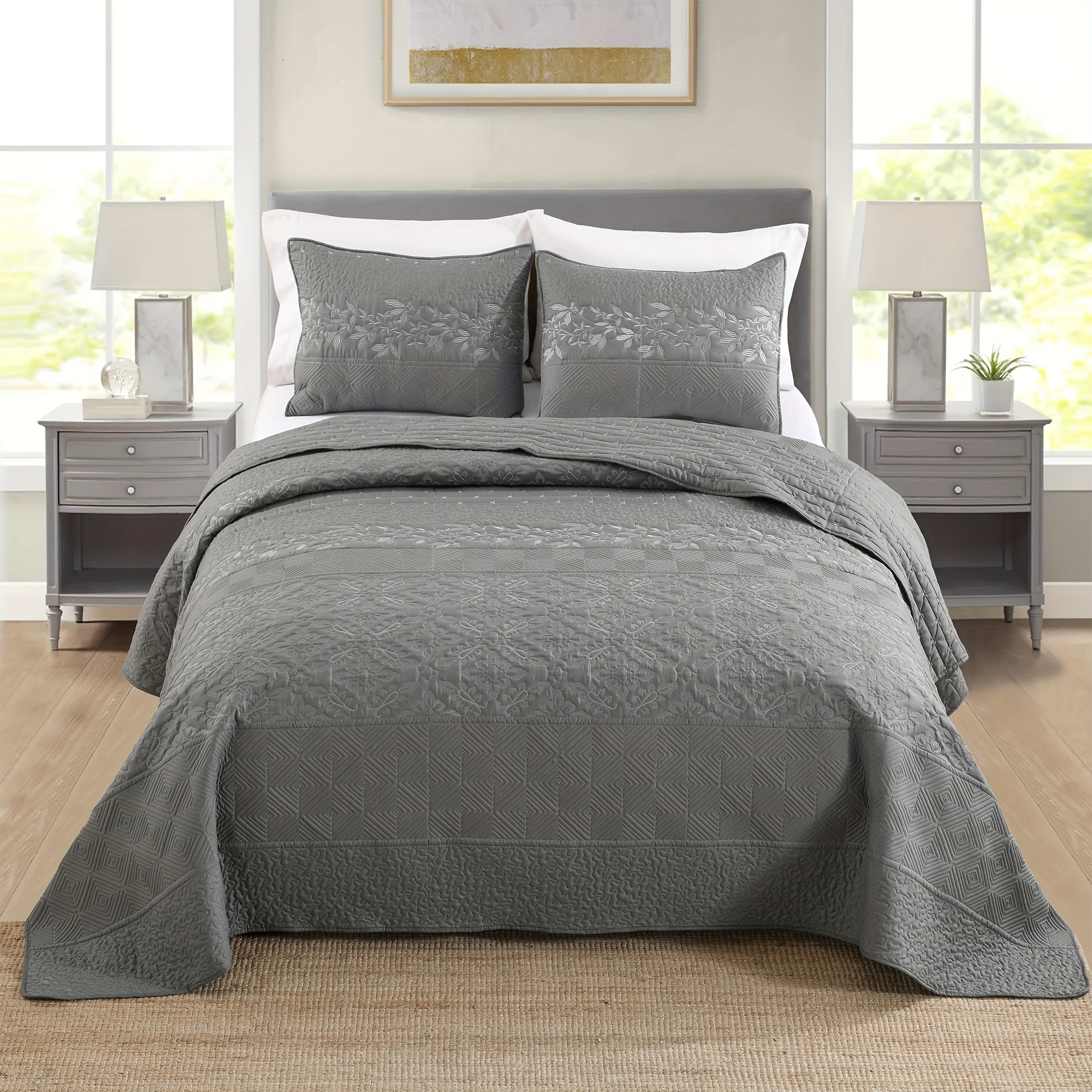 Роскошный 3-частный комплект постельного белья с вышитыми листьями и цветочными узорами, покрывало для двуспальной кровати, летнее одеяло, наволочки, мягкие и дышащие