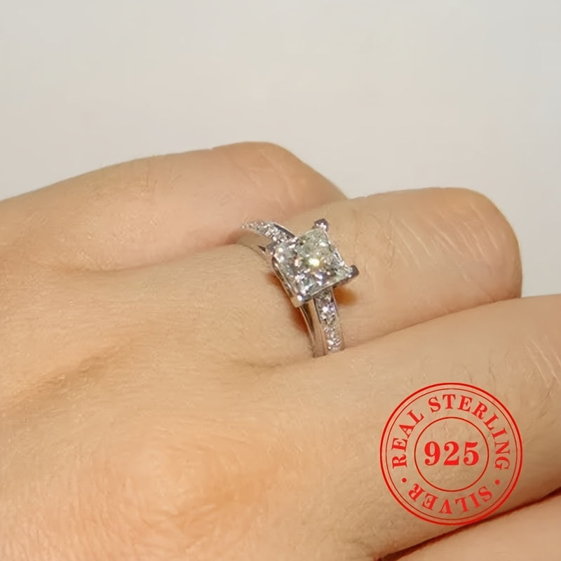 Роскошное кольцо в стиле отпуска из стерлингового серебра S925 с гало и принцессовидным кубическим цирконием в 4-лапковом креплении - идеальное обручальное кольцо или подарок для женщин, идеально подходит для свадеб и праздников.