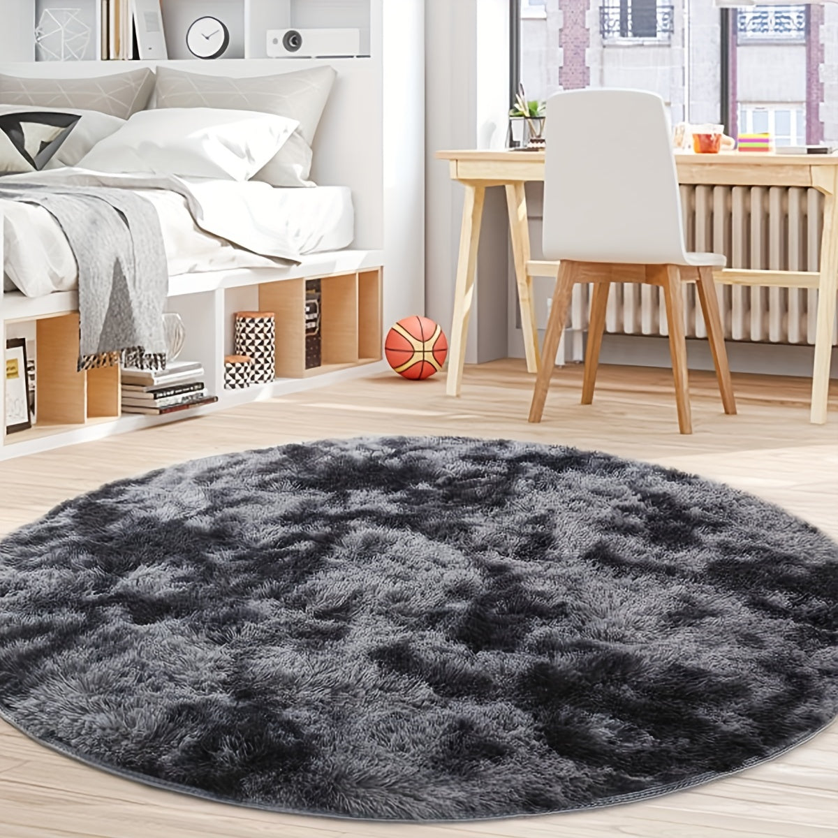 Плюшевый ковер с эффектом tie-dye, глубокий серый, мягкий, прочный, толстый поролон для гостиной и спальни