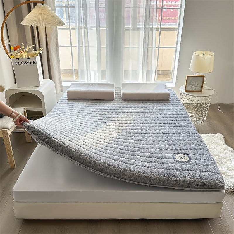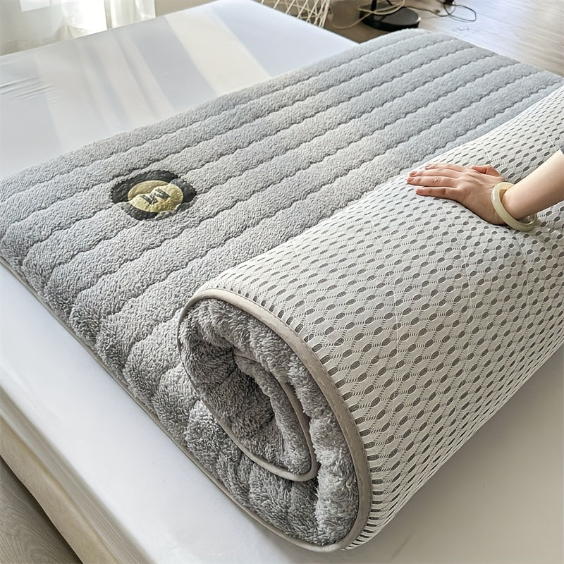 Серый накидка на матрас из флиса с прошитым чехлом, наполнителем из микрофибры, толщиной 3-5 см, не водонепроницаемый, моется в машине