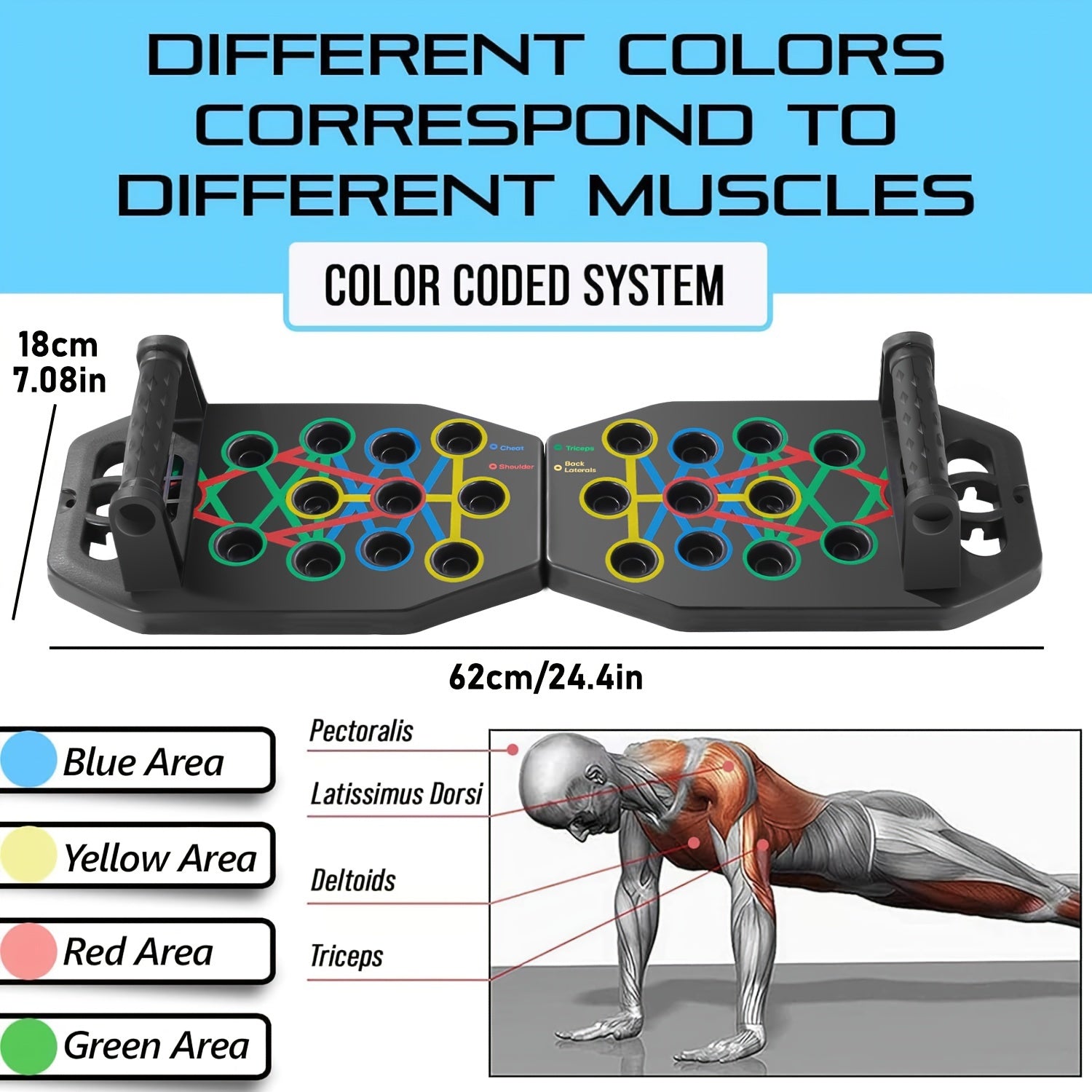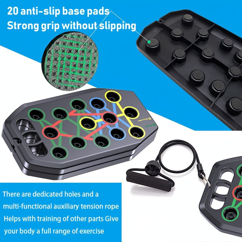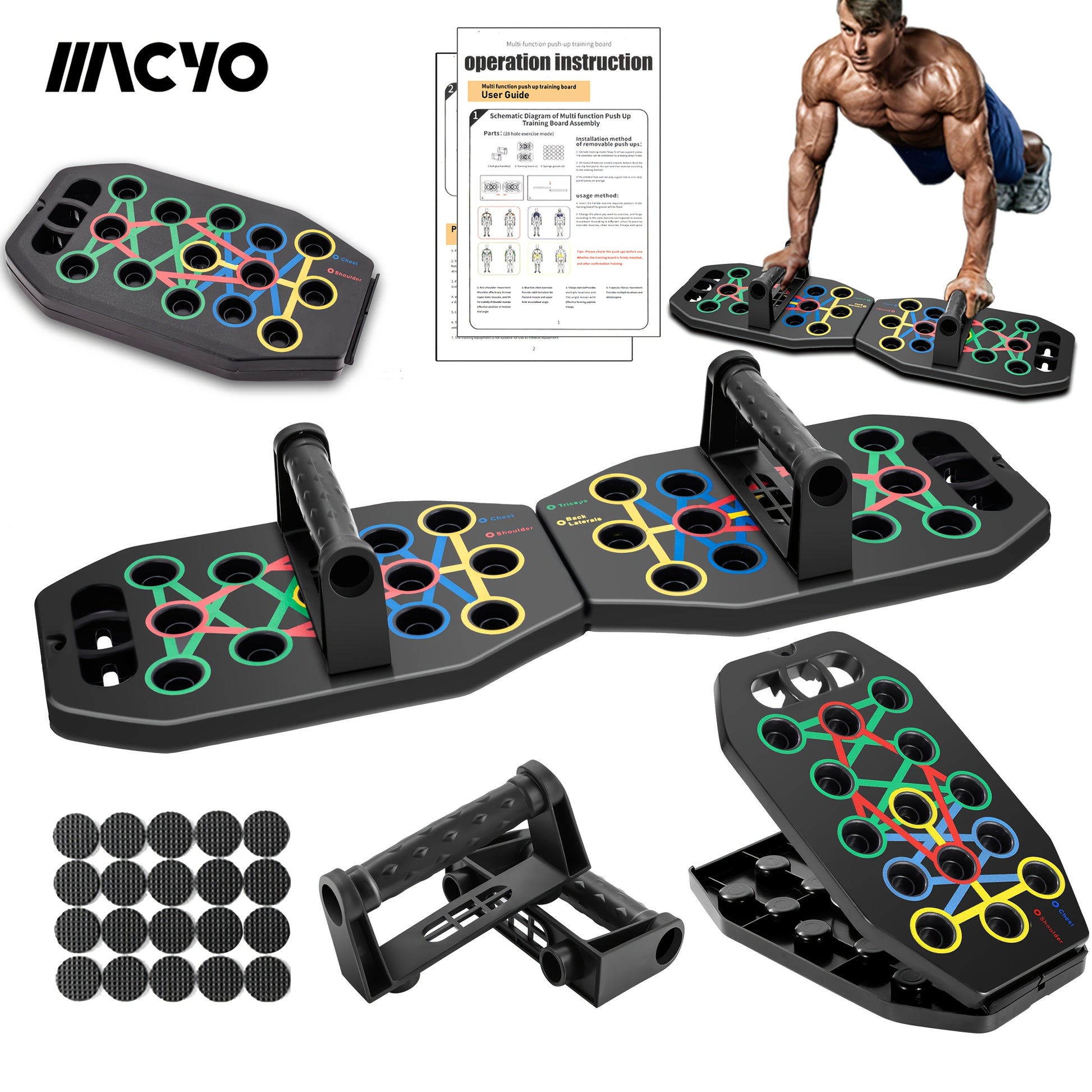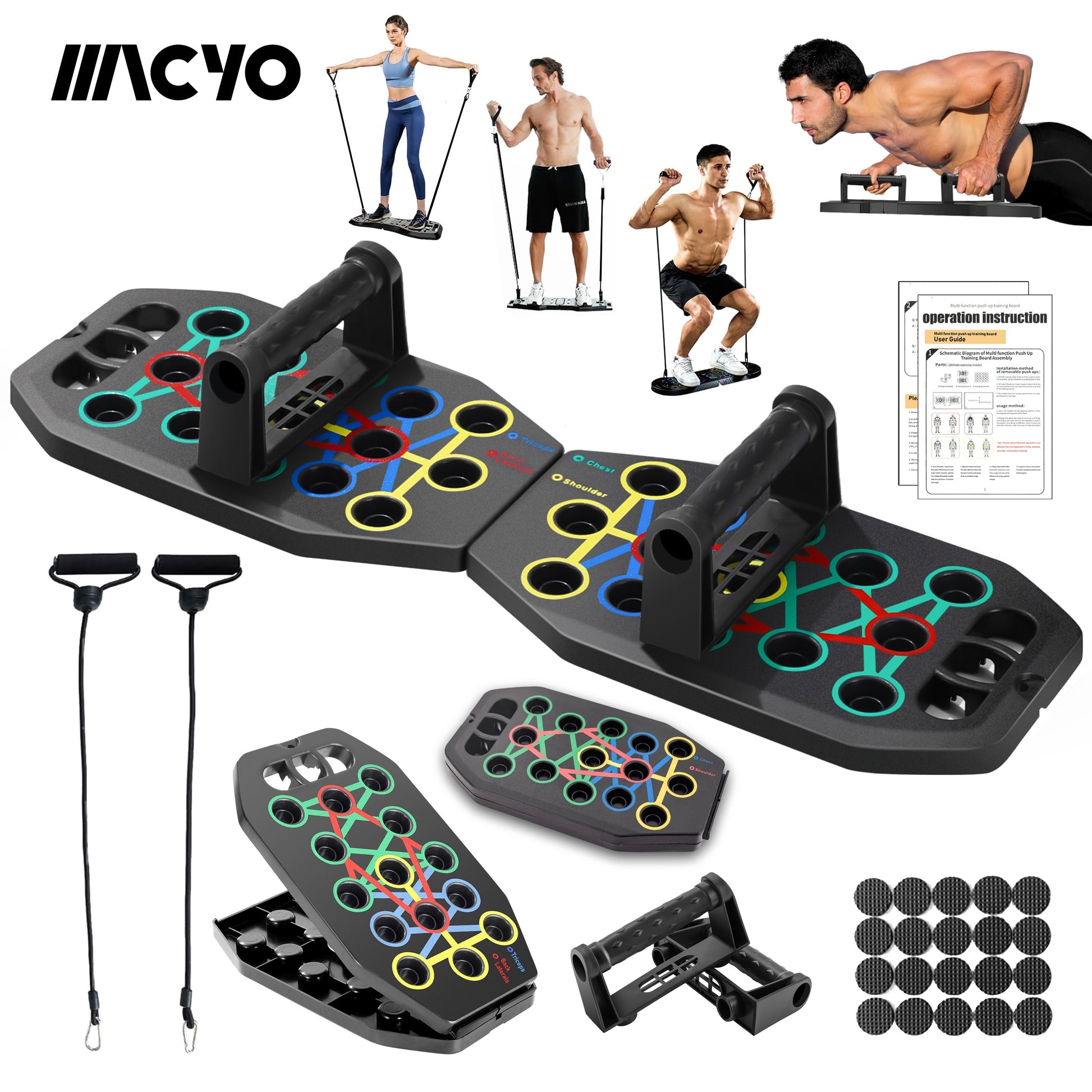 MACYO Ультимативная доска для отжиманий с 2 резиновыми лентами - Многофункциональное оборудование для тренировок дома и в спортзале, тренажер для грудных мышц, помощник в силовых тренировках.