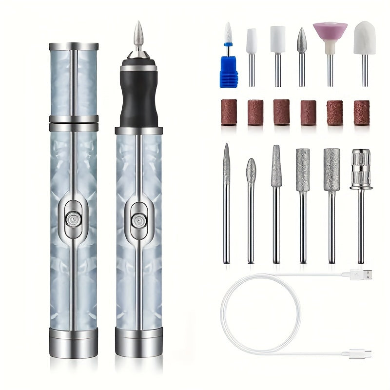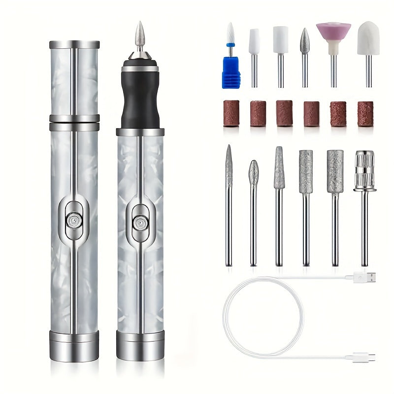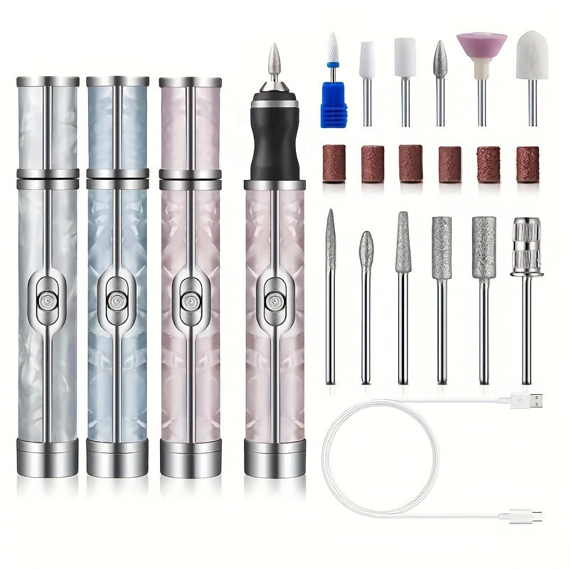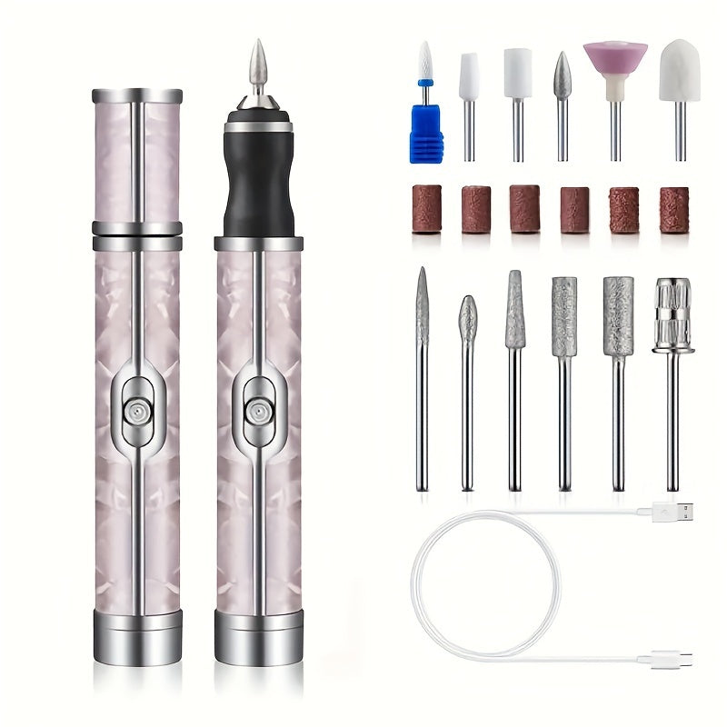 Маникюрный полировщик с 18 насадками, перезаряжаемый, USB-зарядка, многофункциональный инструмент для ногтей