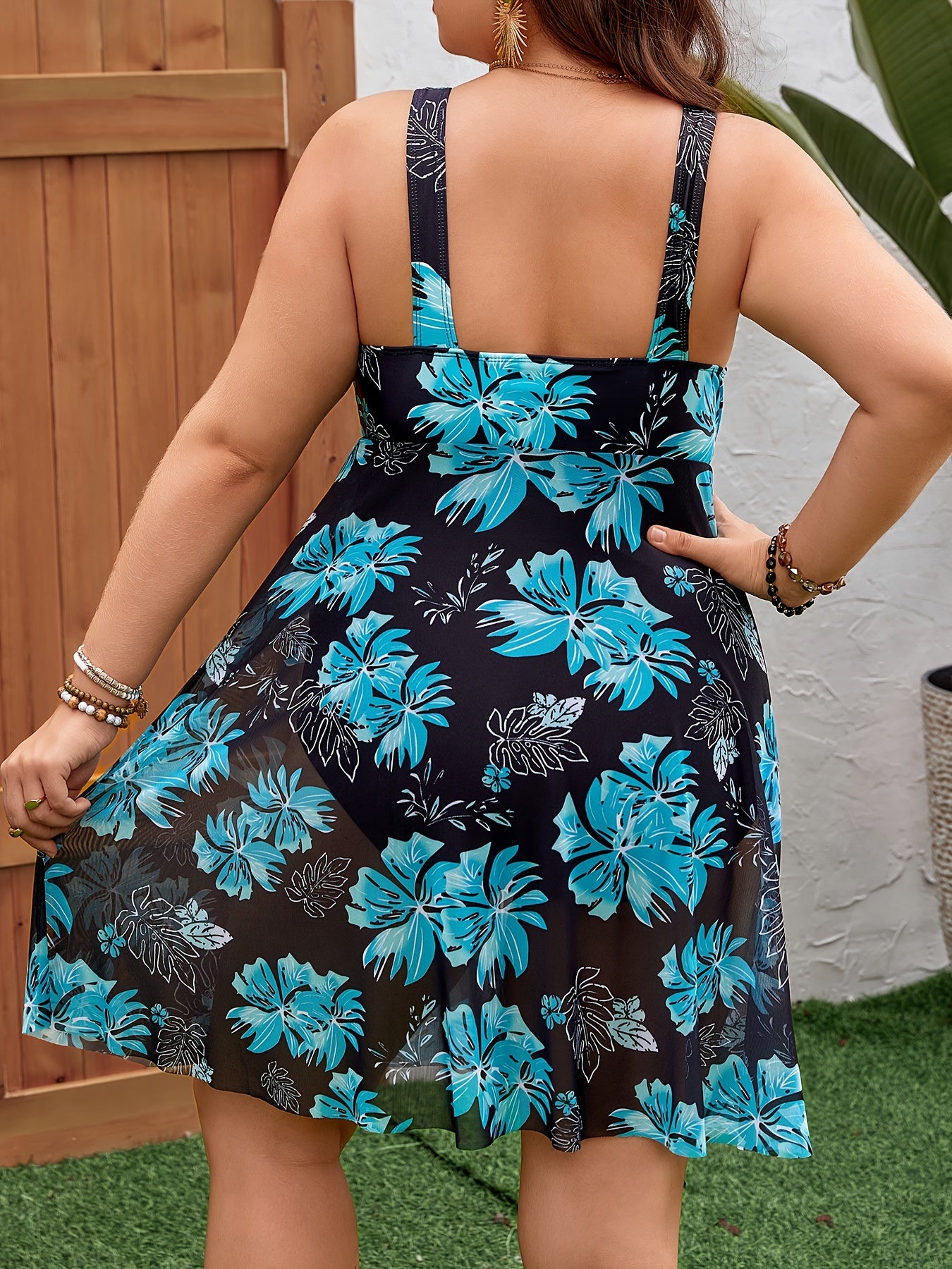 Платье для плавания с принтом кленового листа большого размера и сетчатым слоем для женщин