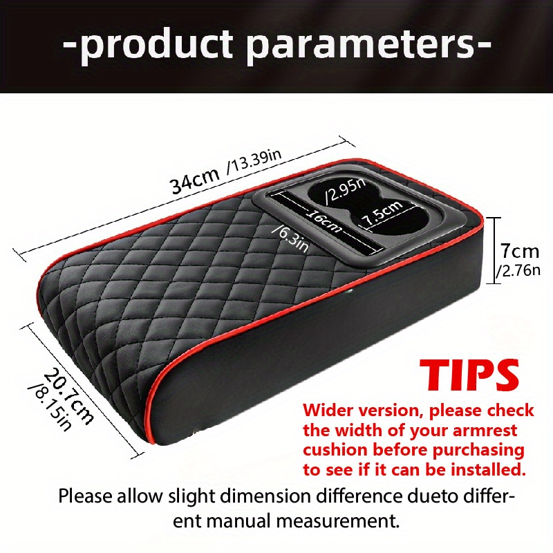 Поролоновая подушка для подлокотника автомобиля с карманами для хранения, держателем для стакана и подставкой для телефона, красная, 20 см