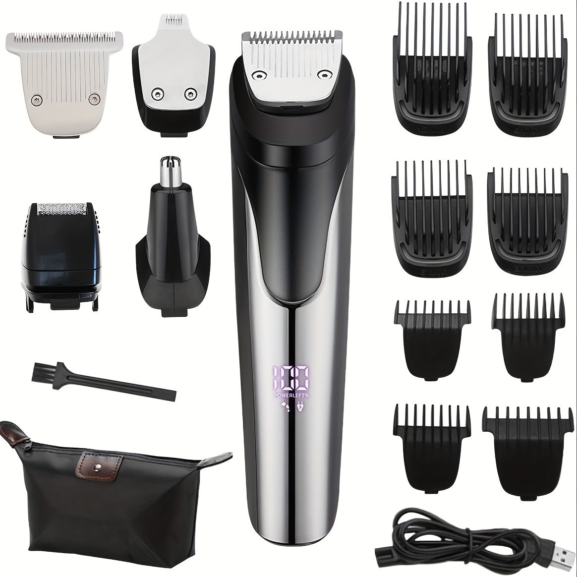 Мужской универсальный набор для ухода с беспроводным триммером для бороды, перезаряжаемым через USB и LED-дисплеем