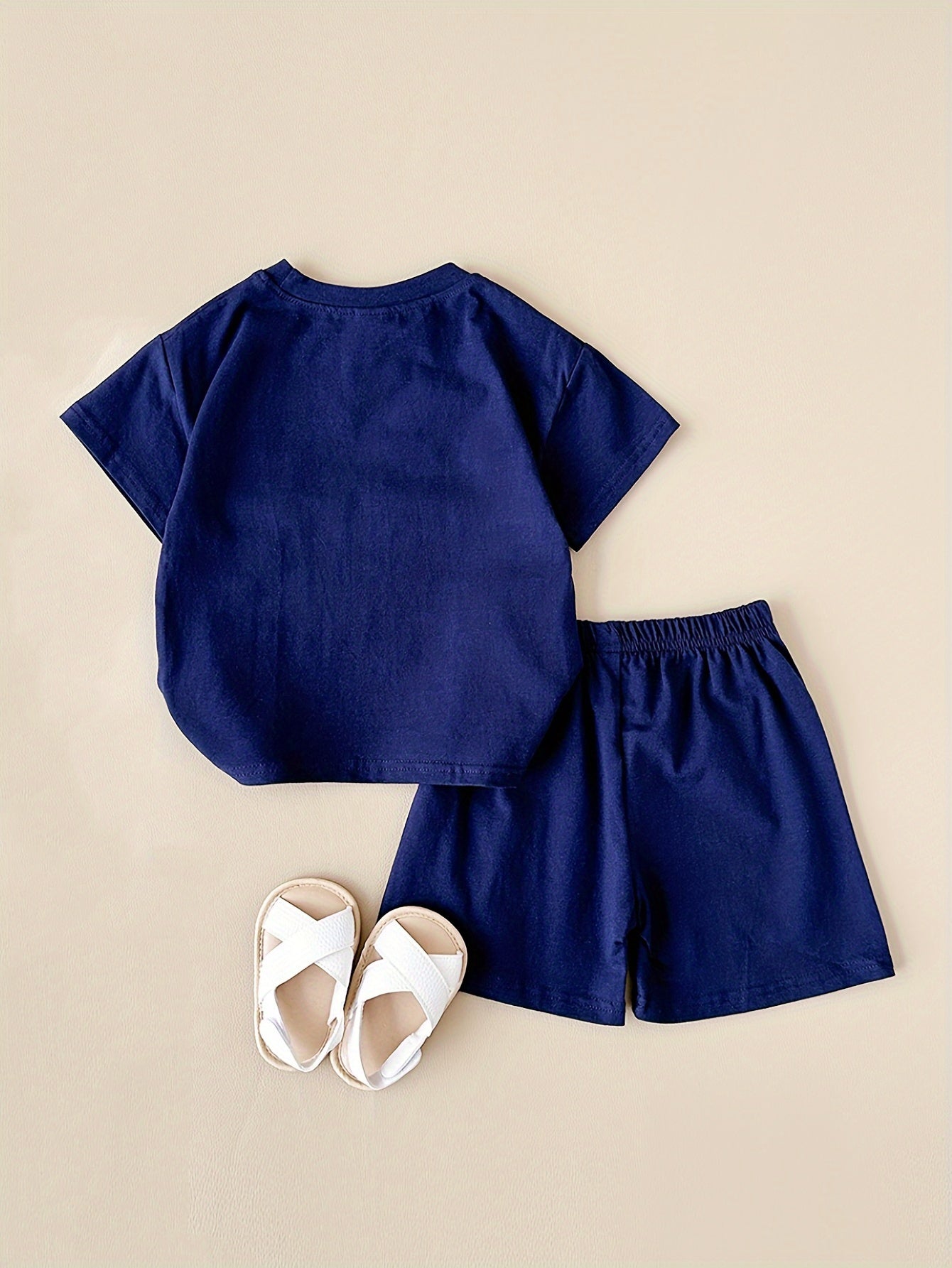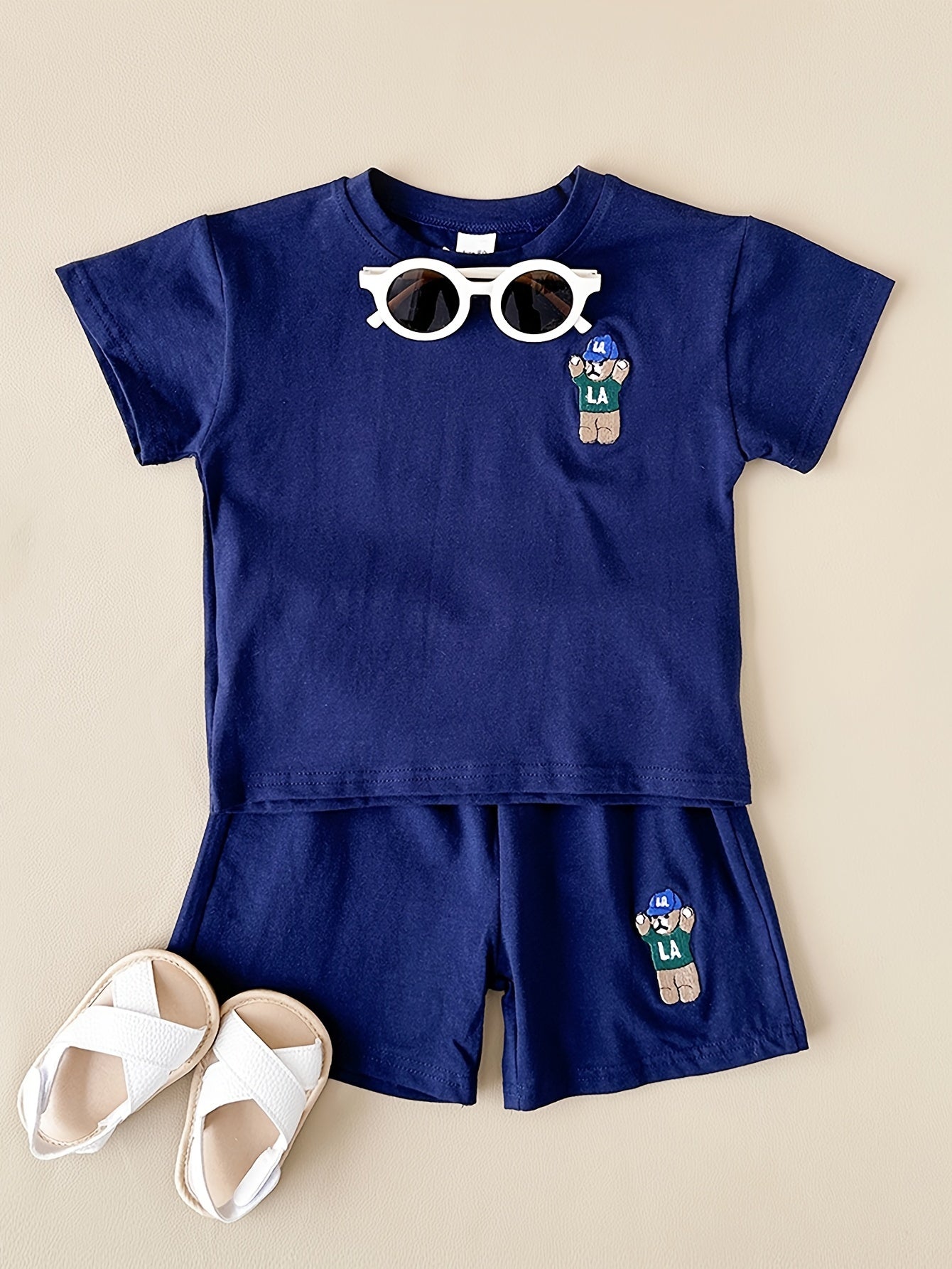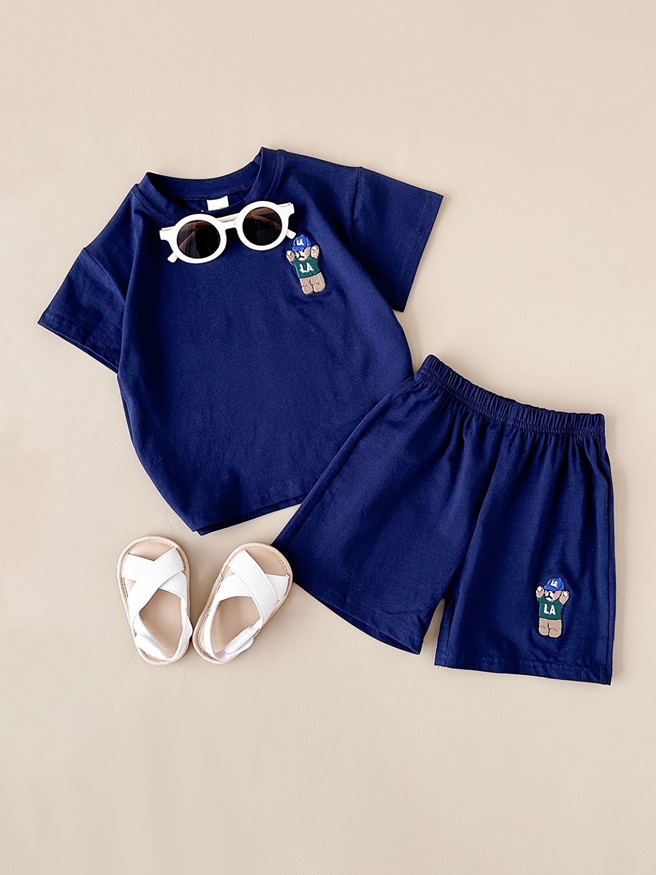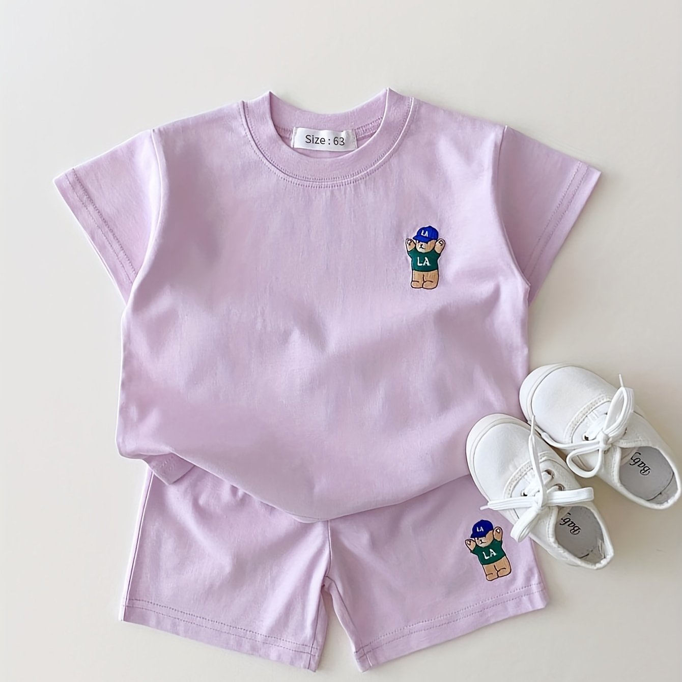 Детский комплект шортов повседневных из хлопкового смесового материала с коротким рукавом, мультяшный медведь, лето, для мужчин, женщин и детей