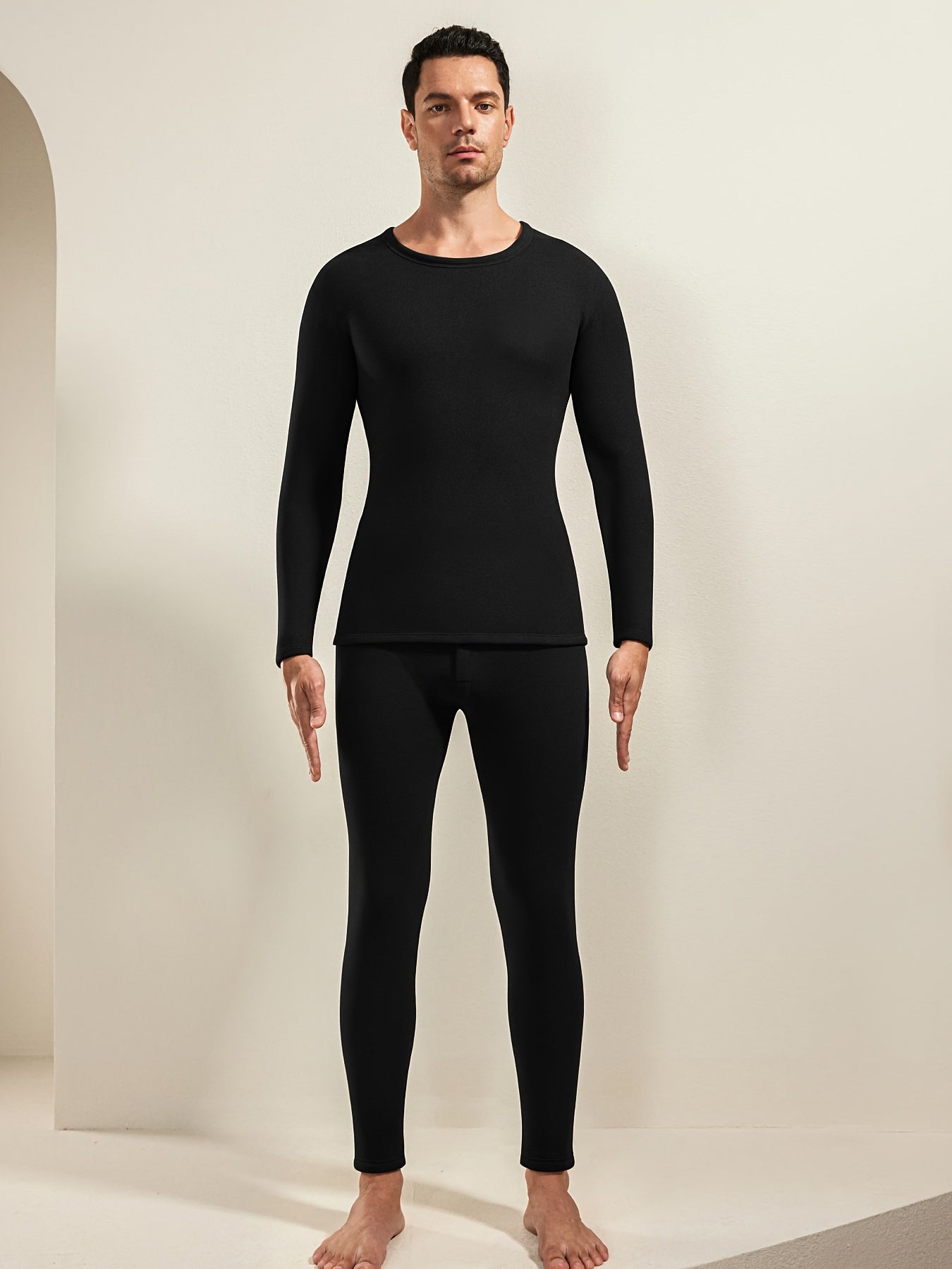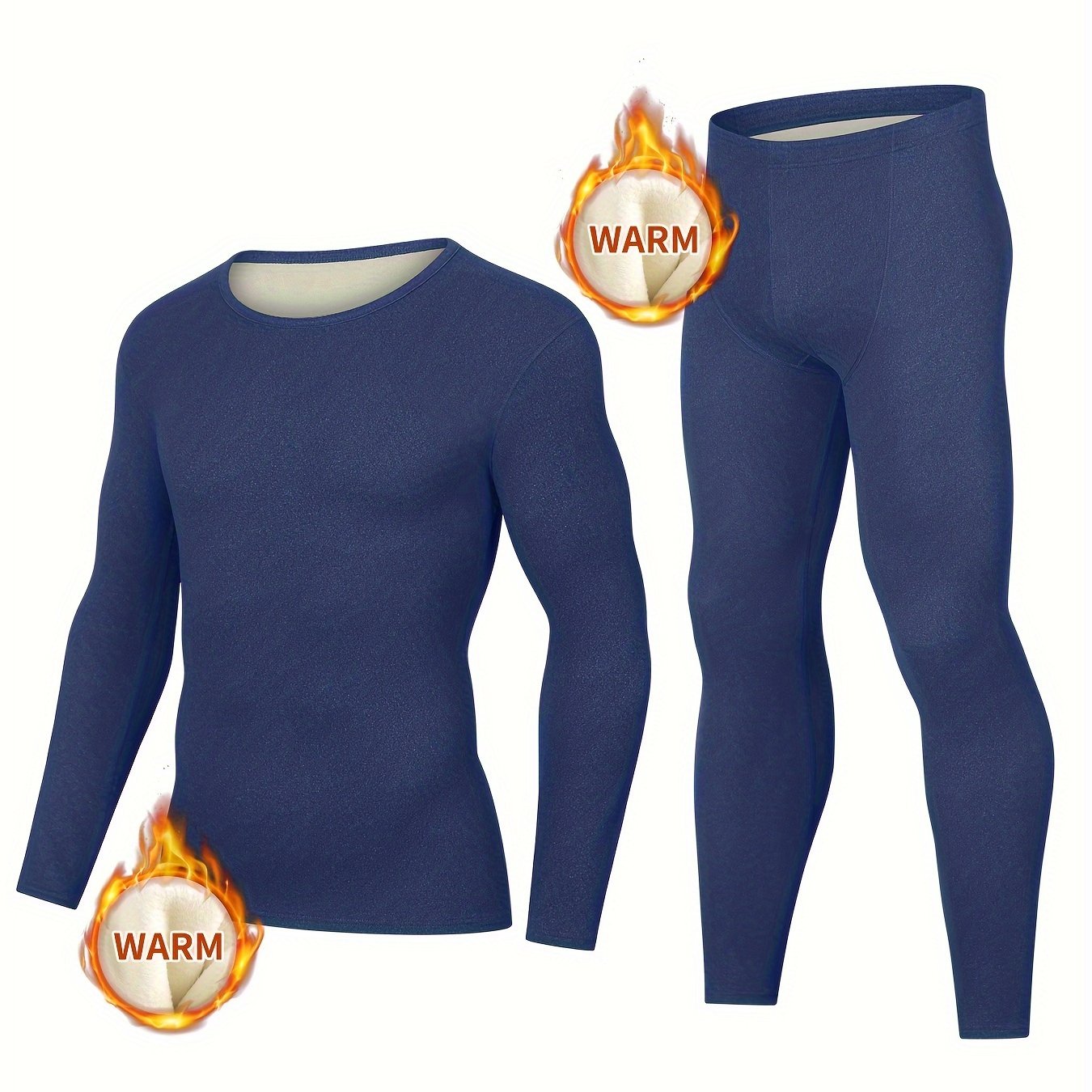Мужской термальный комплект нижнего белья: длинный рукав, футболка с круглым вырезом и штаны, зимняя теплая одежда