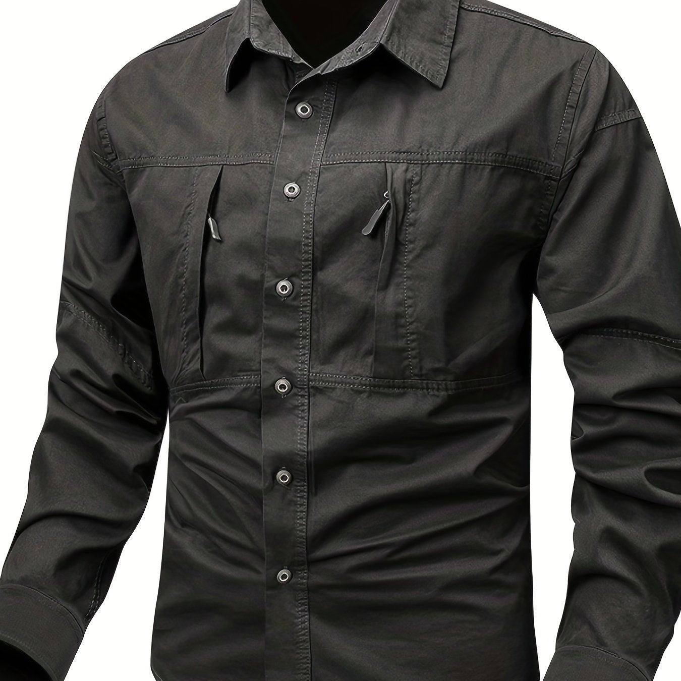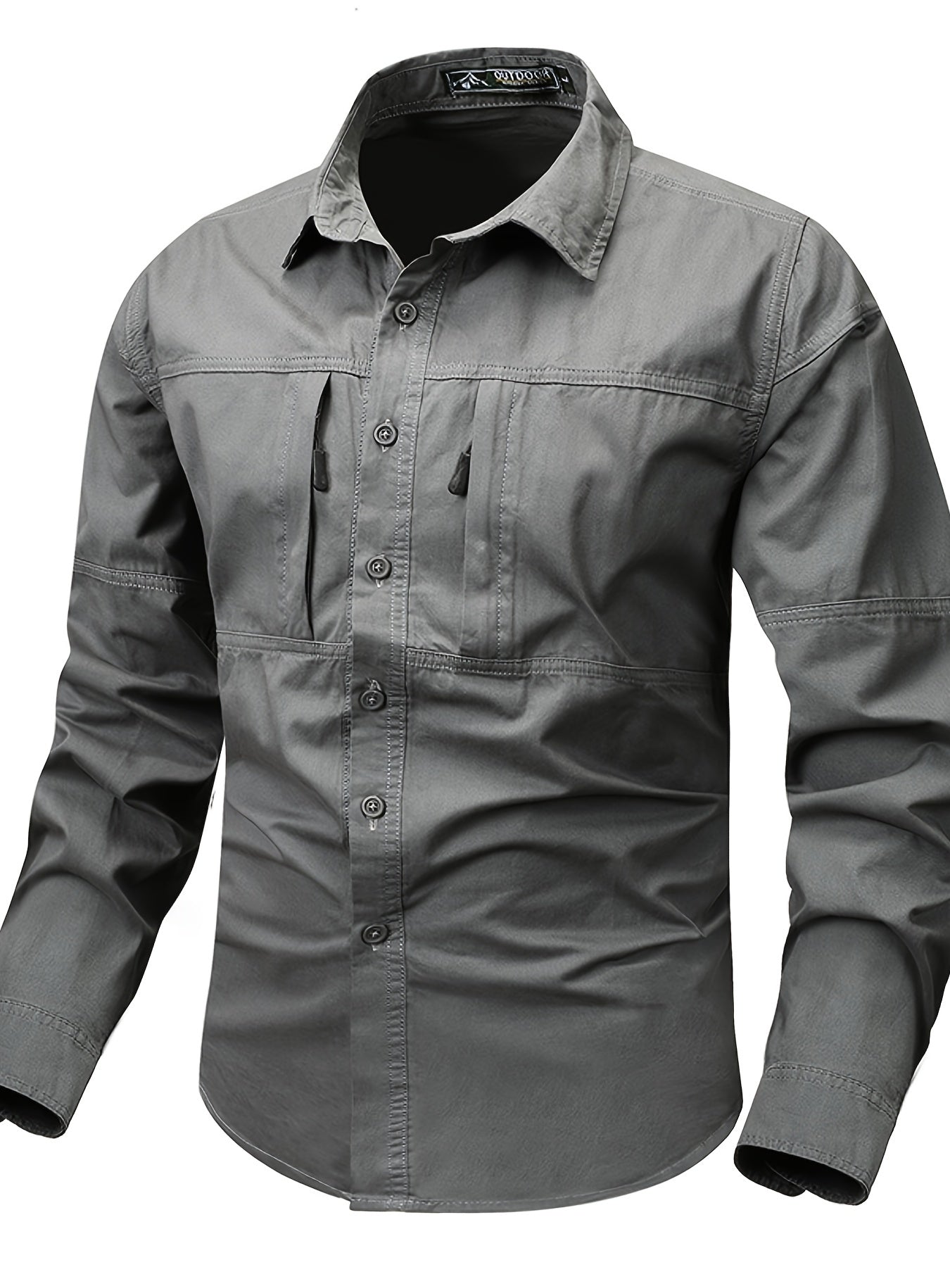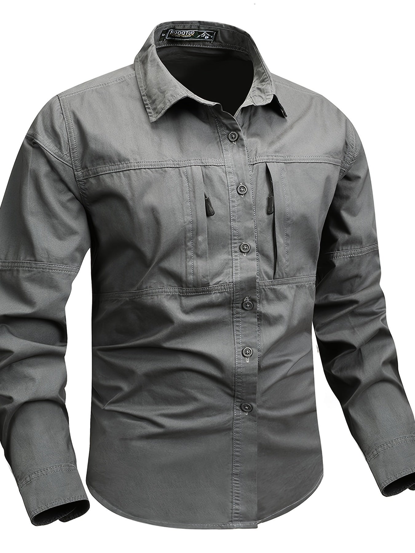 Мужская хлопковая рубашка в стиле кари с застежкой-молнией и лацканом для весны и осени