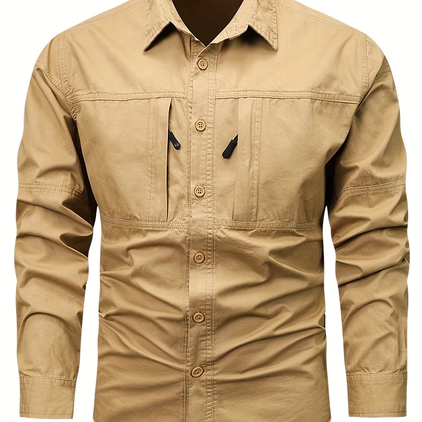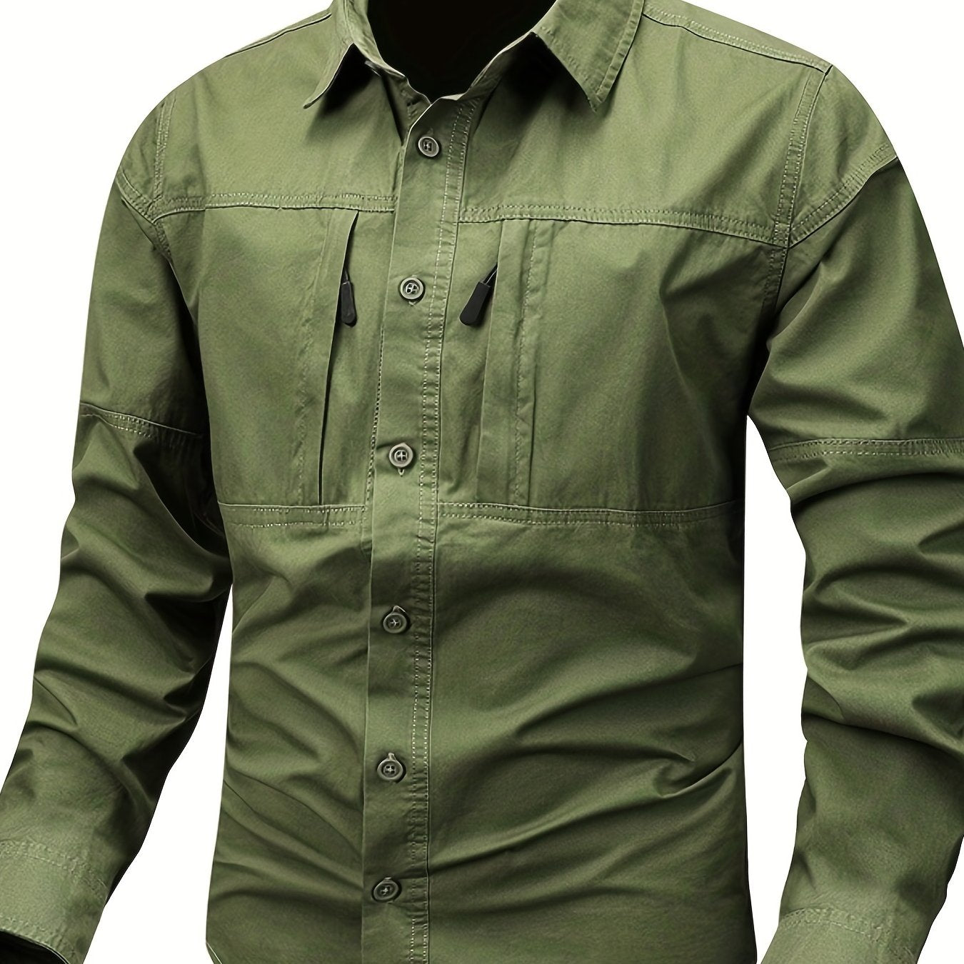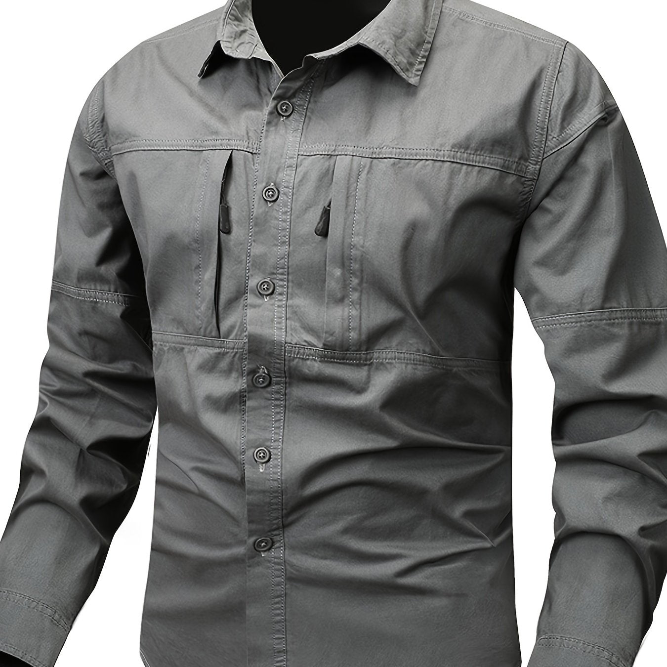 Мужская хлопковая рубашка в стиле кари с застежкой-молнией и лацканом для весны и осени
